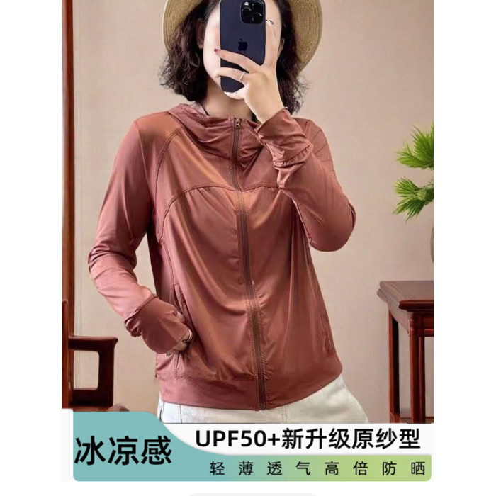 原紗冰絲防曬衣女夏透氣輕薄寬鬆百搭防紫外線冰感連帽防曬服大碼