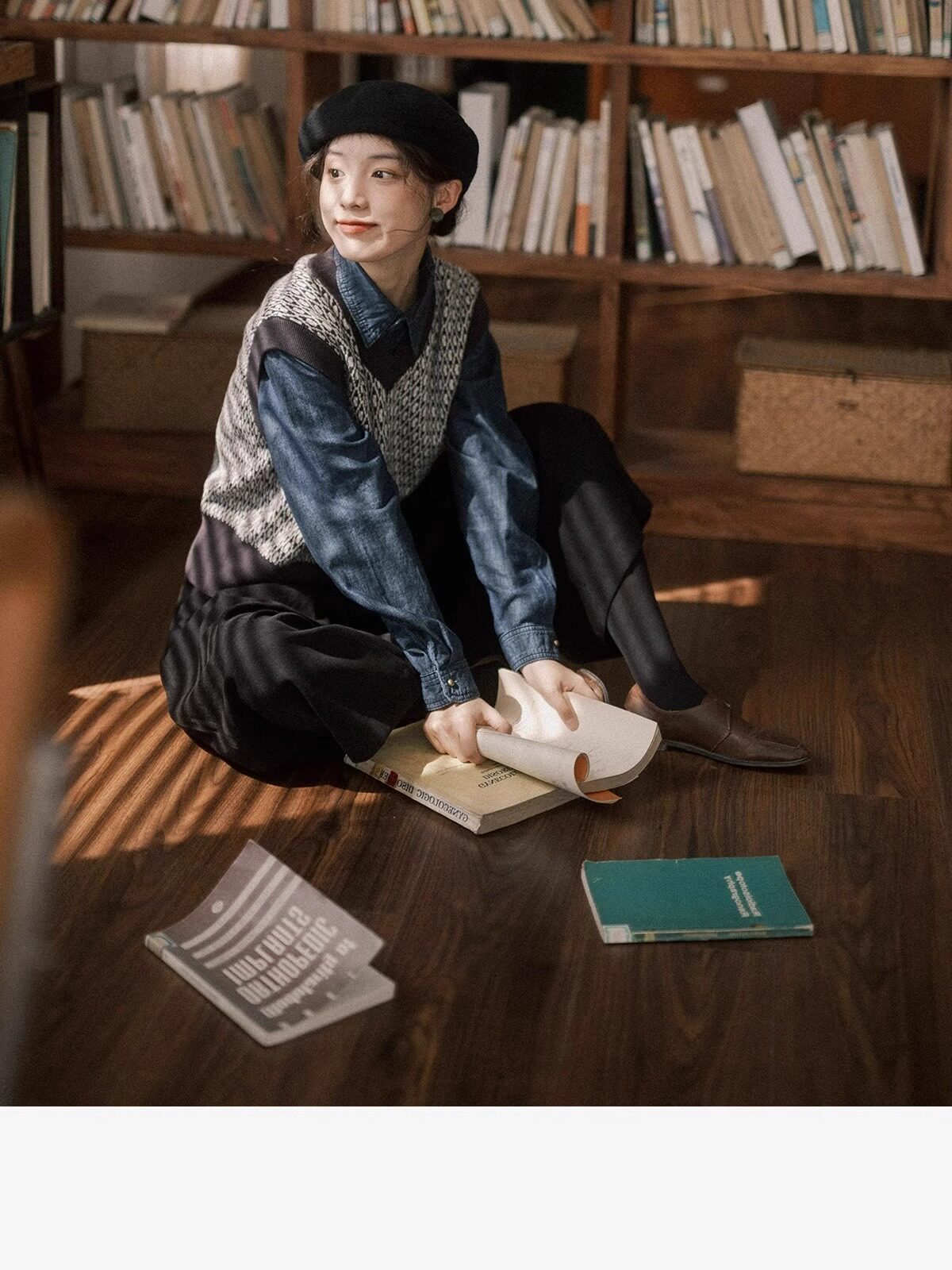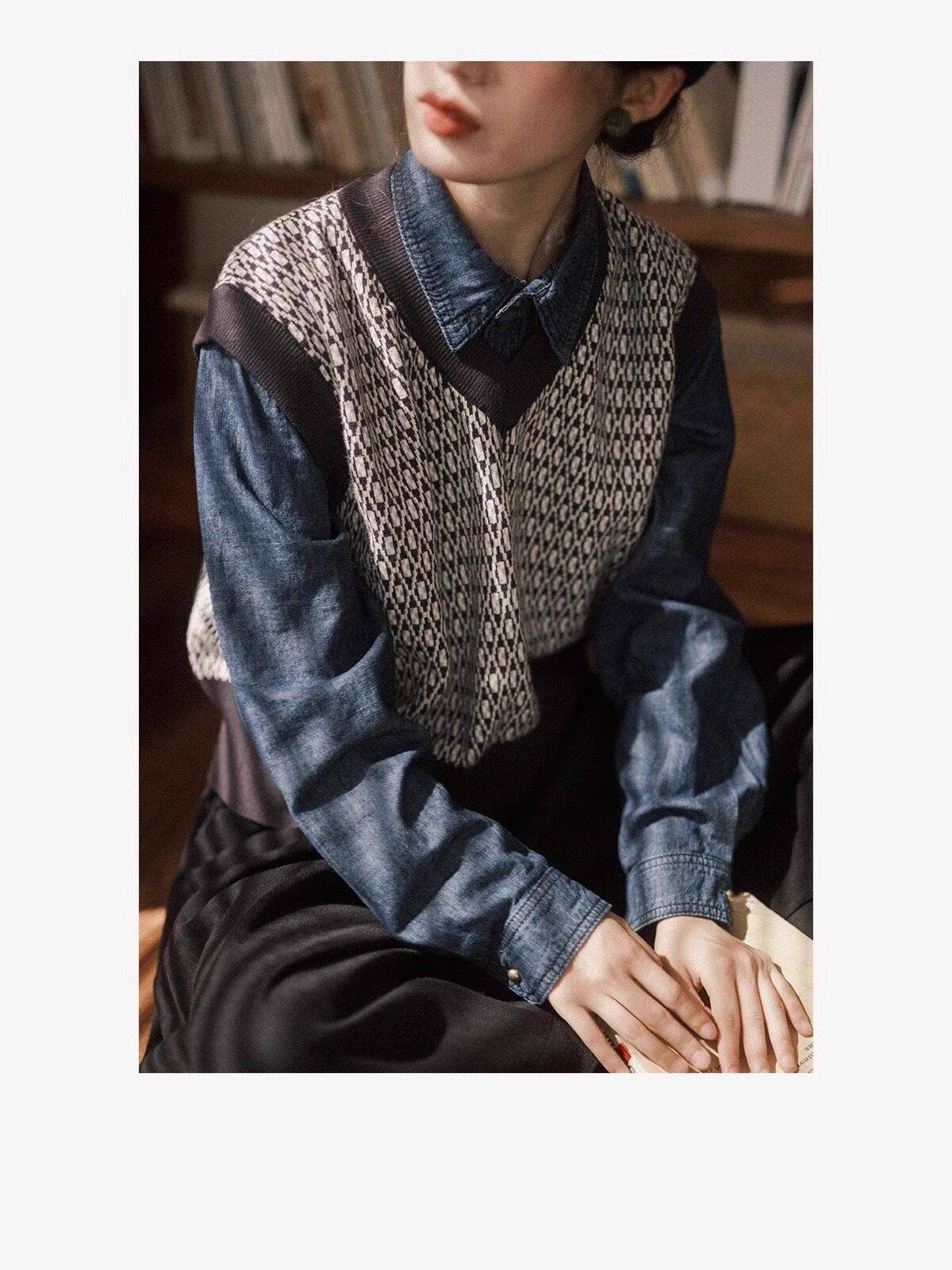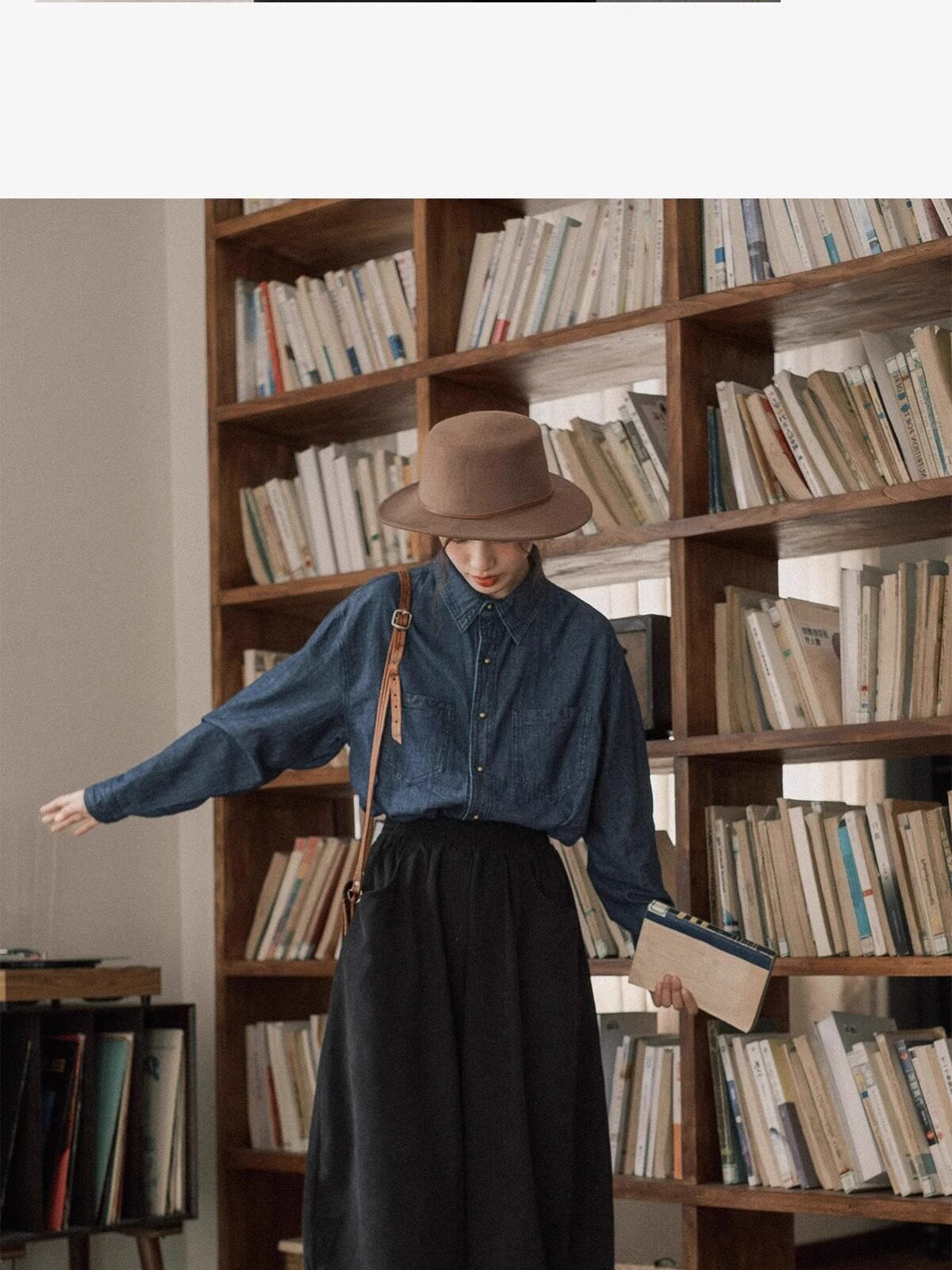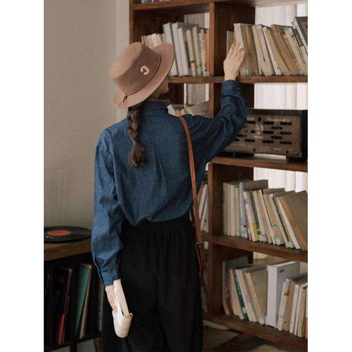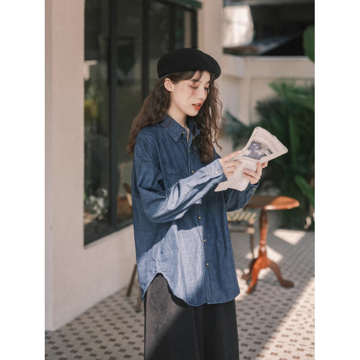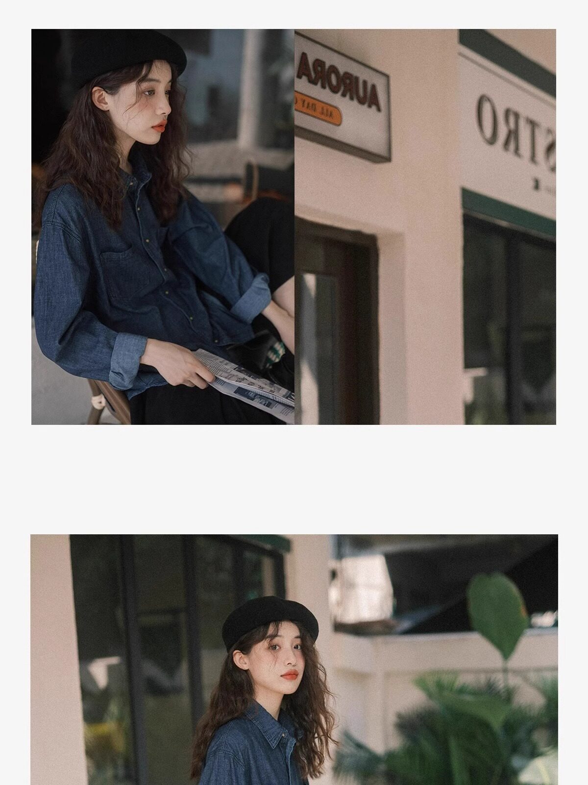 法式復古藍色牛仔襯衫外套女春秋小個子休閒寬鬆襯衣外搭開衫上衣