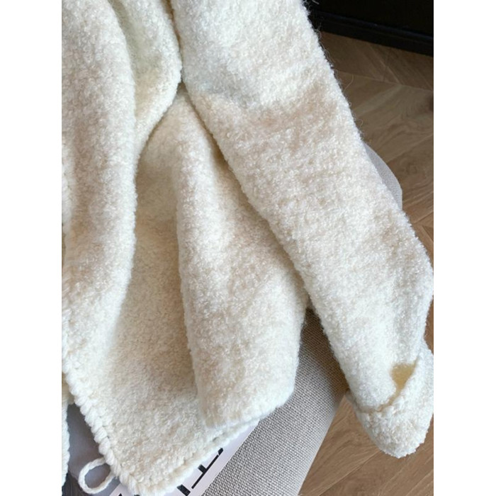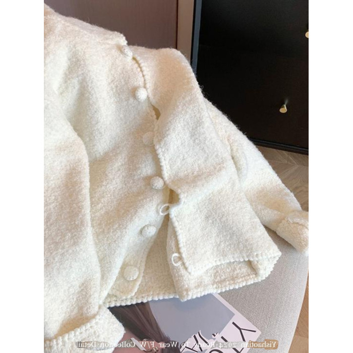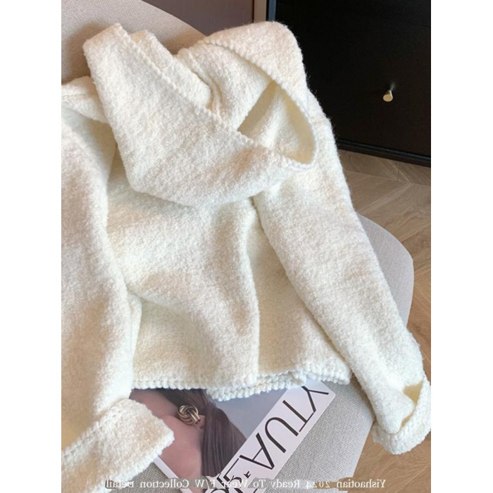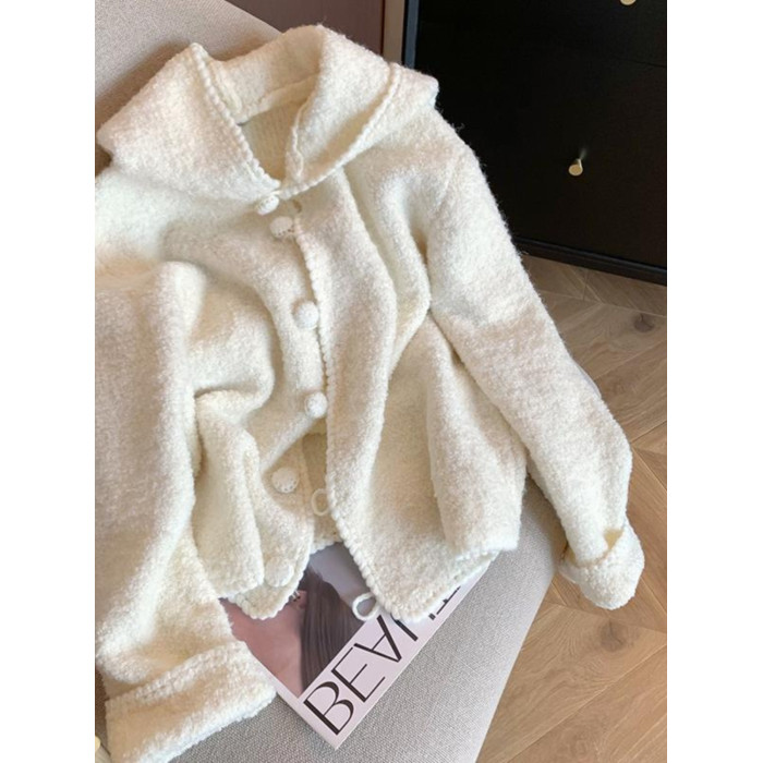 自畱款推薦~米白色連帽毛衣開衫女秋冬新款慵懶寬鬆軟糯針織外套