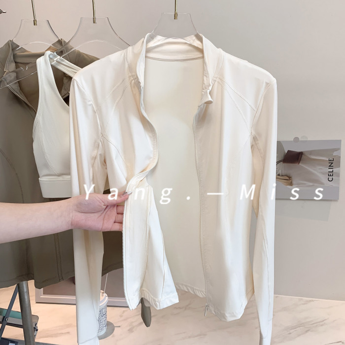 潮流立領防曬運動外套女 絕美顯瘦瑜珈外套 戶外長袖網球健身穿搭