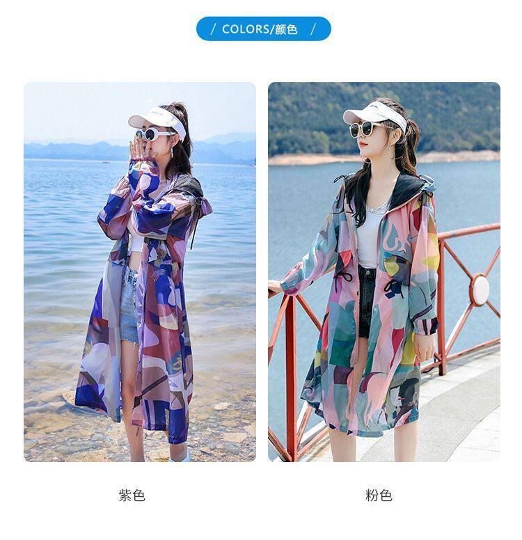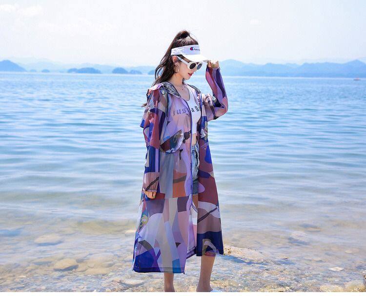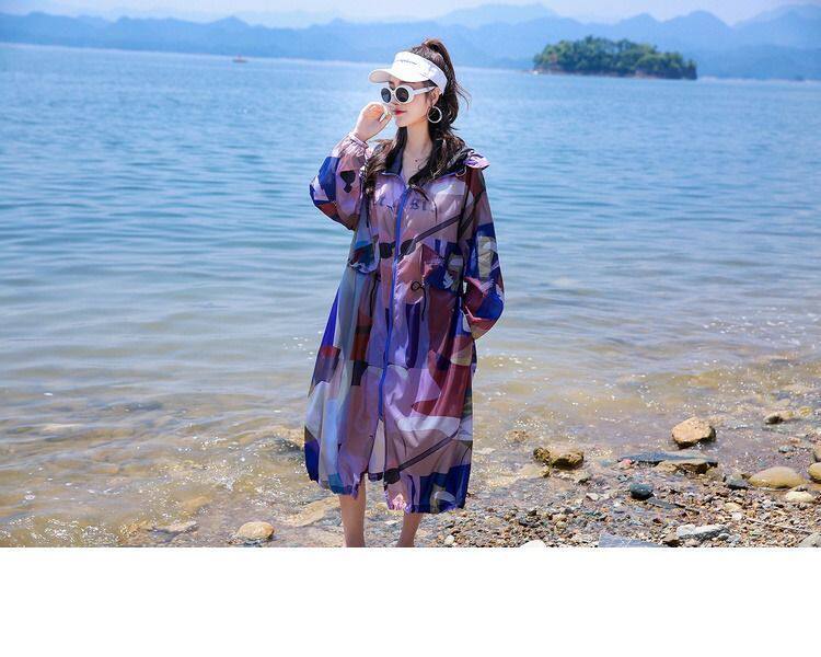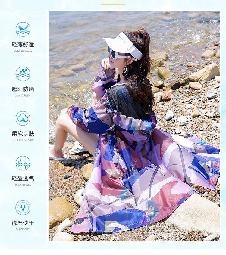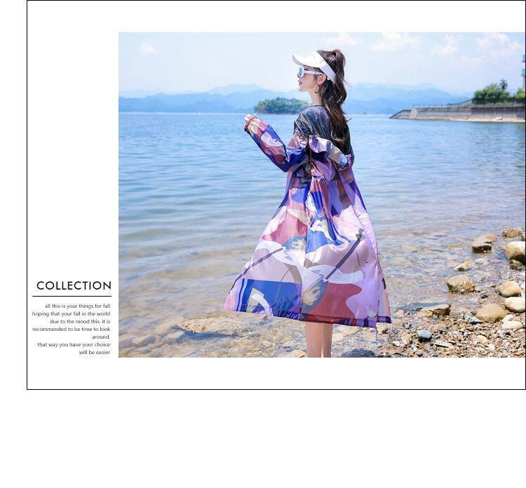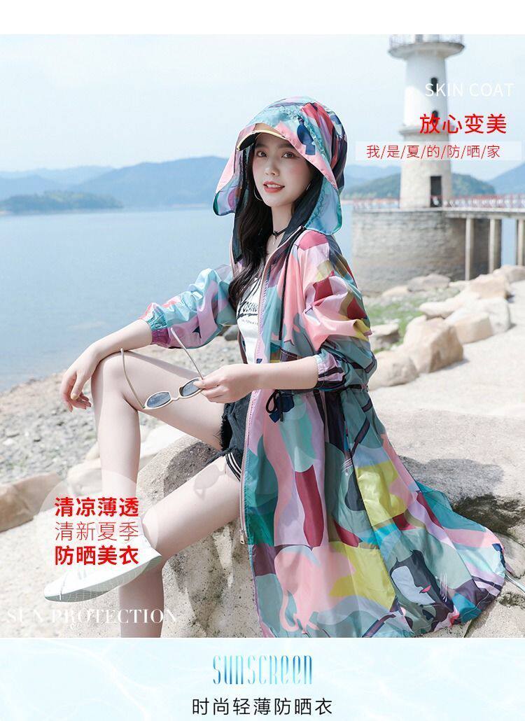 迷彩防曬衣女中長款2023夏新款長袖超仙透氣防曬服過膝洋氣薄外套