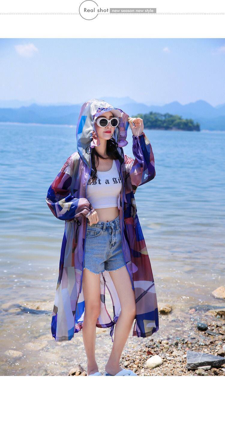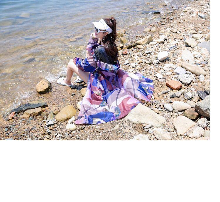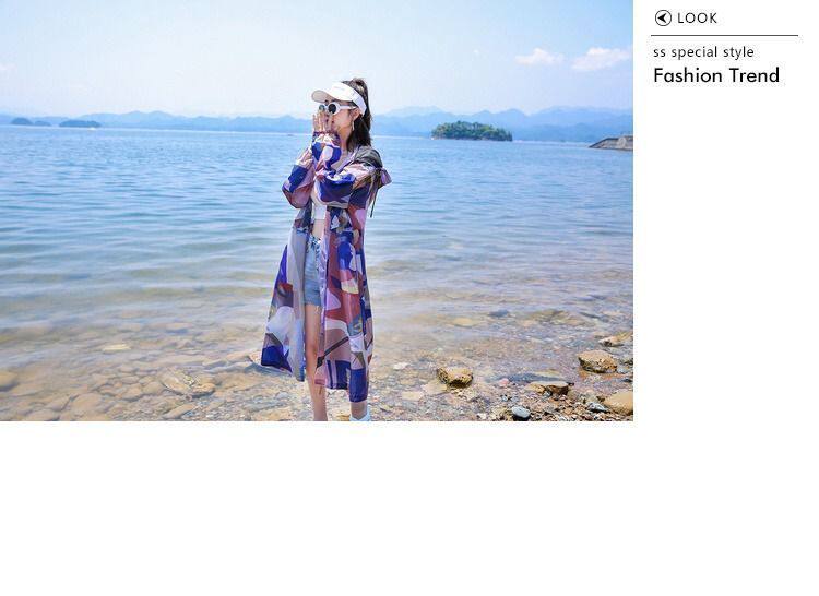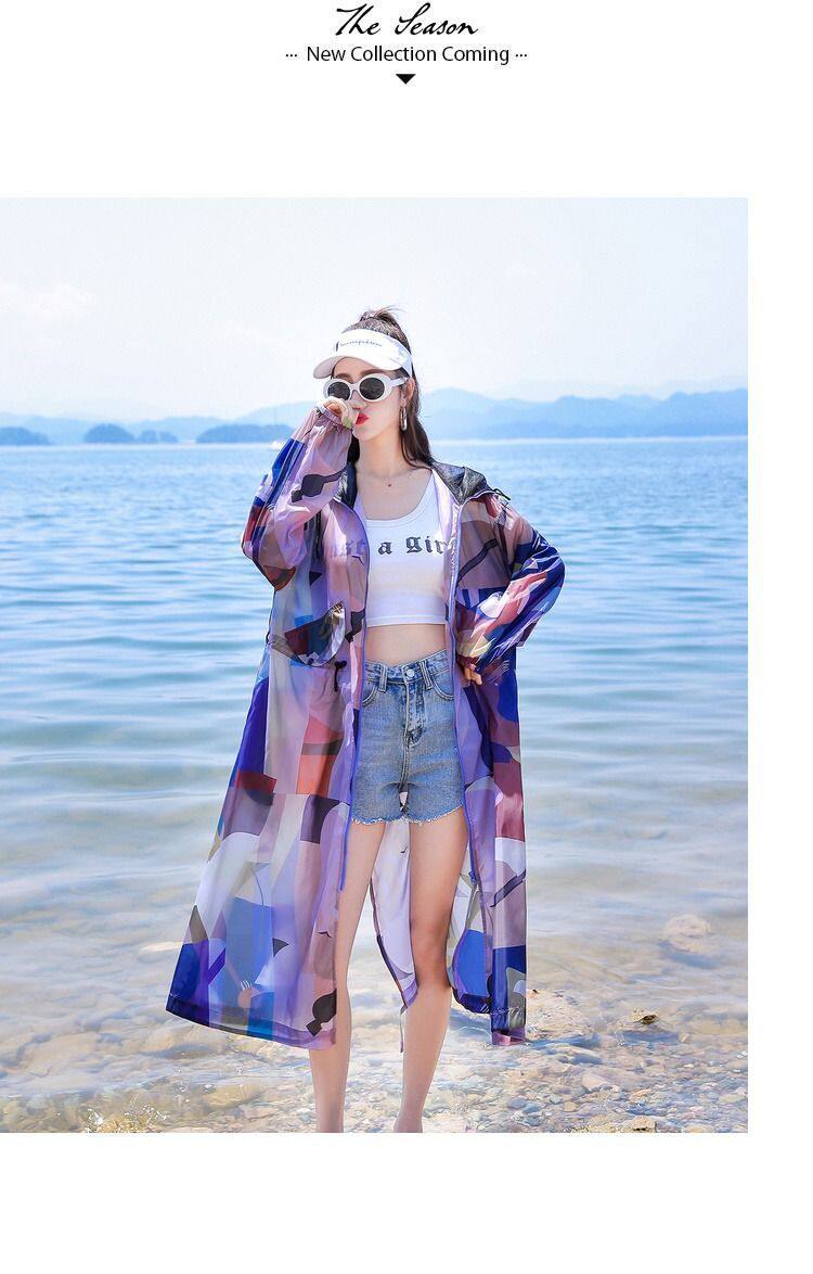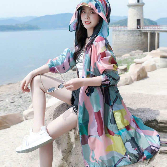 迷彩防曬衣女中長款2023夏新款長袖超仙透氣防曬服過膝洋氣薄外套
