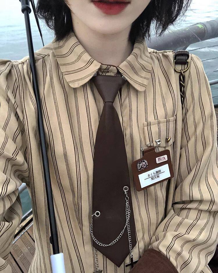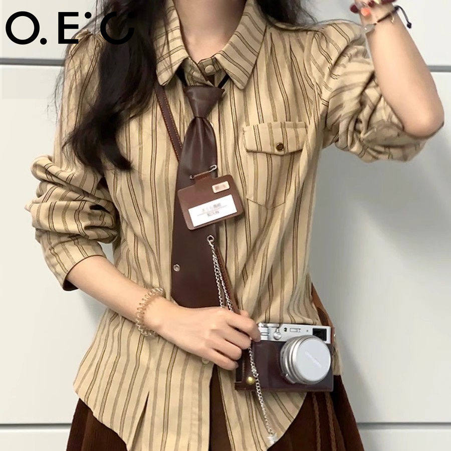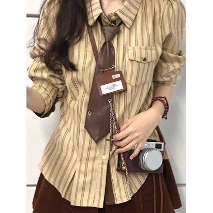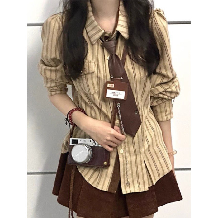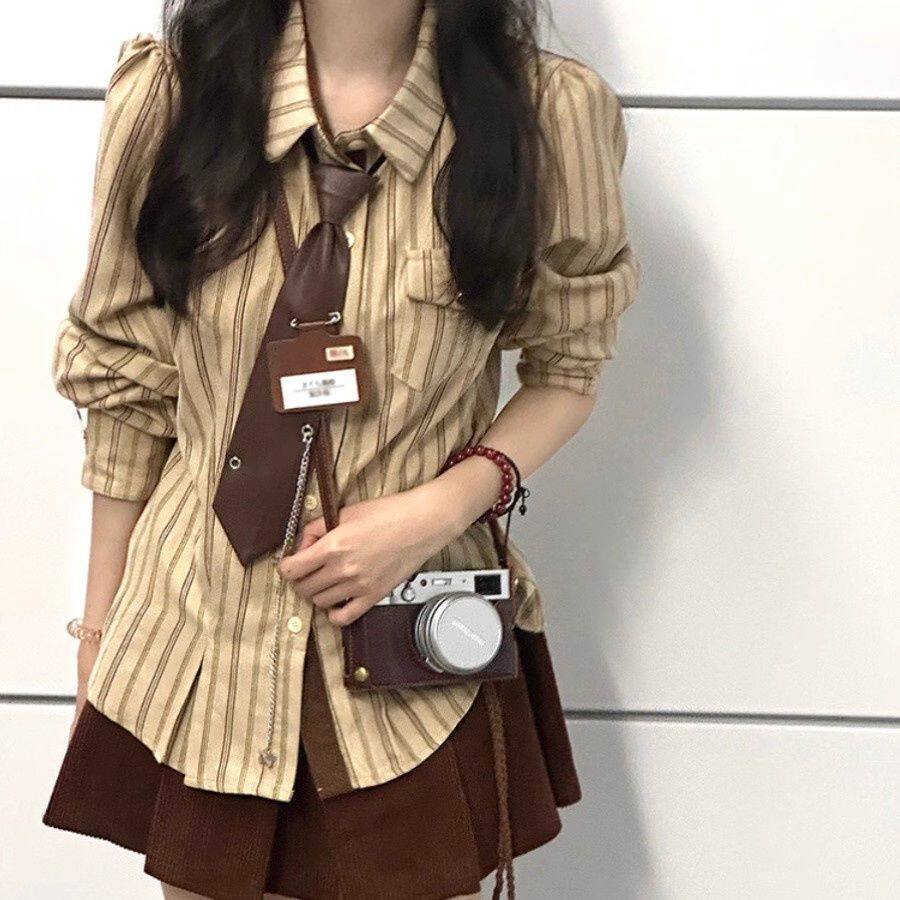 2025春秋復古學院風條紋設計感小衆襯衫長袖寬鬆新款韓版襯衣潮