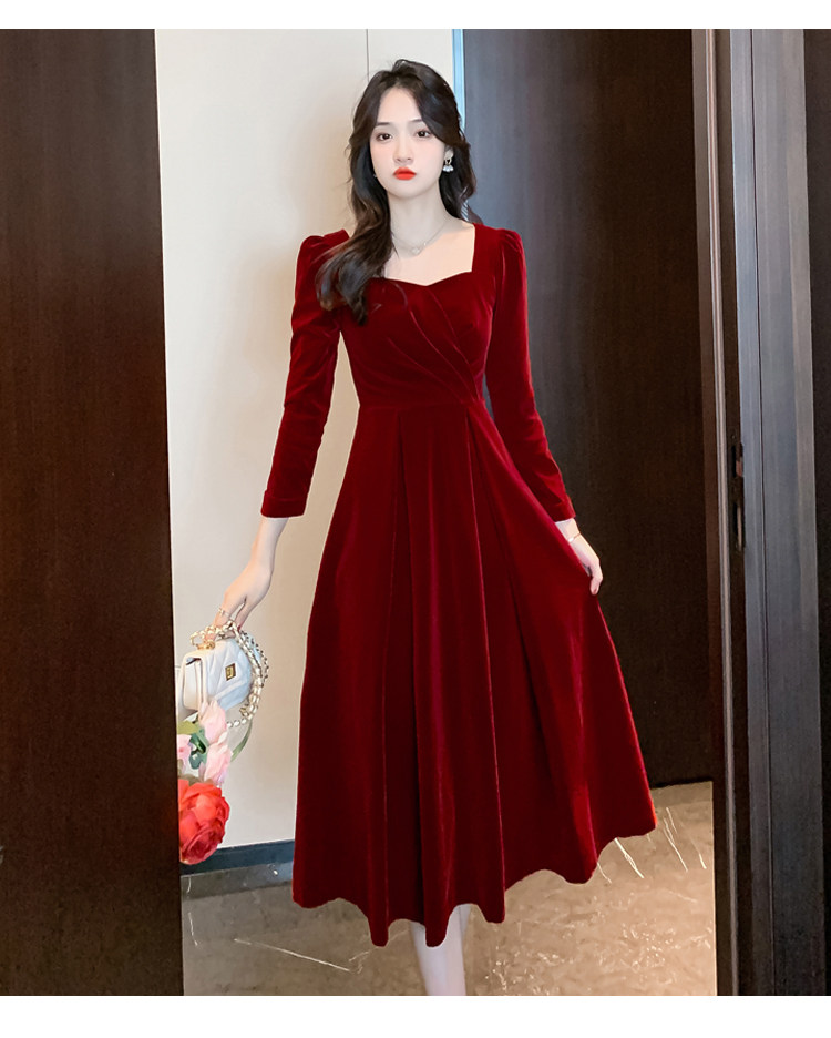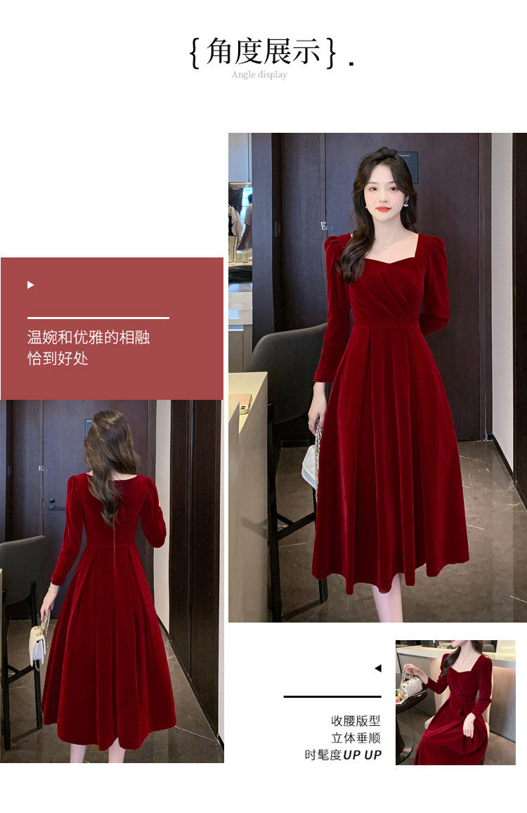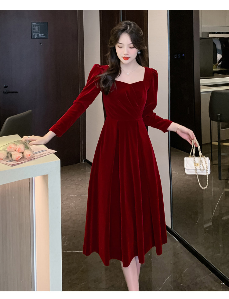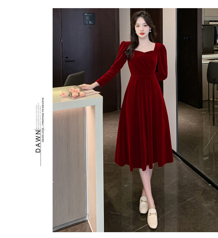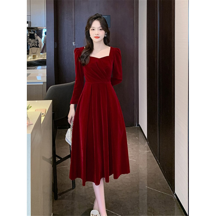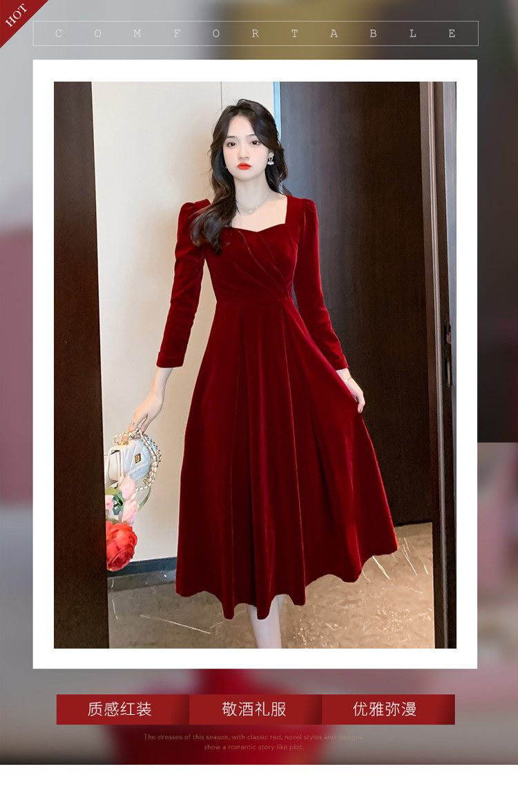 2025秋冬新款復古小紅裙結婚訂婚廻門敬酒服高級感禮服紅色連衣裙