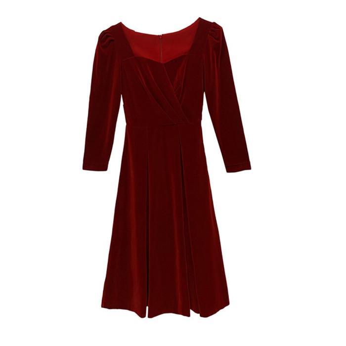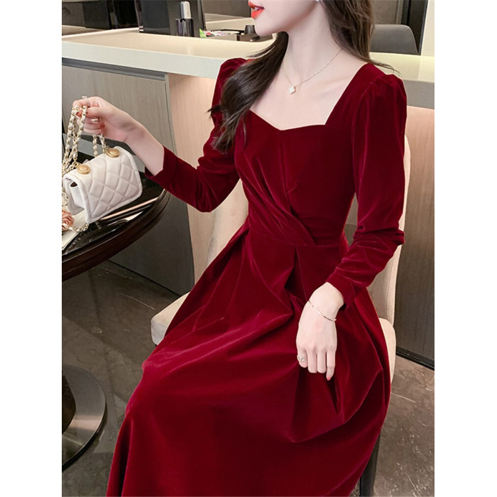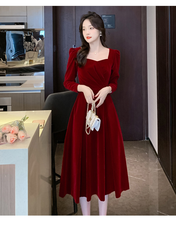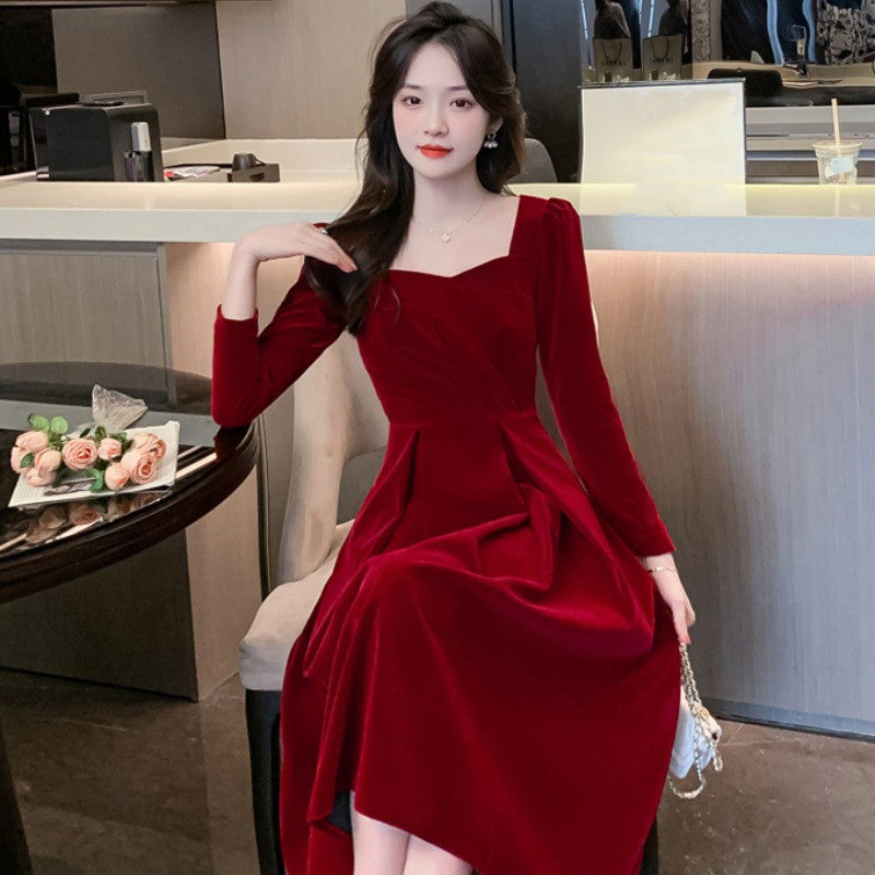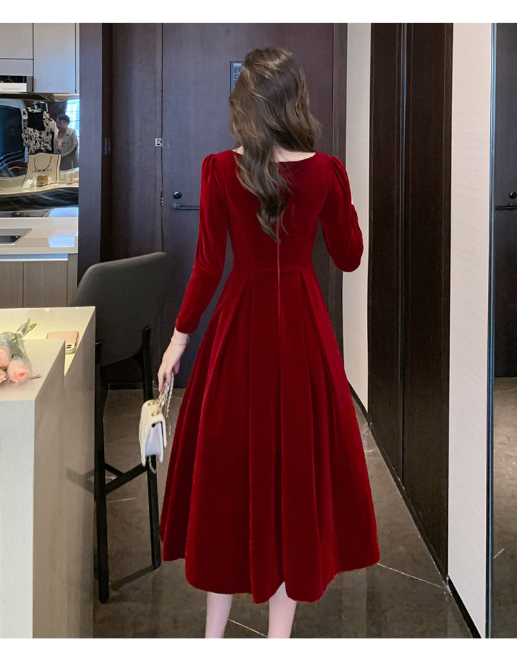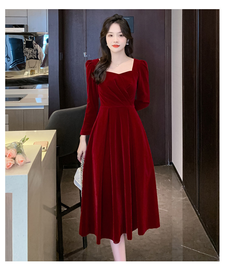 2025秋冬新款復古小紅裙結婚訂婚廻門敬酒服高級感禮服紅色連衣裙