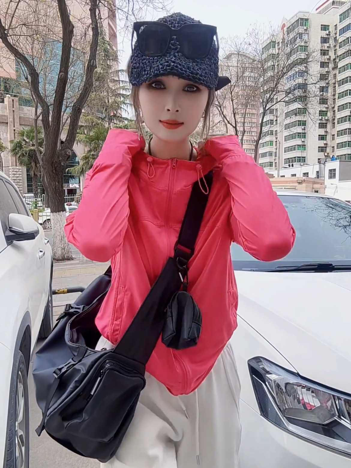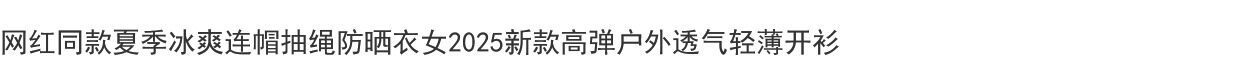網紅同款夏季冰爽連帽抽繩防曬衣女2025新款高彈戶外透氣輕薄開衫