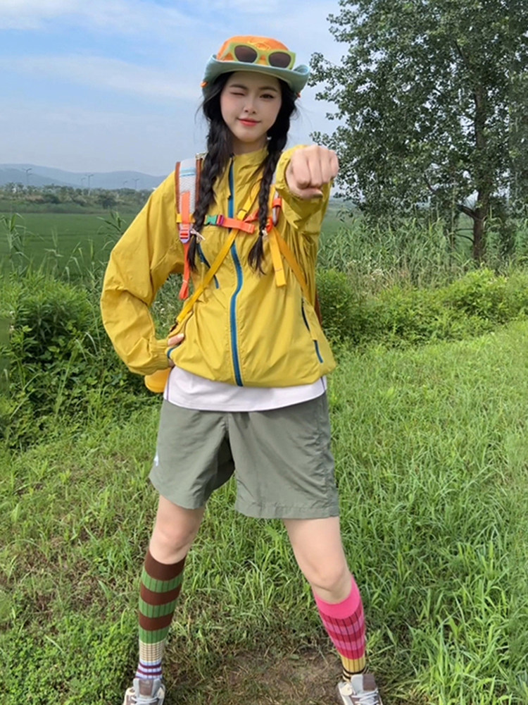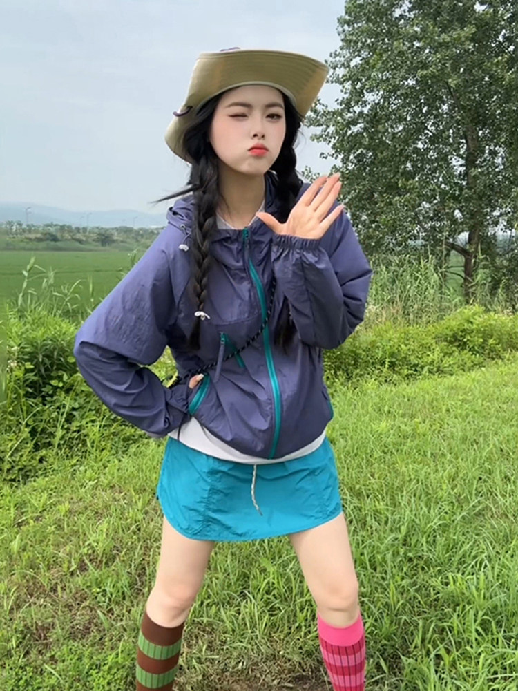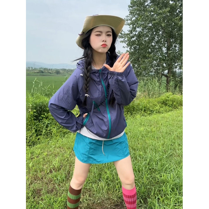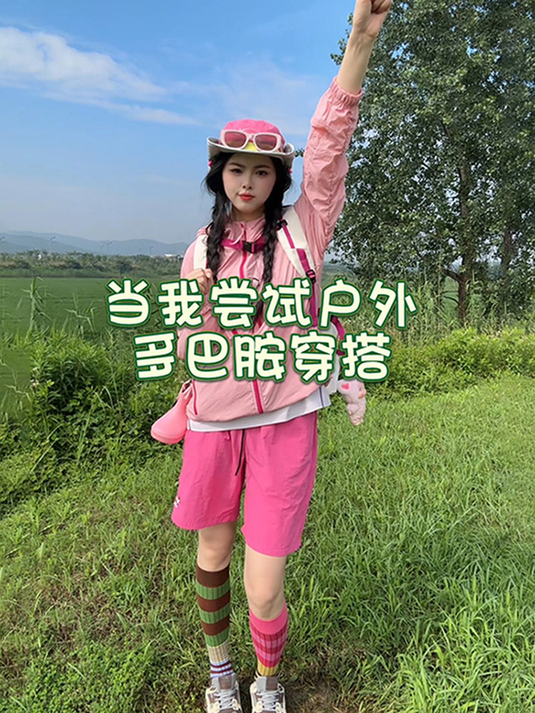 粉色多巴胺連帽防曬衣女男款防紫外線情侶外套冰絲速乾戶外沖鋒衣