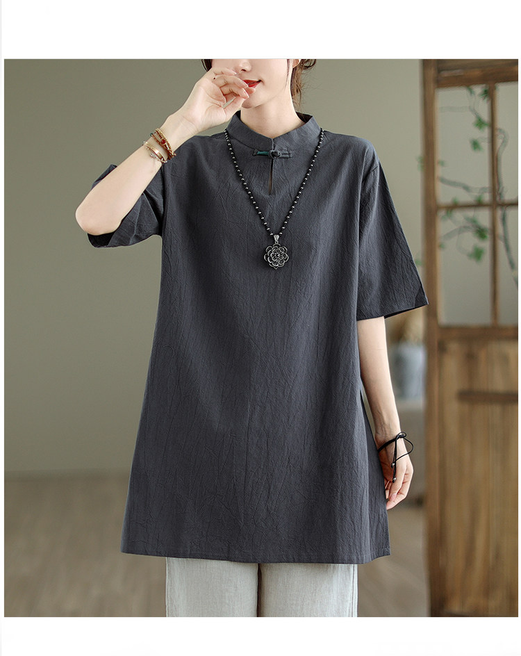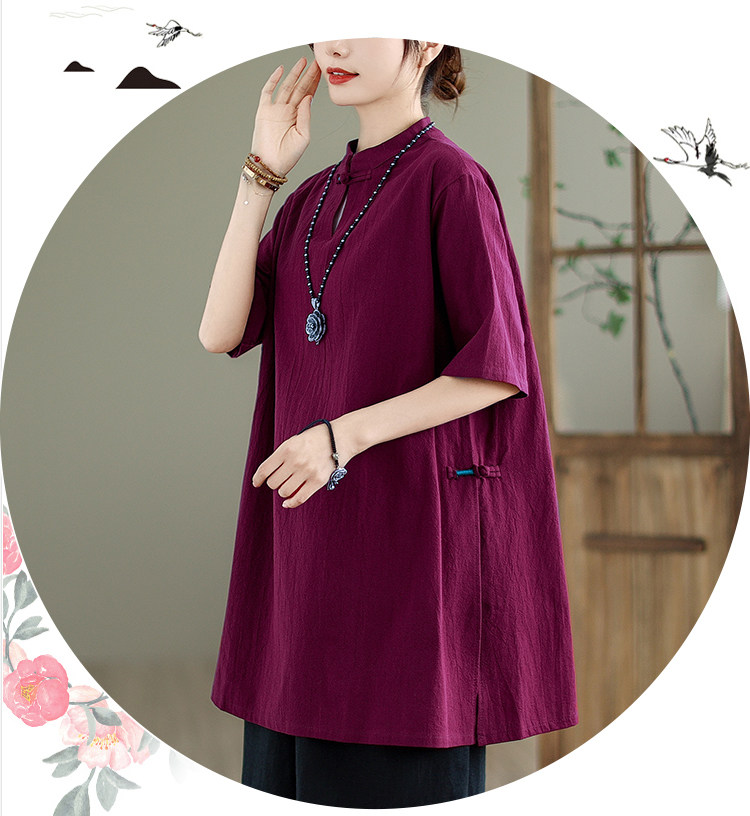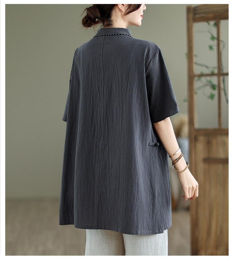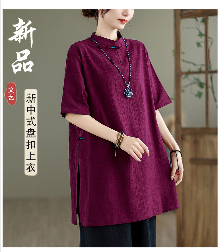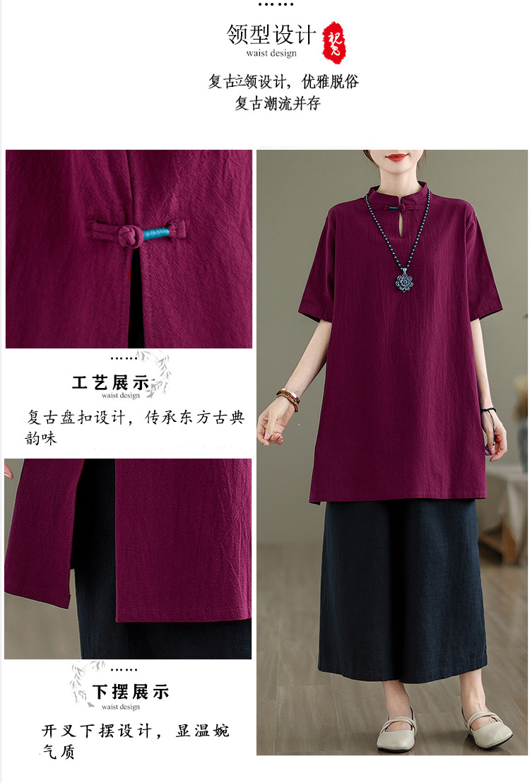 高級減齡大碼復古文藝百搭夏新款高檔文藝優雅復古套頭襯衫上衣女