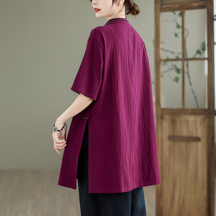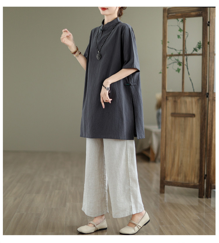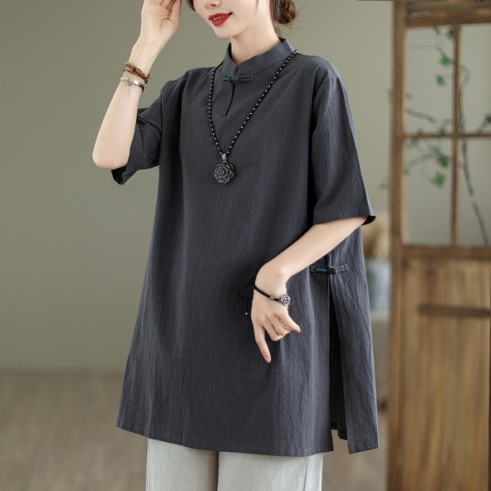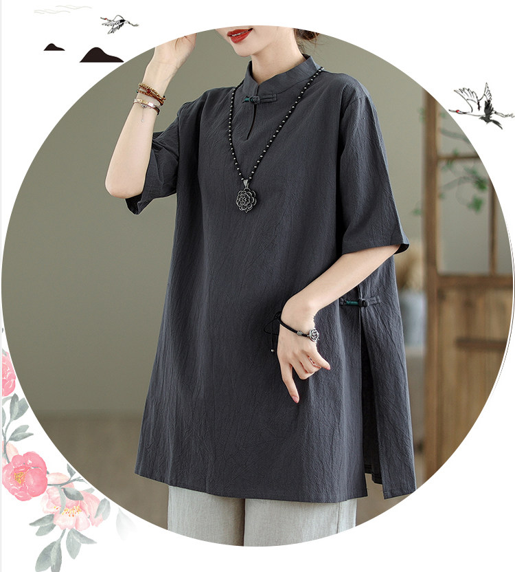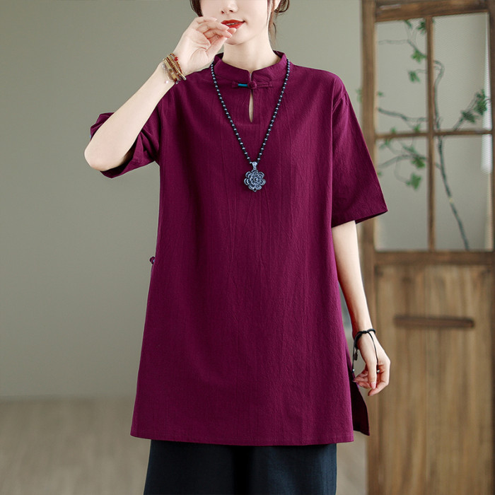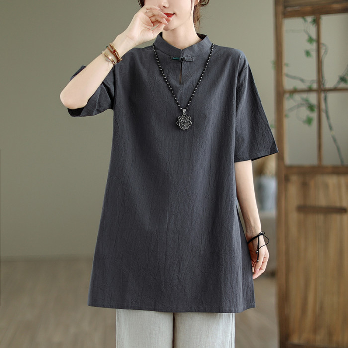 高級減齡大碼復古文藝百搭夏新款高檔文藝優雅復古套頭襯衫上衣女