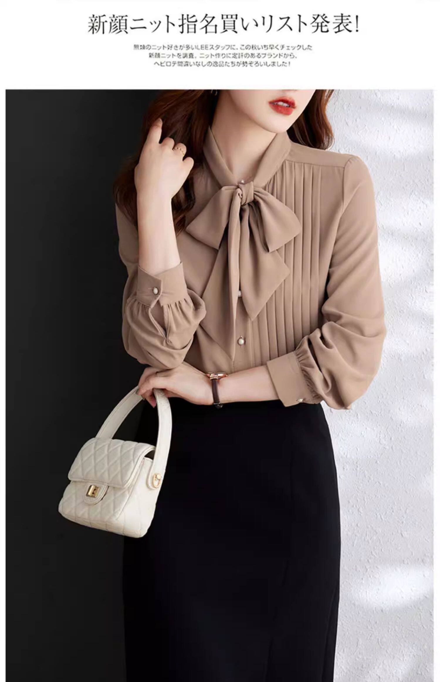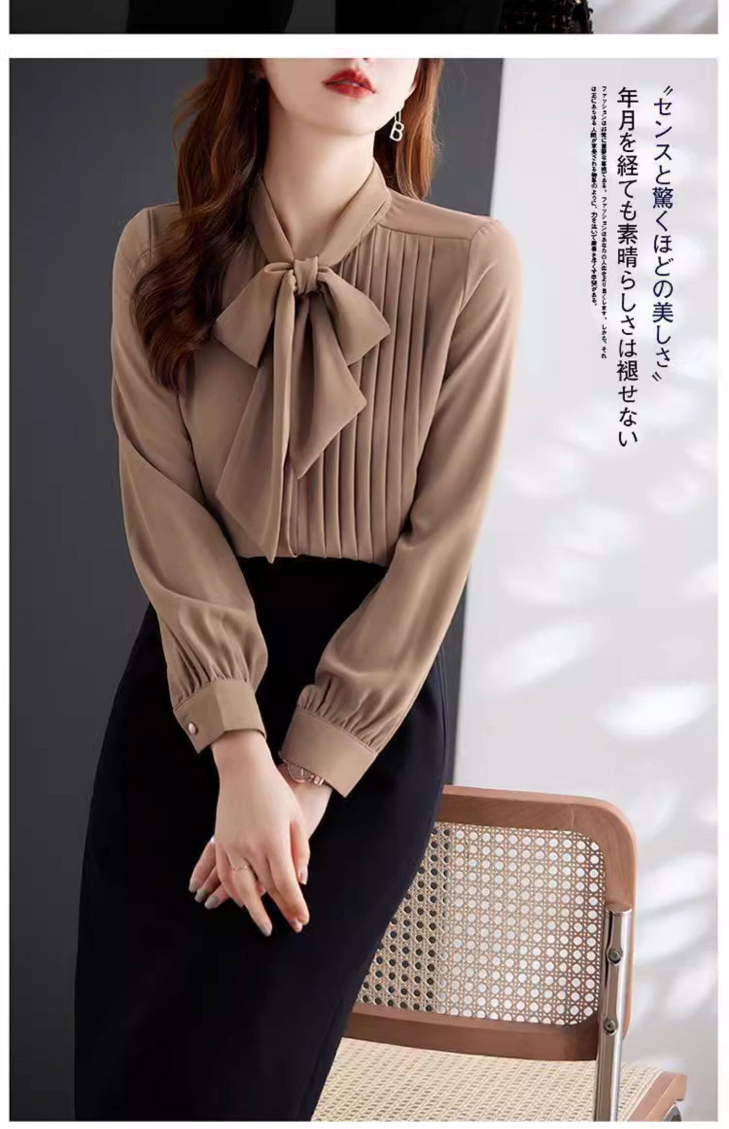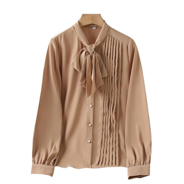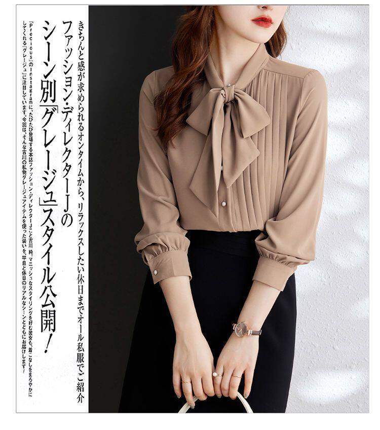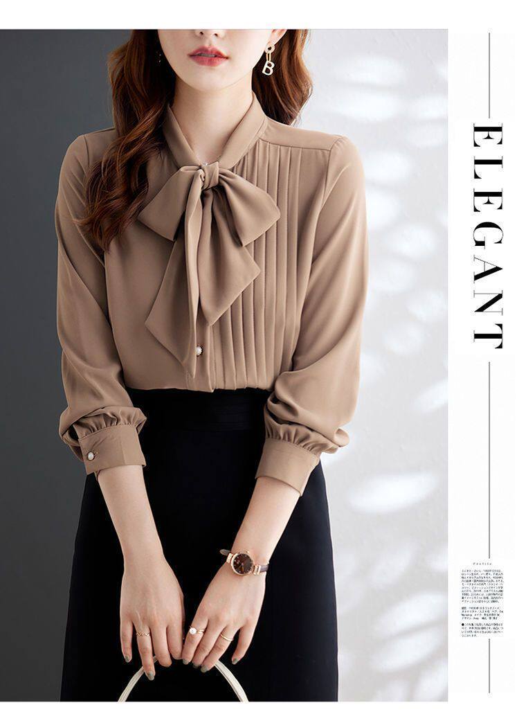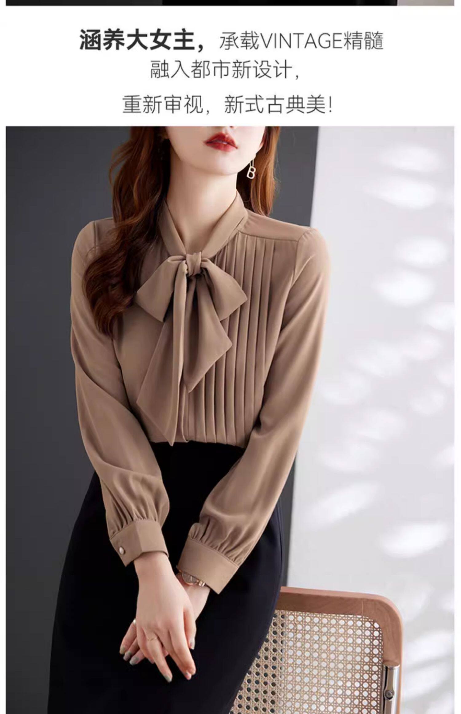 淺咖色系帶雪紡長袖襯衫女蝴蝶結領不規則設計感2025新款洋氣時尚