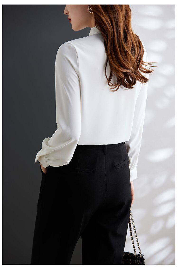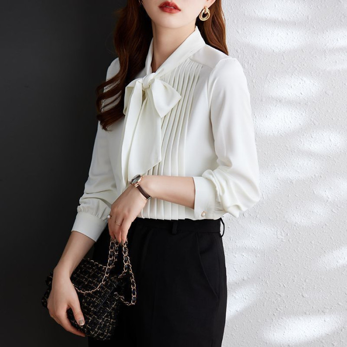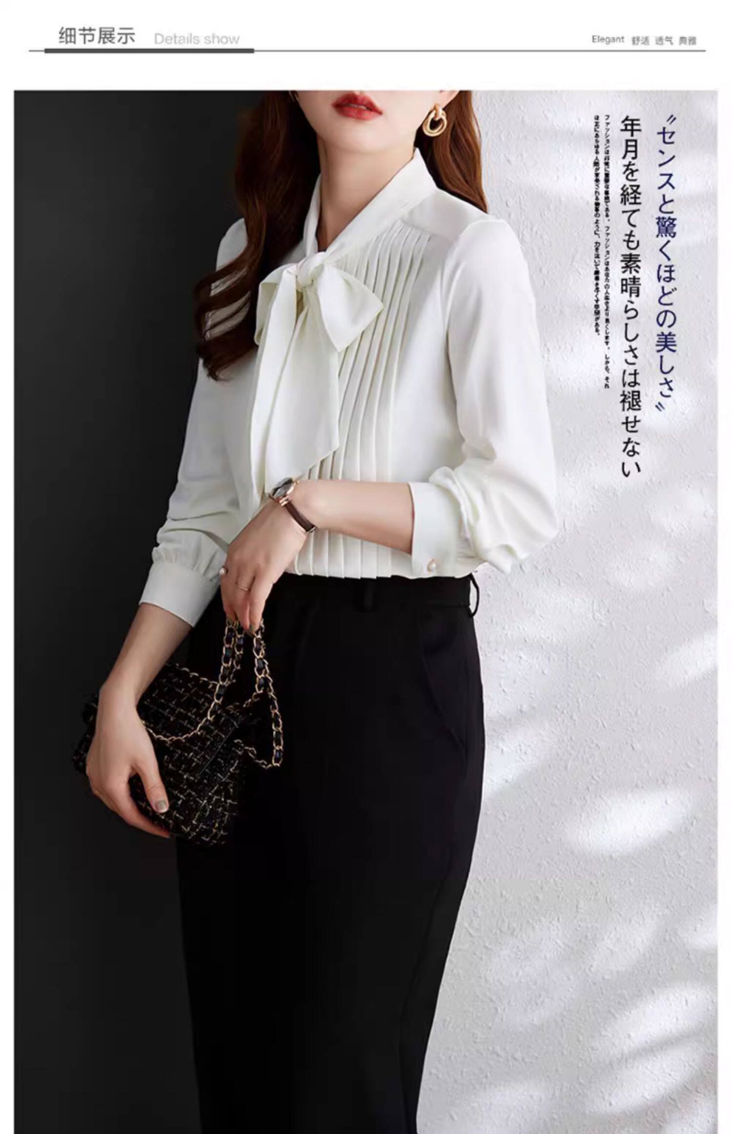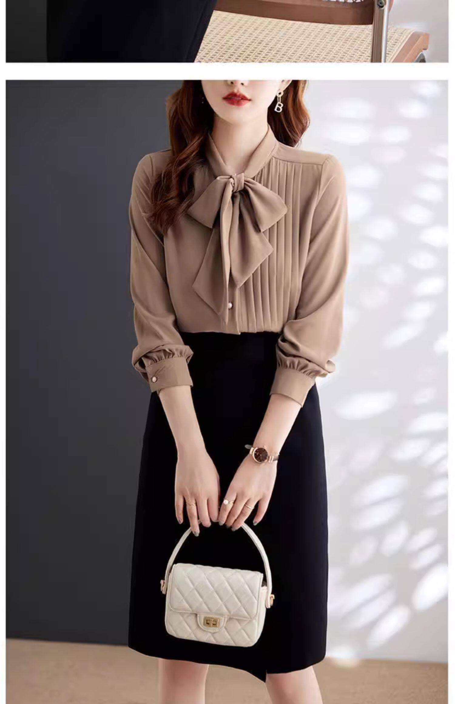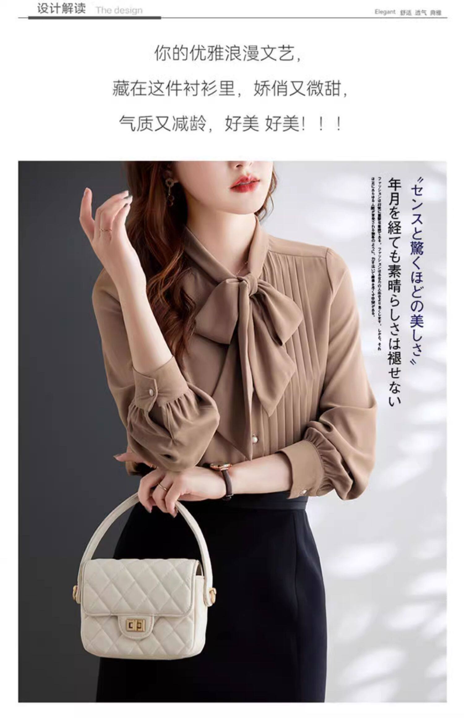 淺咖色系帶雪紡長袖襯衫女蝴蝶結領不規則設計感2025新款洋氣時尚