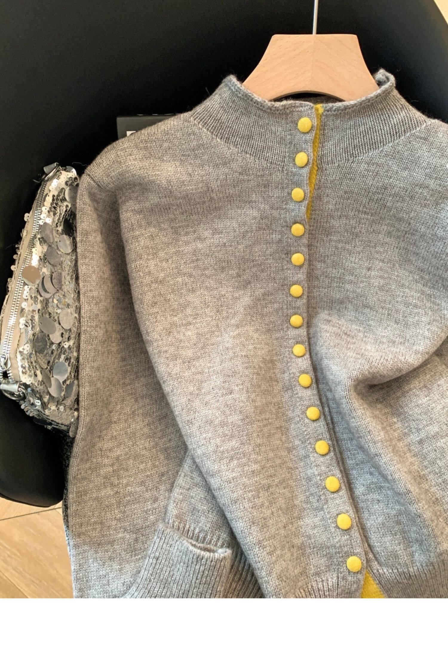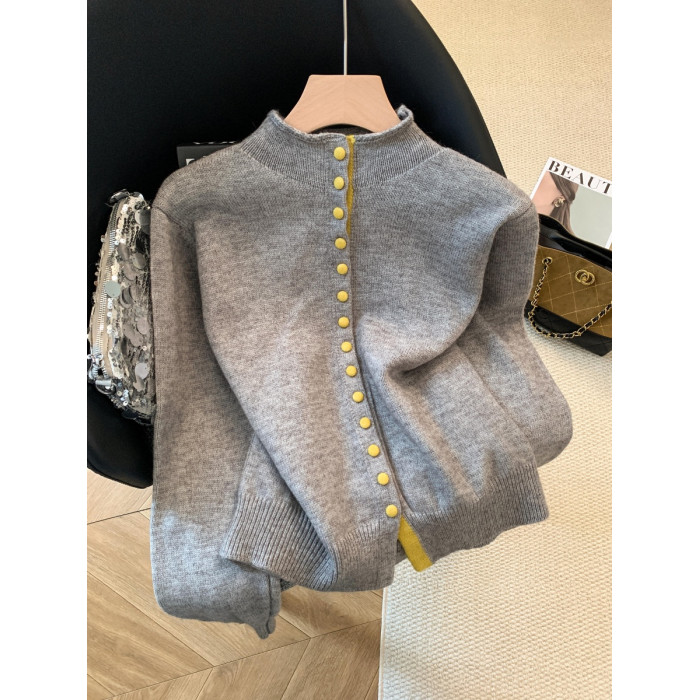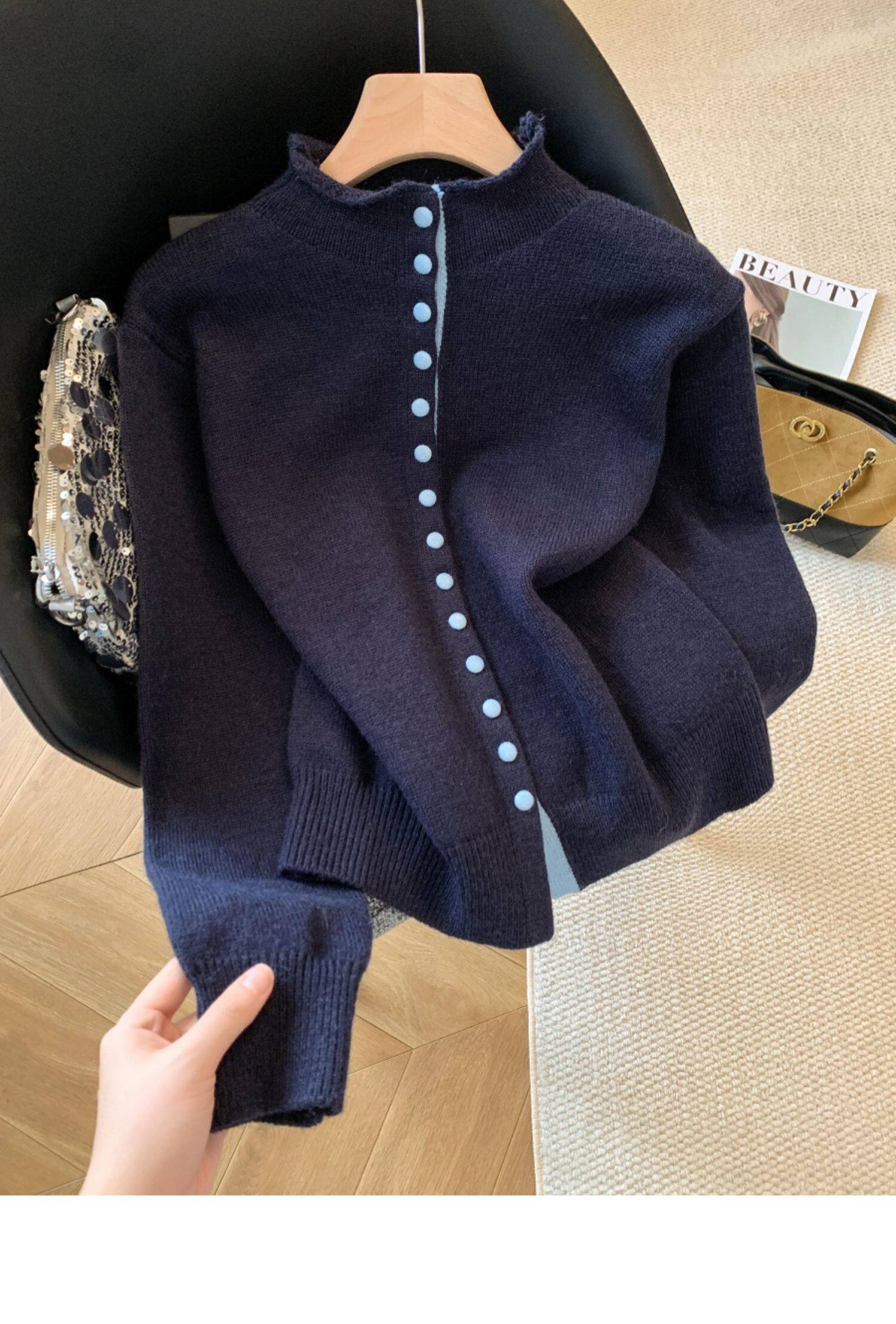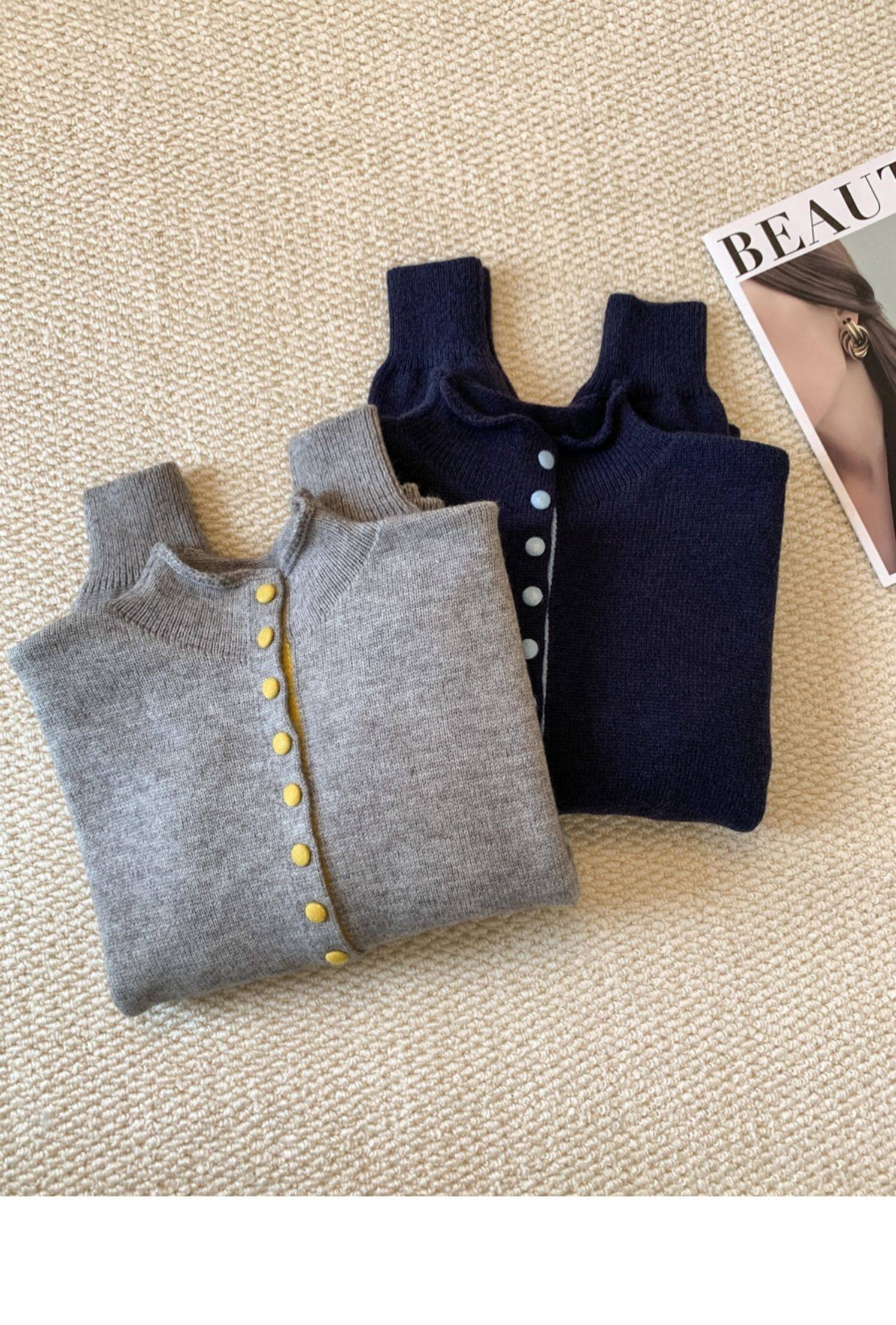 廣州十三行高貨爆款~獨特超好看 撞色立領針織開衫內搭上衣女秋冬