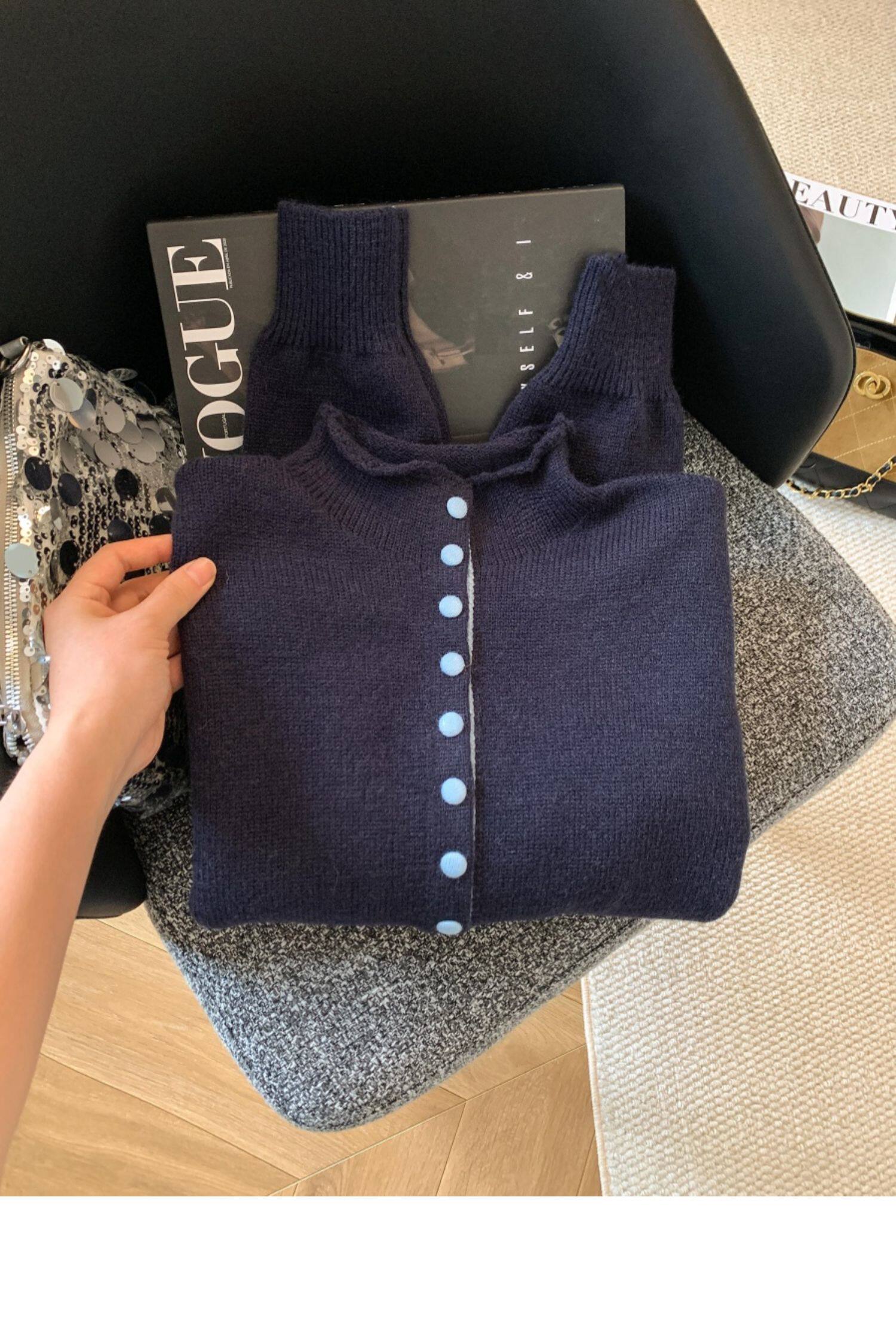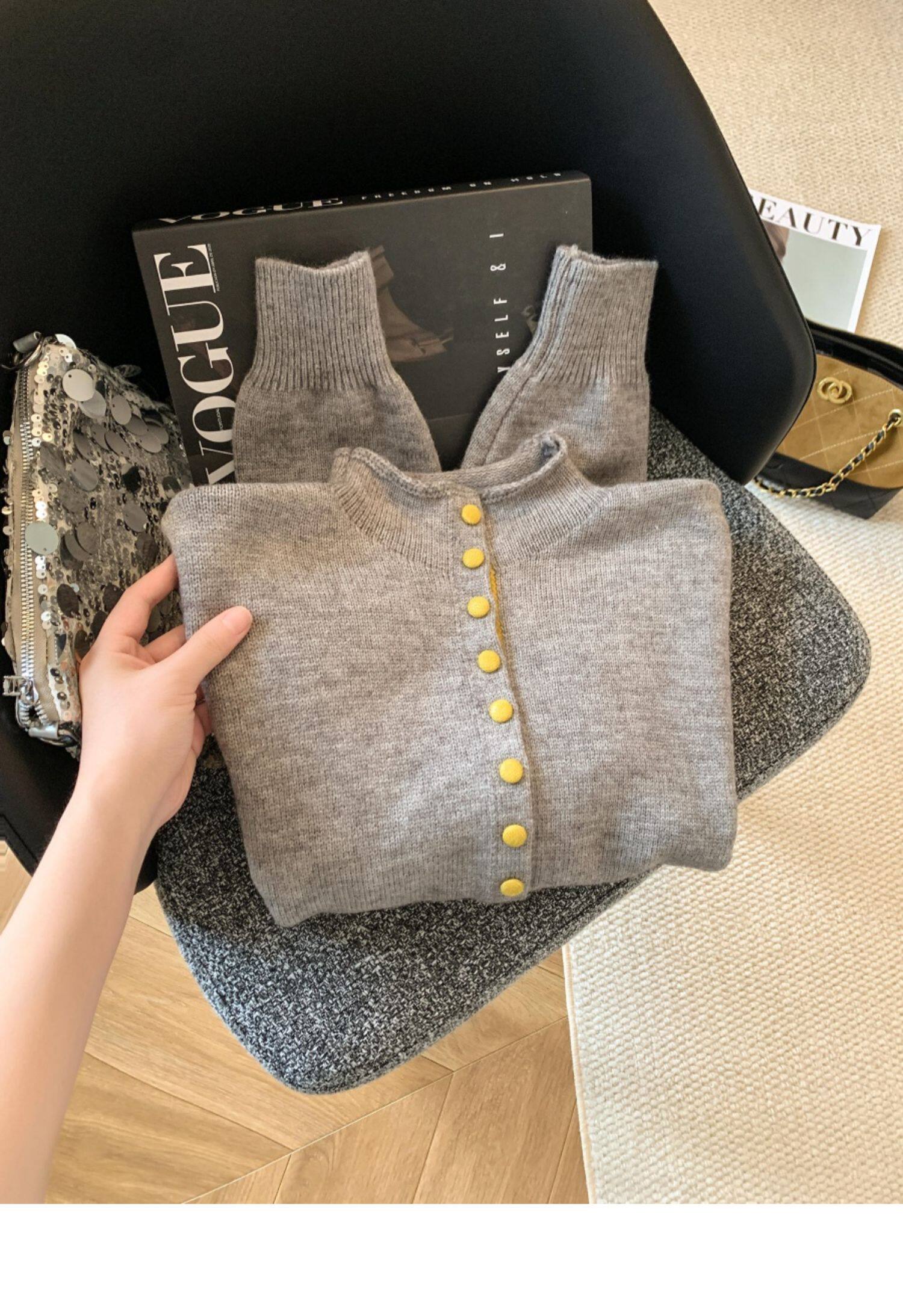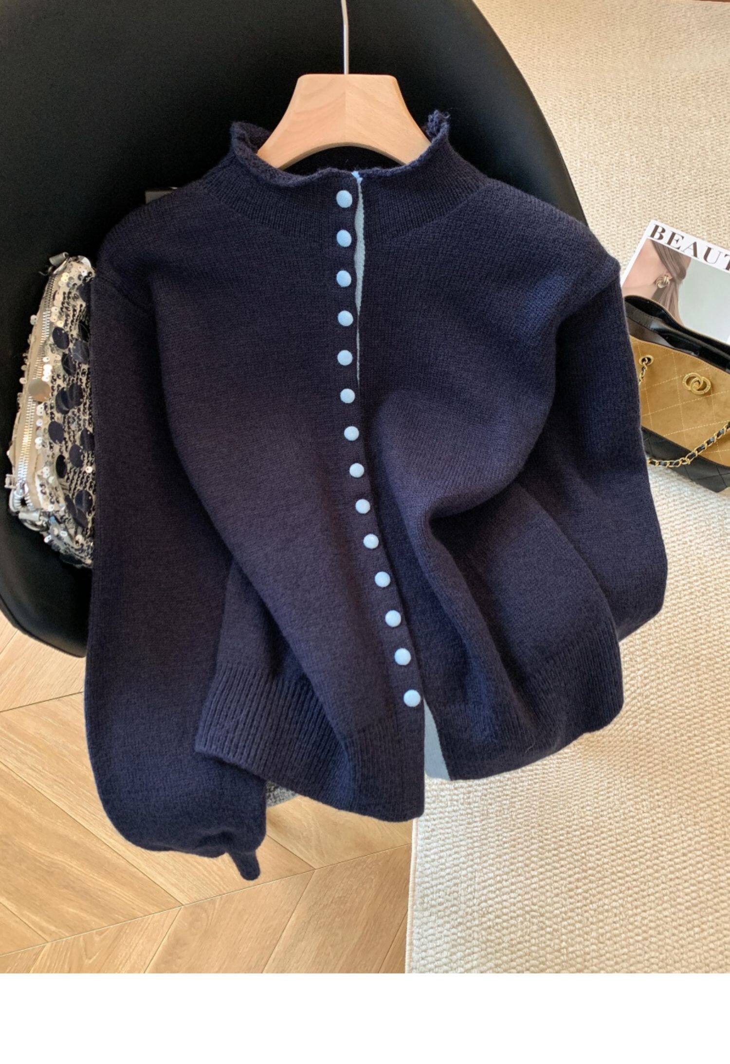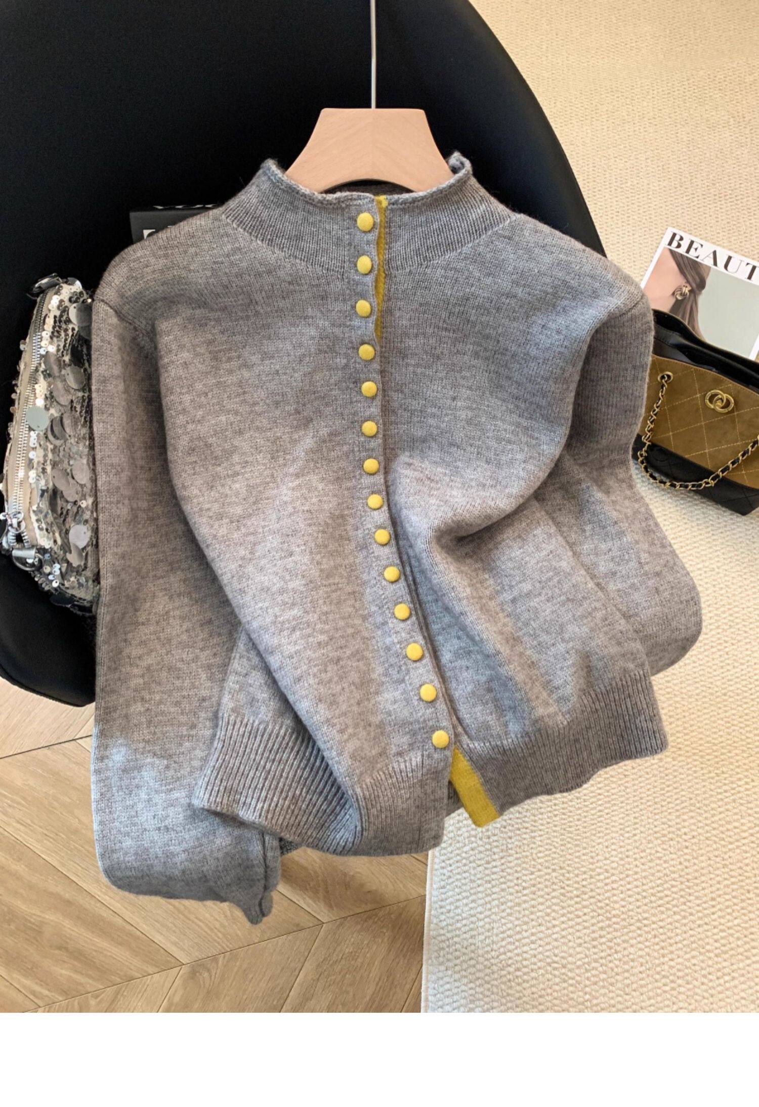 廣州十三行高貨爆款~獨特超好看 撞色立領針織開衫內搭上衣女秋冬