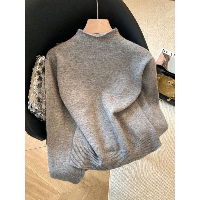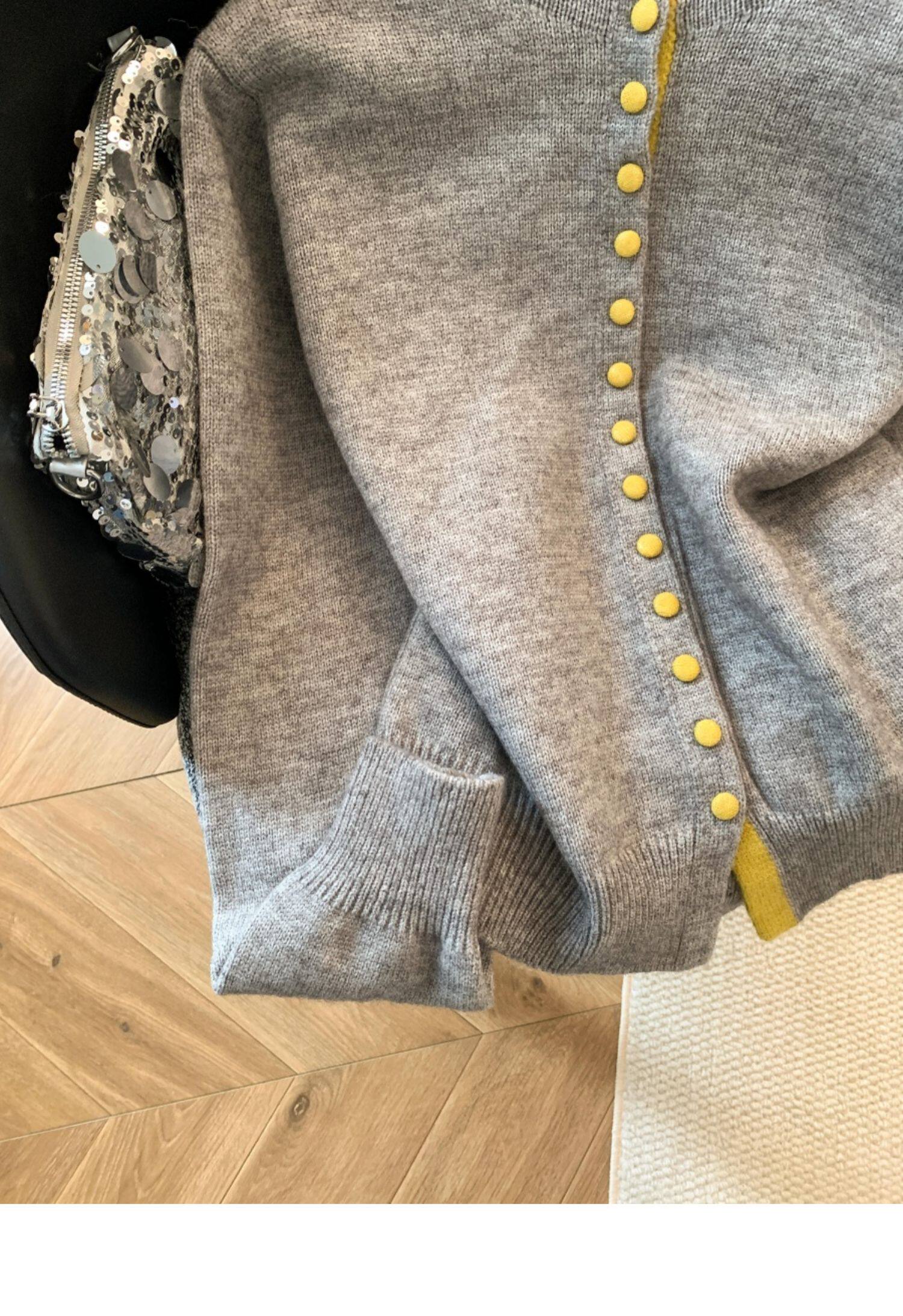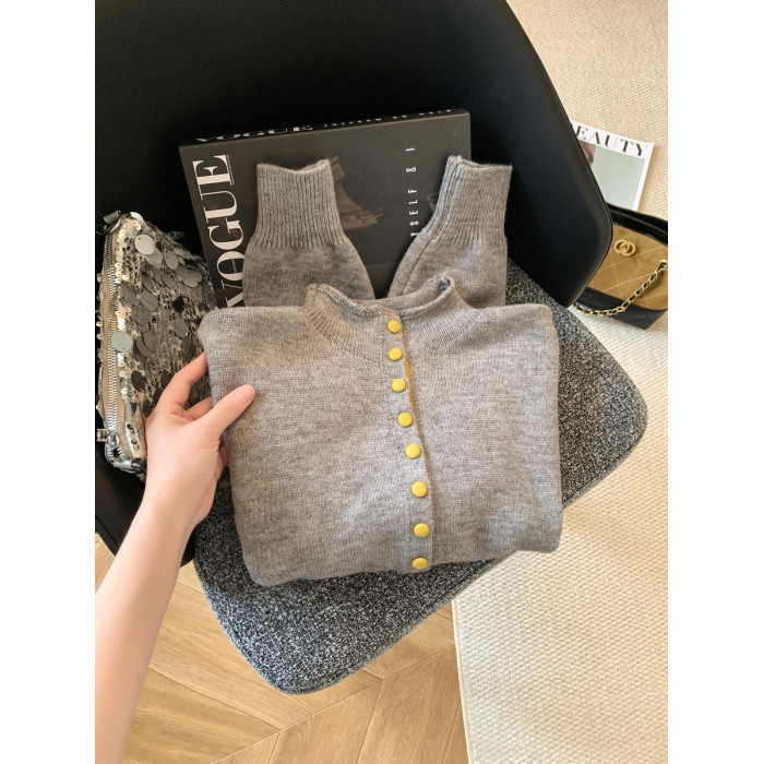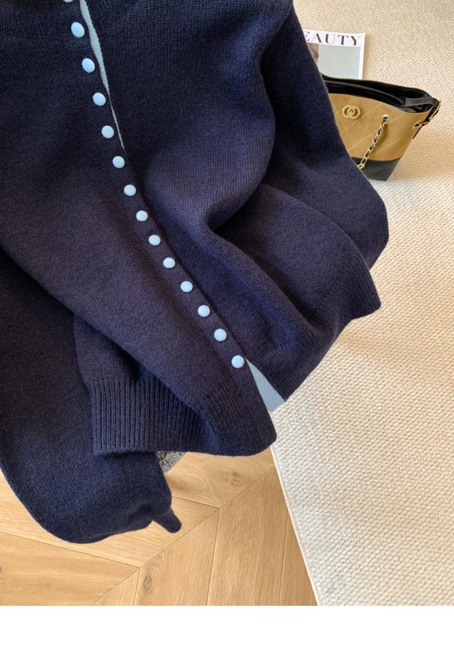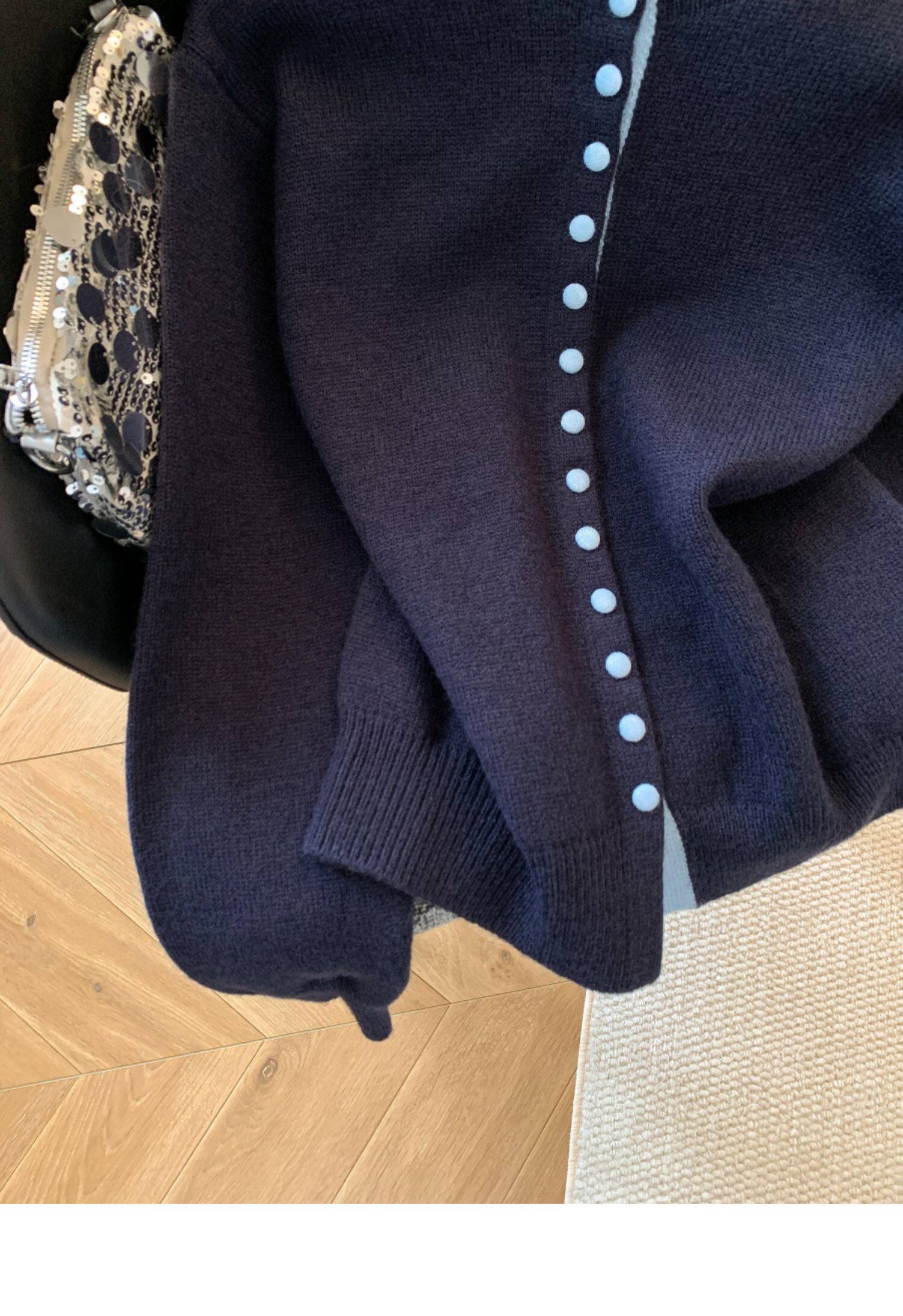 廣州十三行高貨爆款~獨特超好看 撞色立領針織開衫內搭上衣女秋冬
