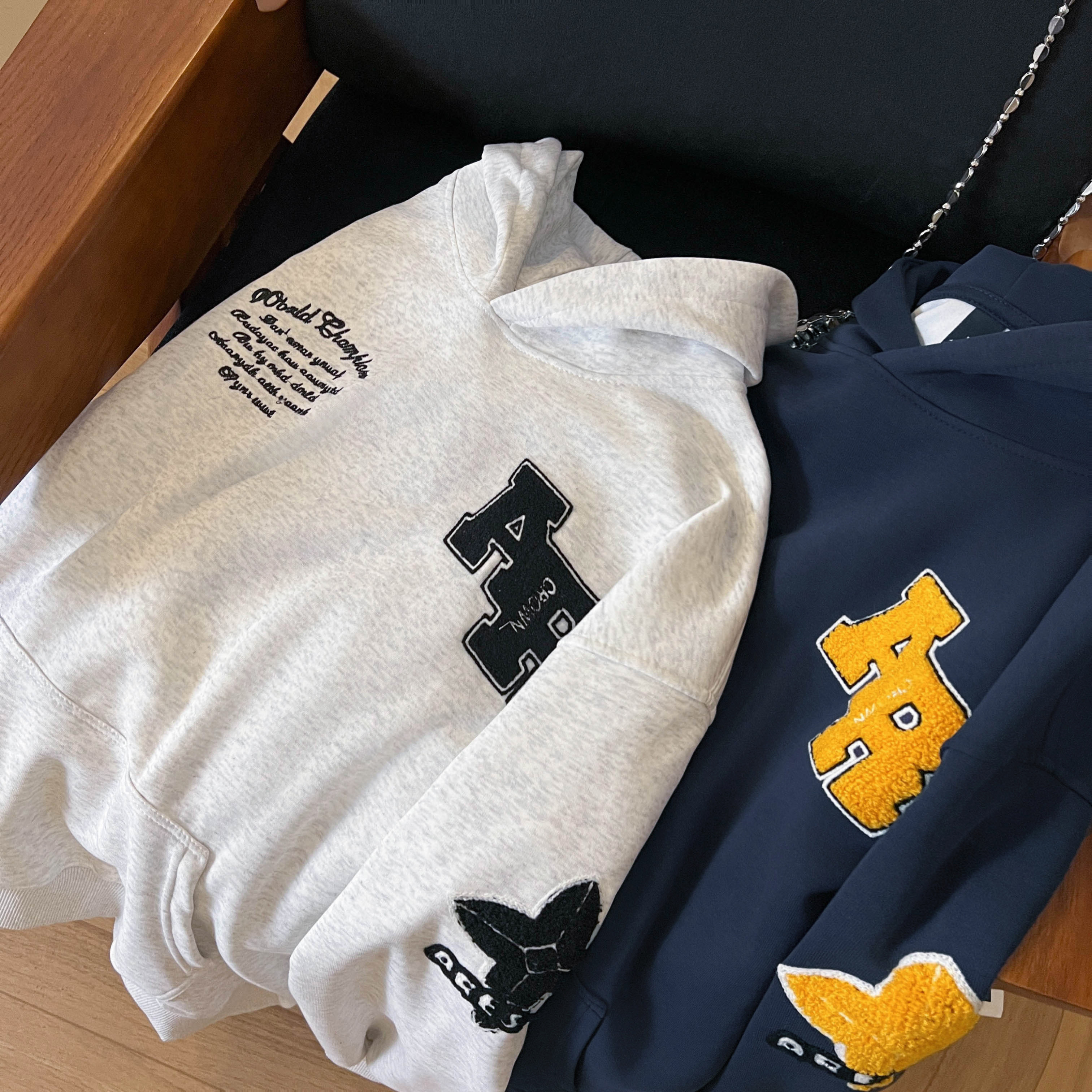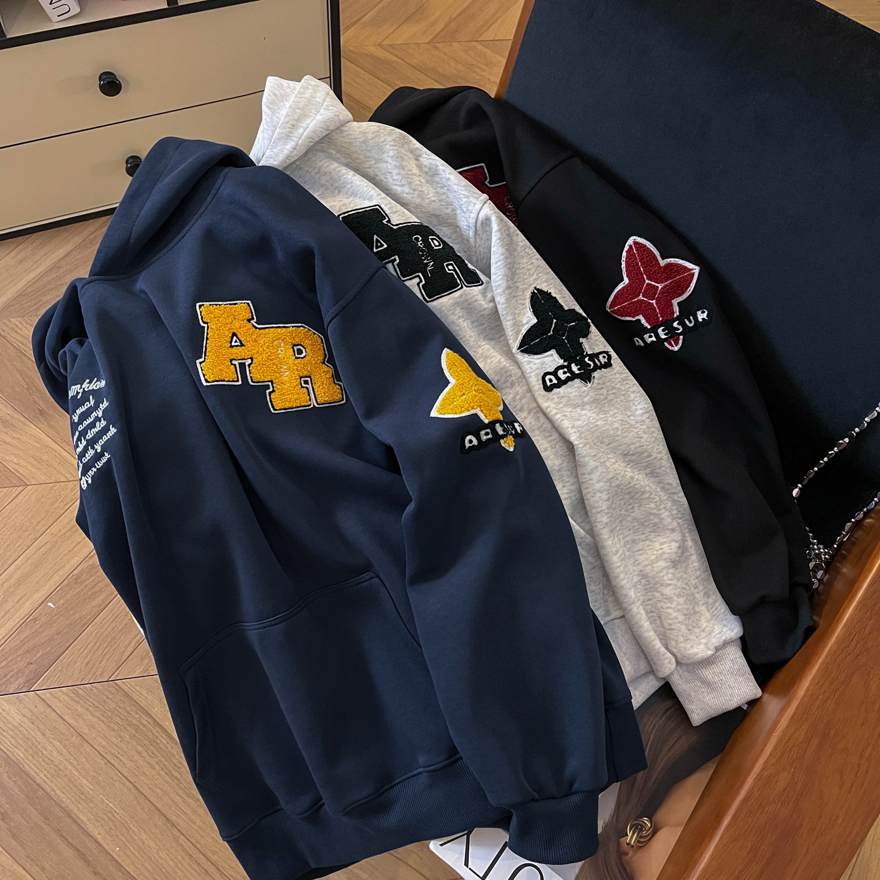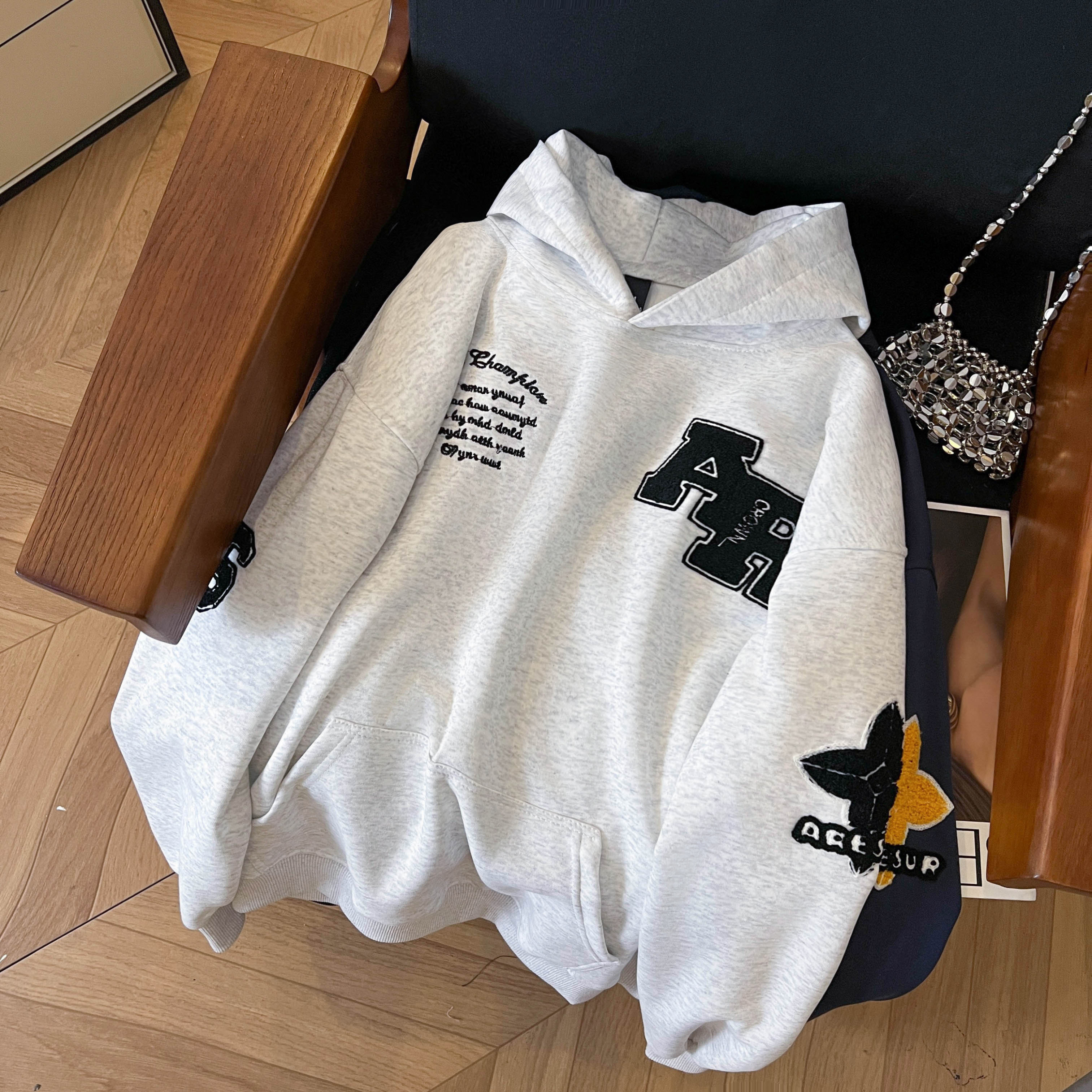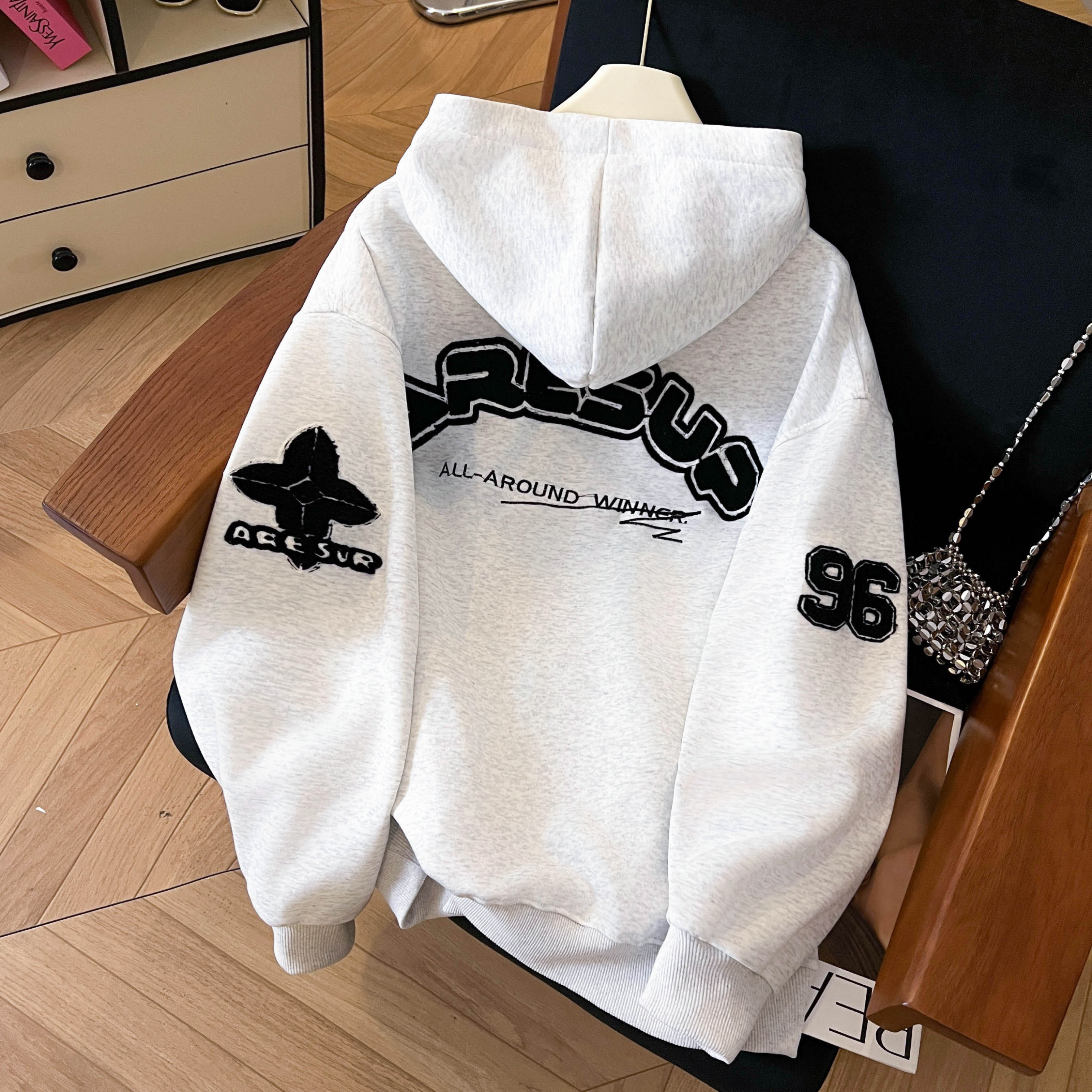 國潮牌美式高街毛巾綉連帽衛衣女2025新款潮牌痞帥設計感小衆上衣