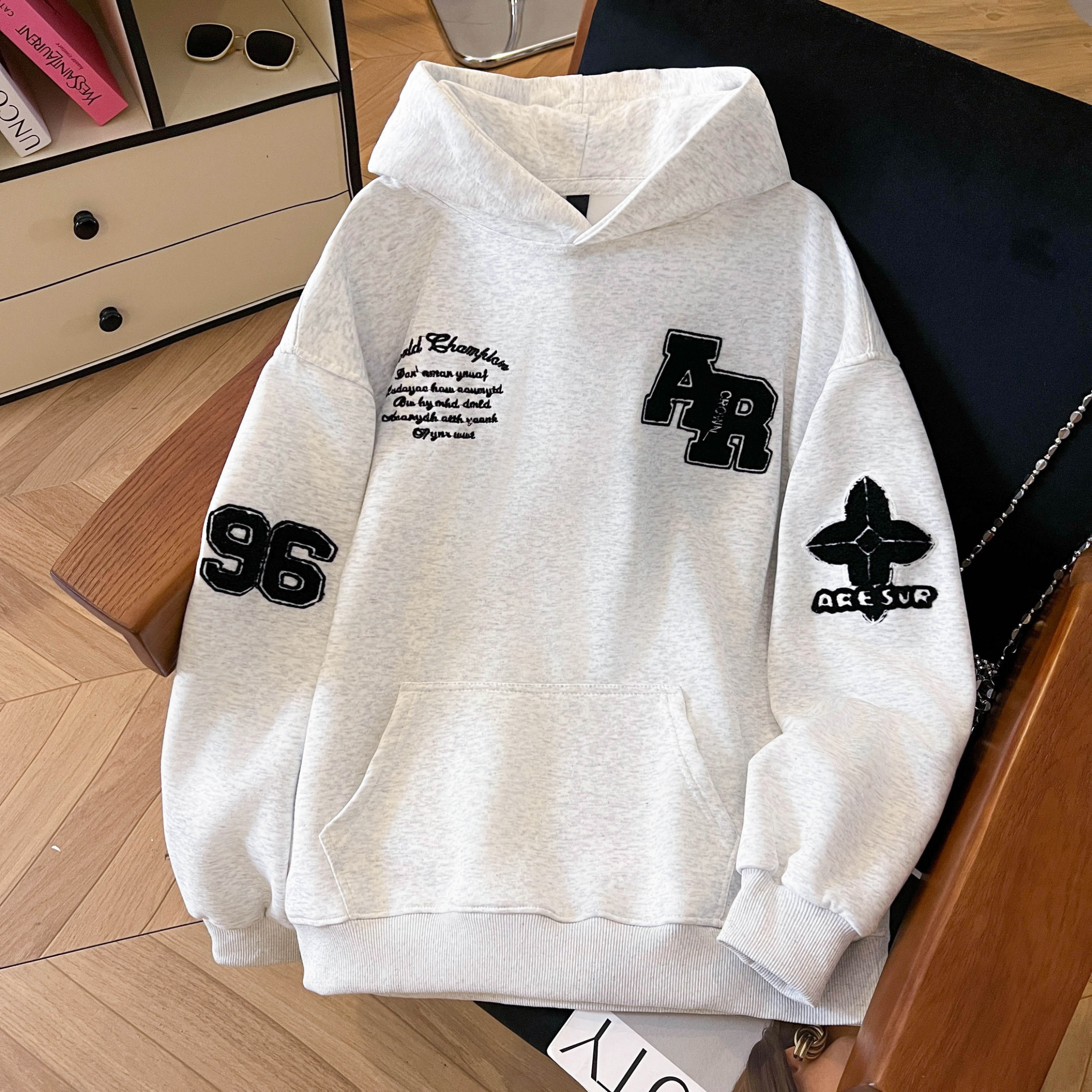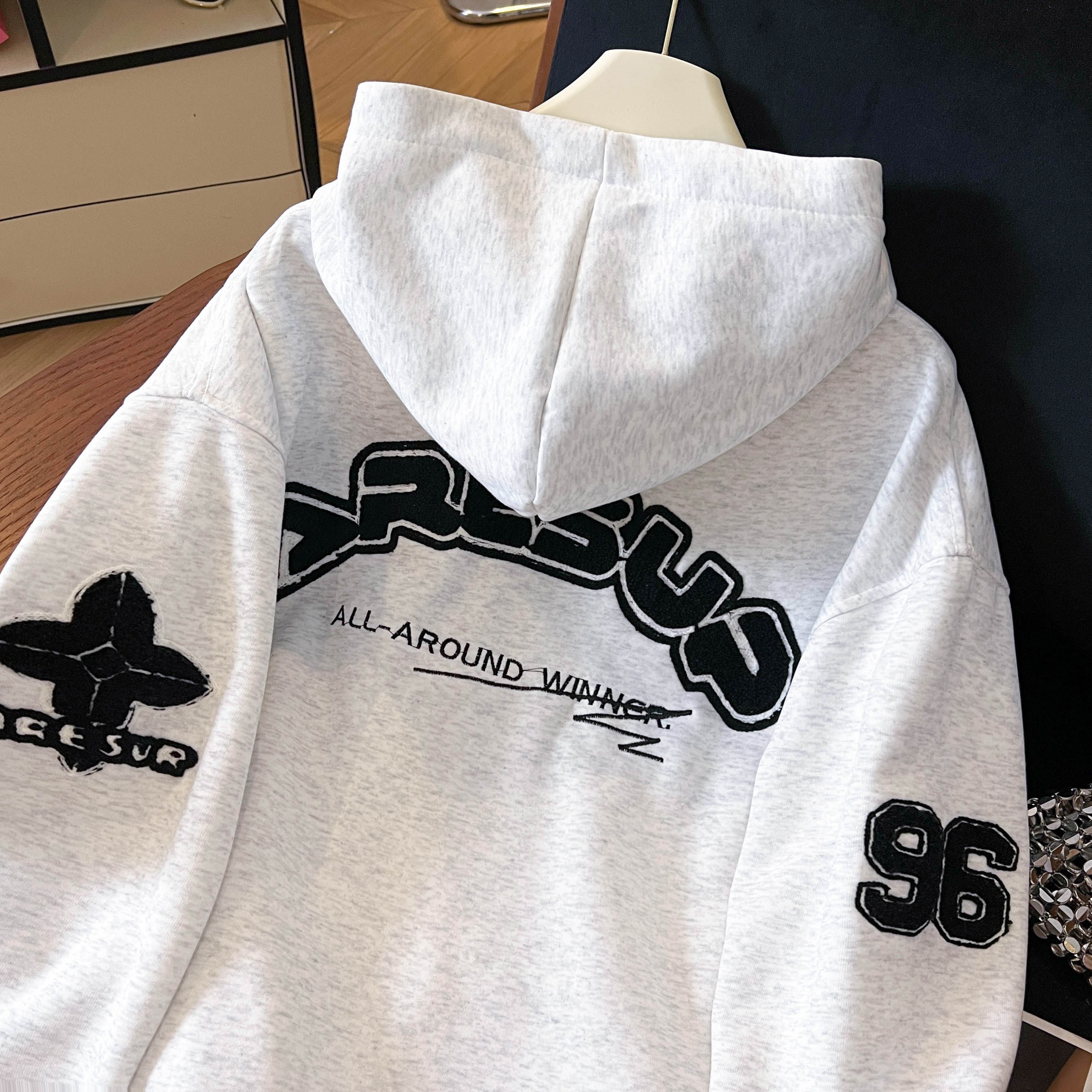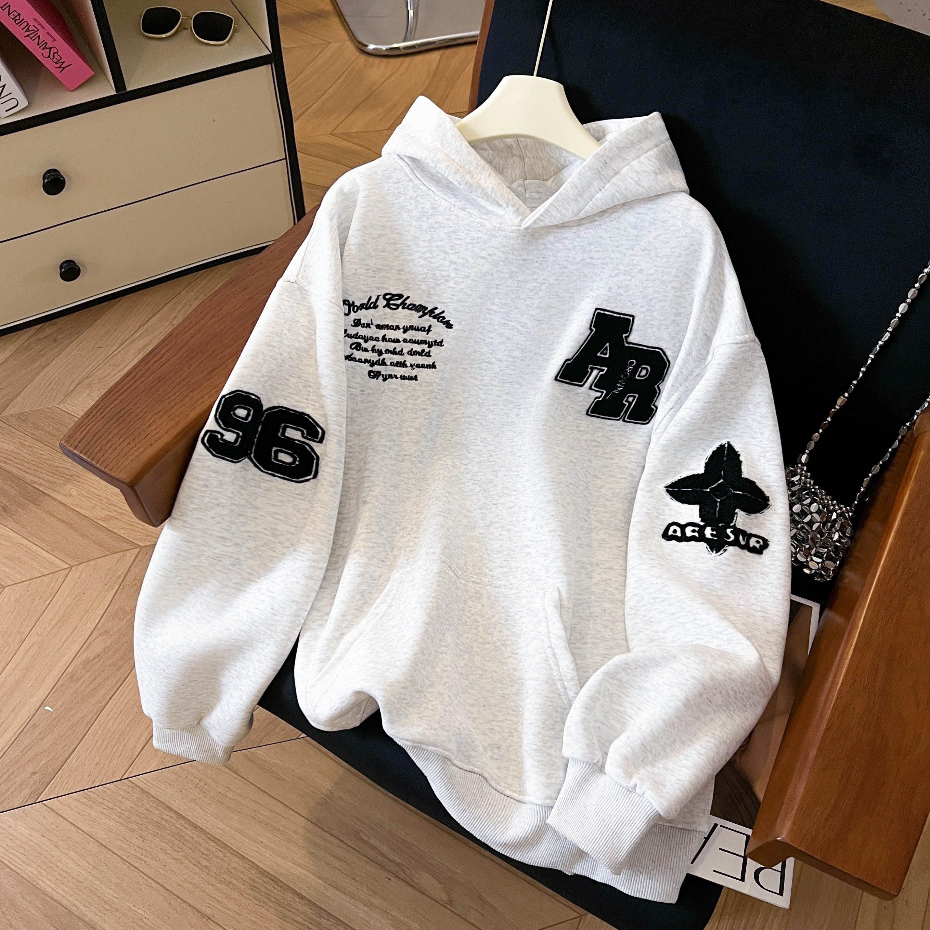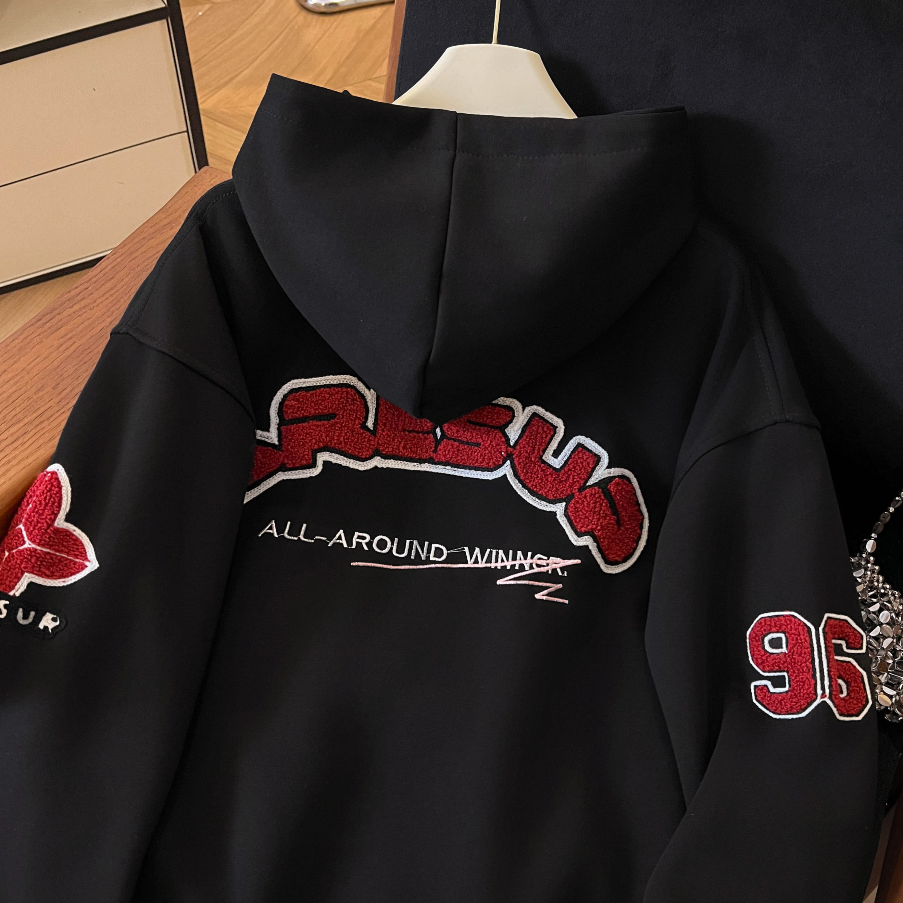 國潮牌美式高街毛巾綉連帽衛衣女2025新款潮牌痞帥設計感小衆上衣