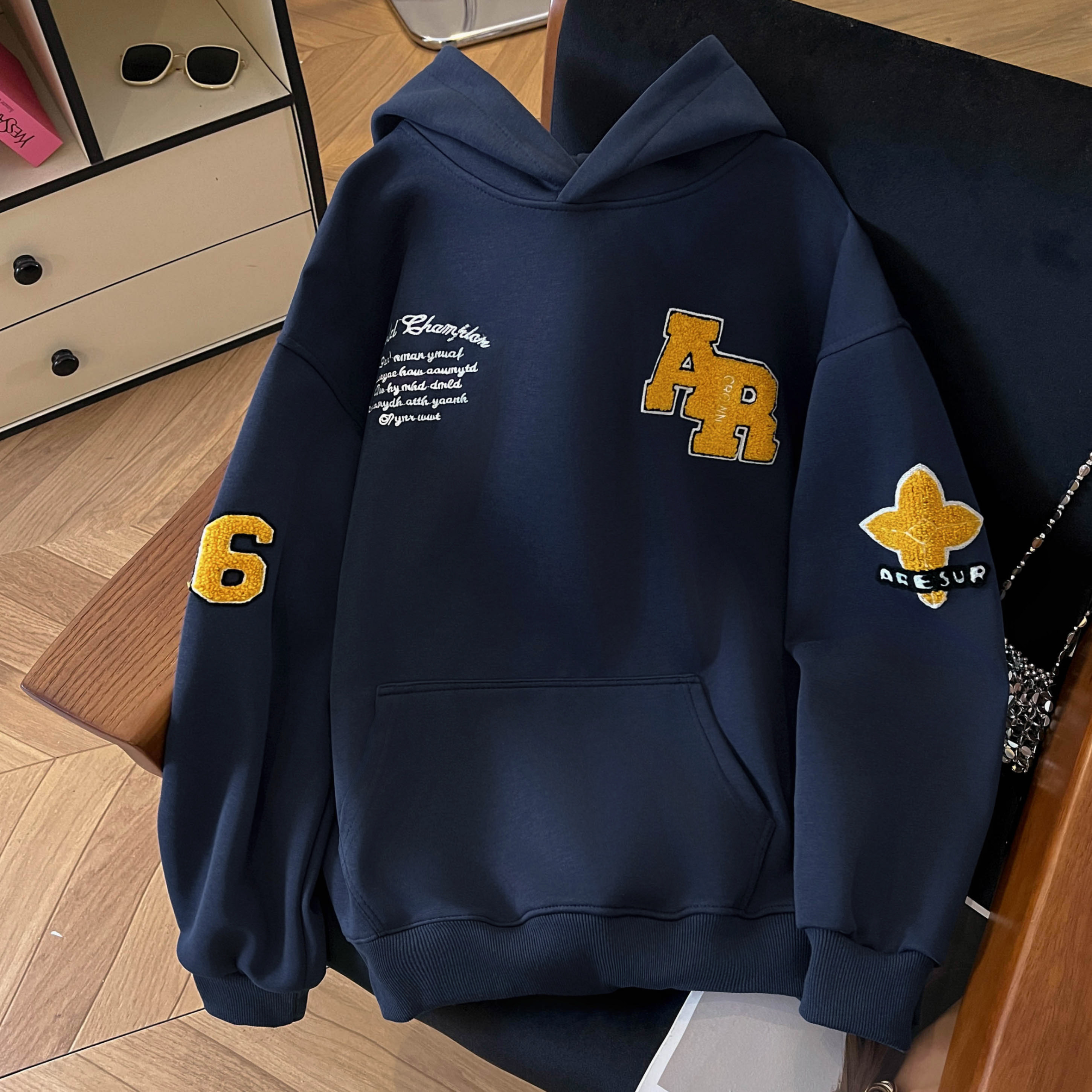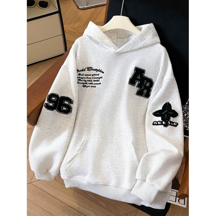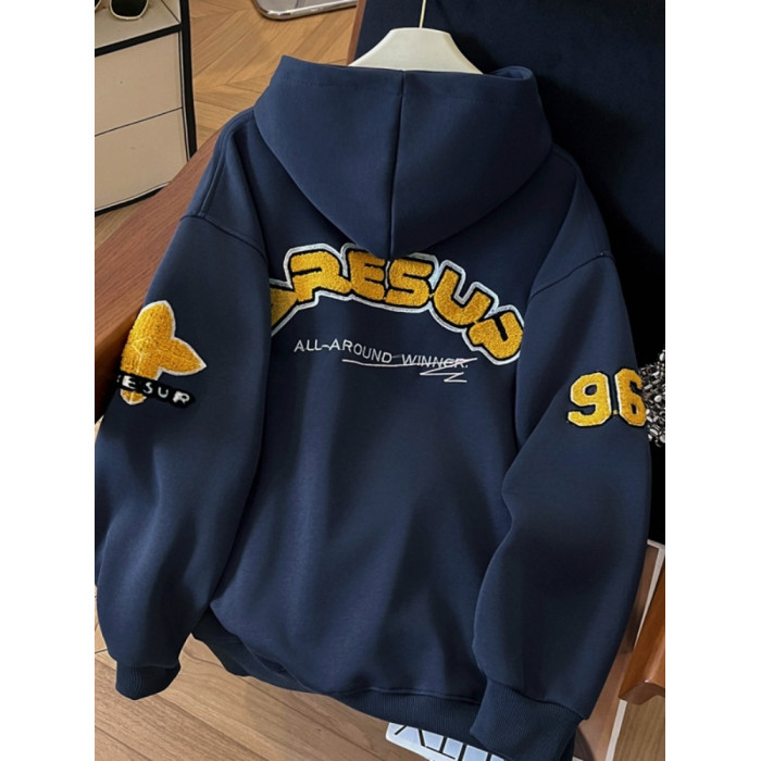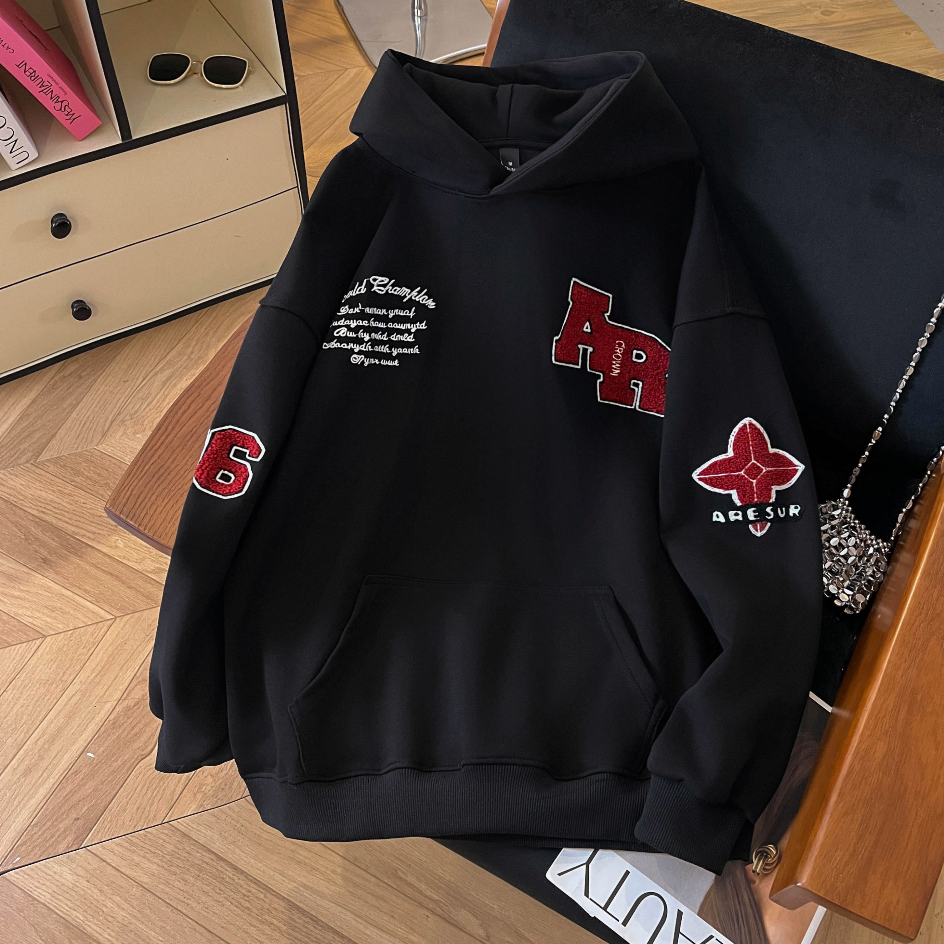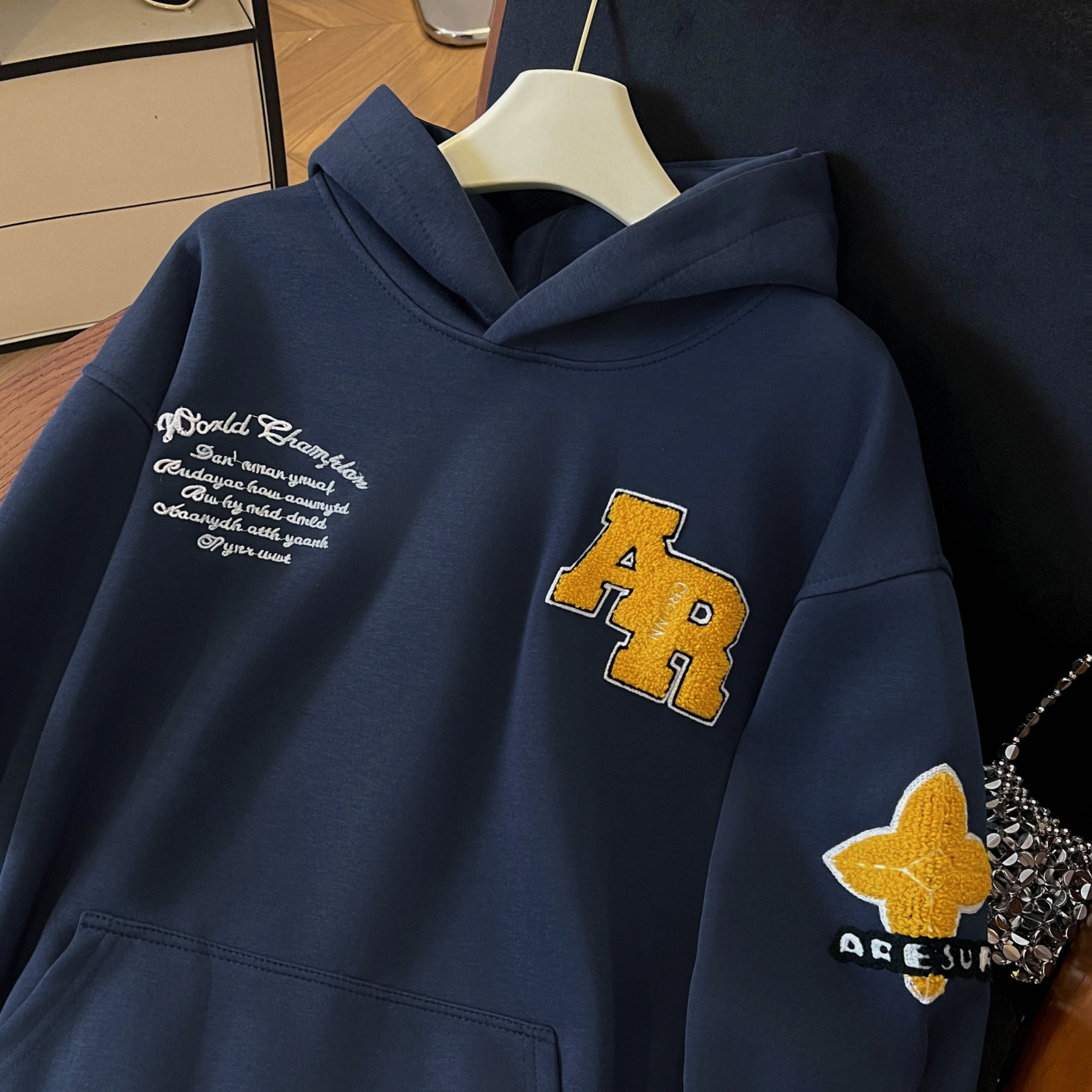 國潮牌美式高街毛巾綉連帽衛衣女2025新款潮牌痞帥設計感小衆上衣