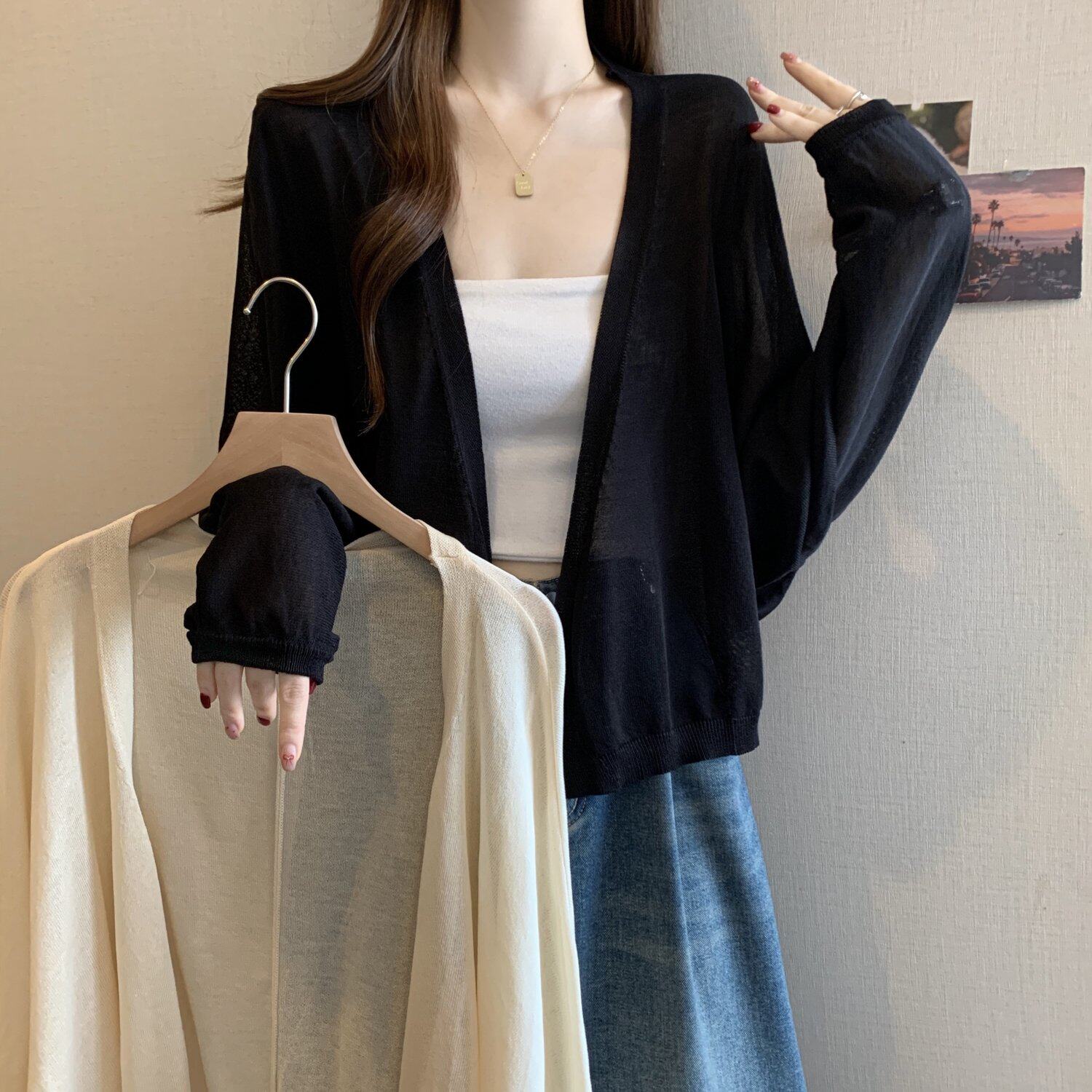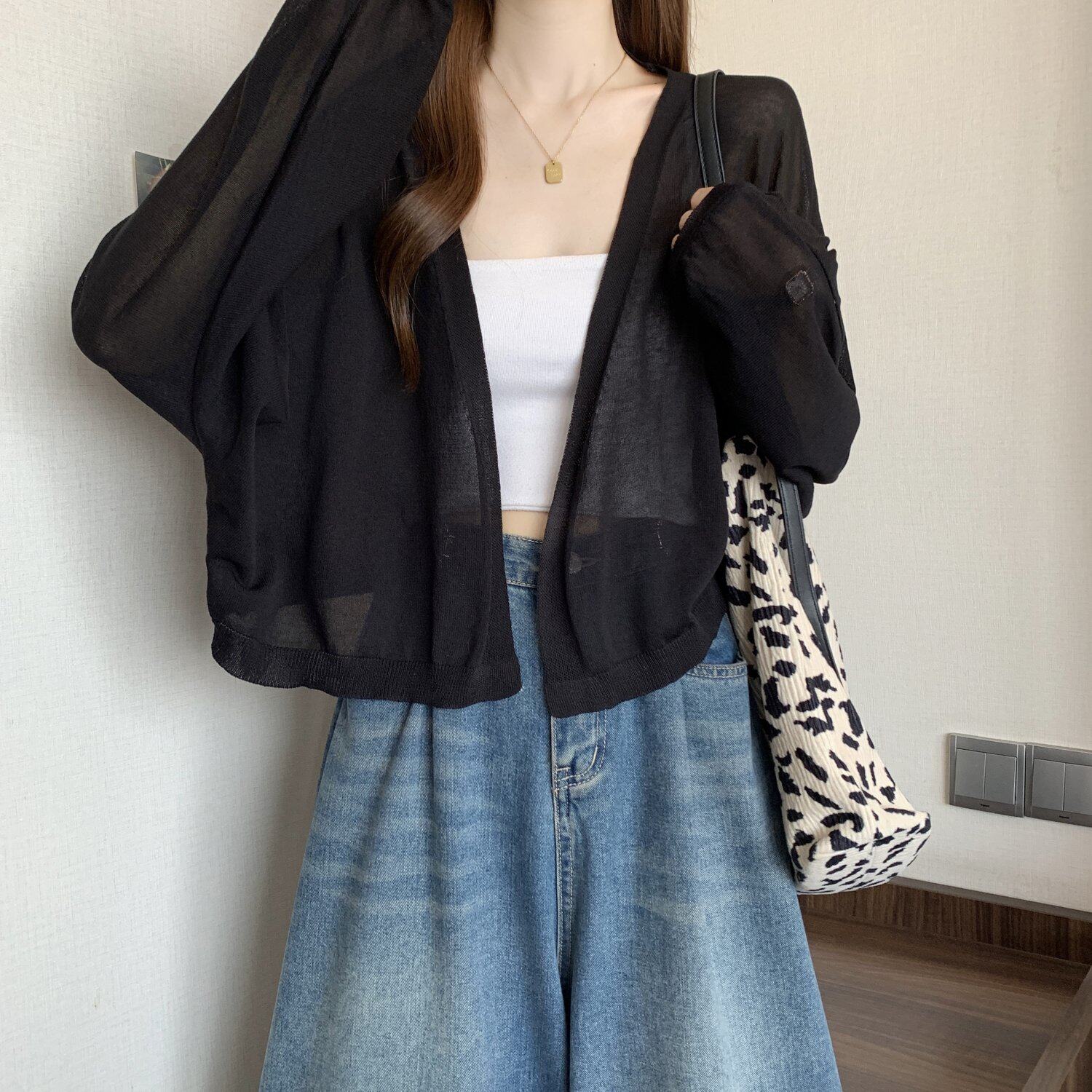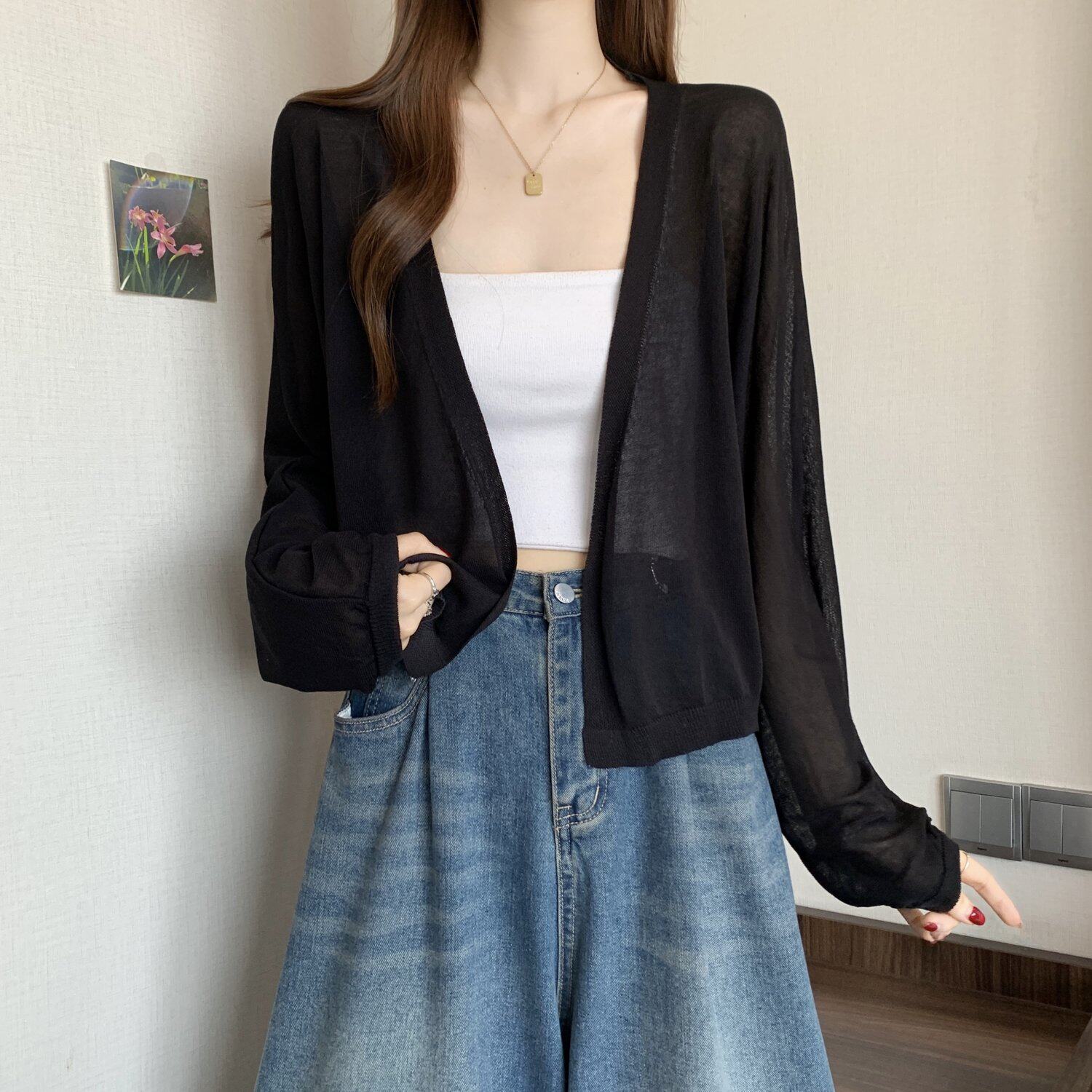 薄款竹節棉冰絲防曬開衫外套女2025春夏大碼胖mm吊帶裙外搭短上衣