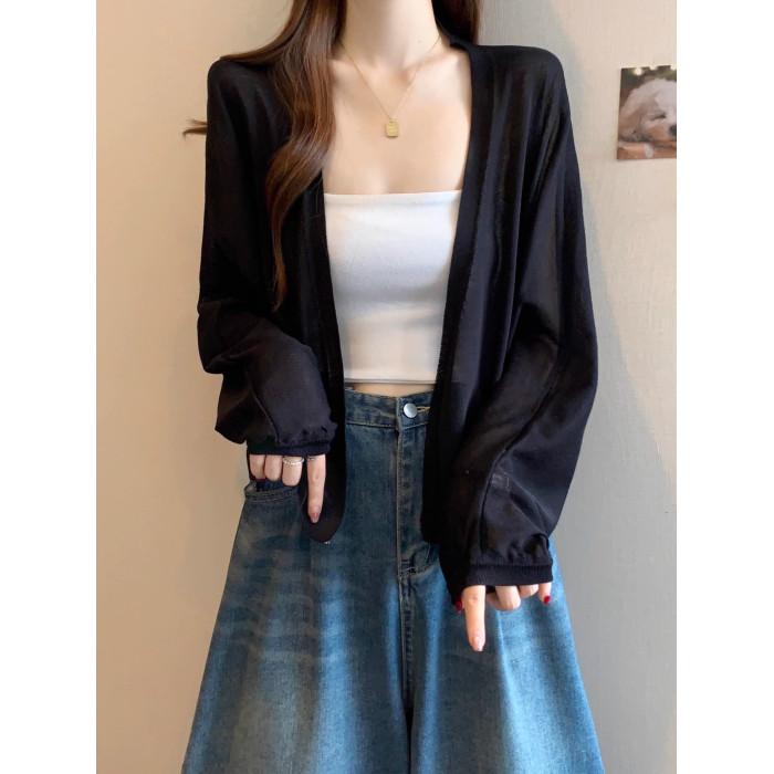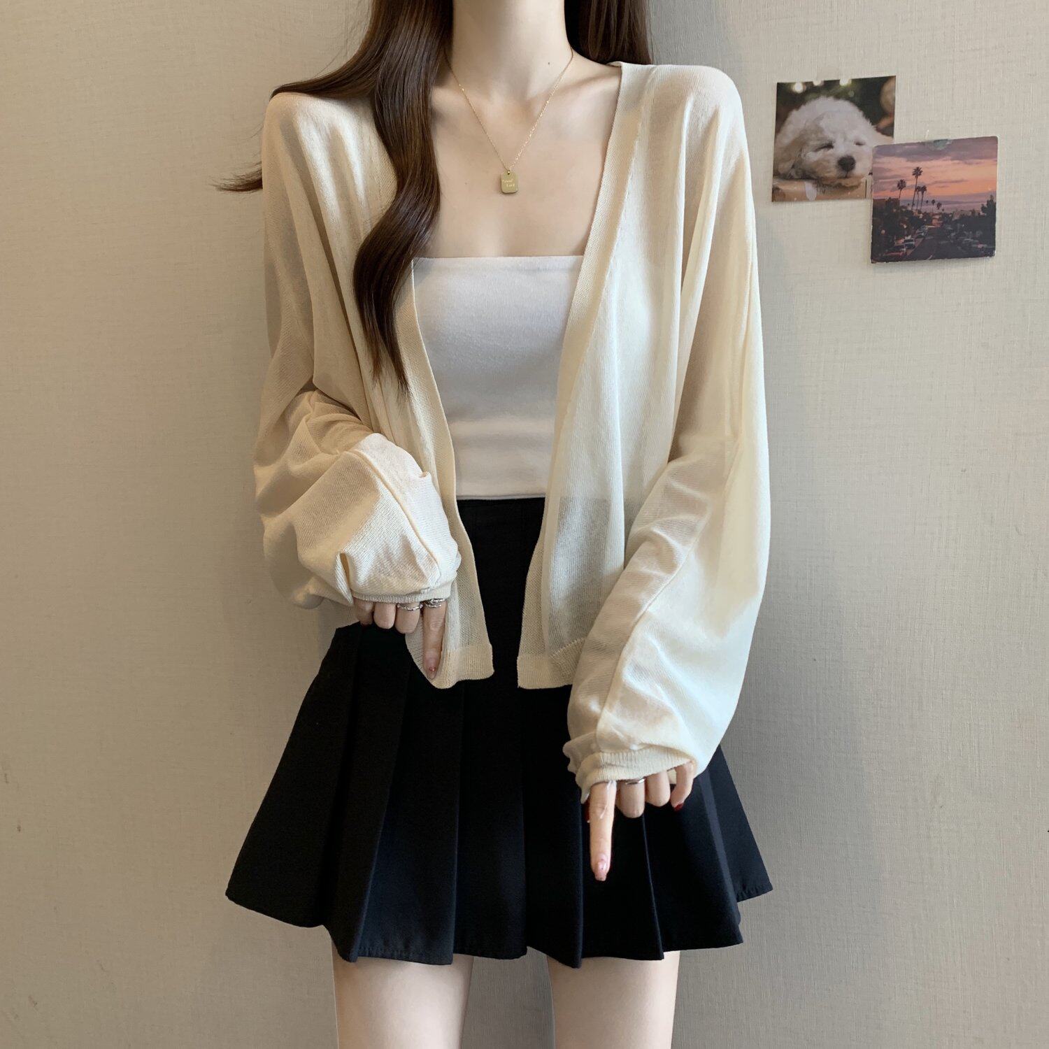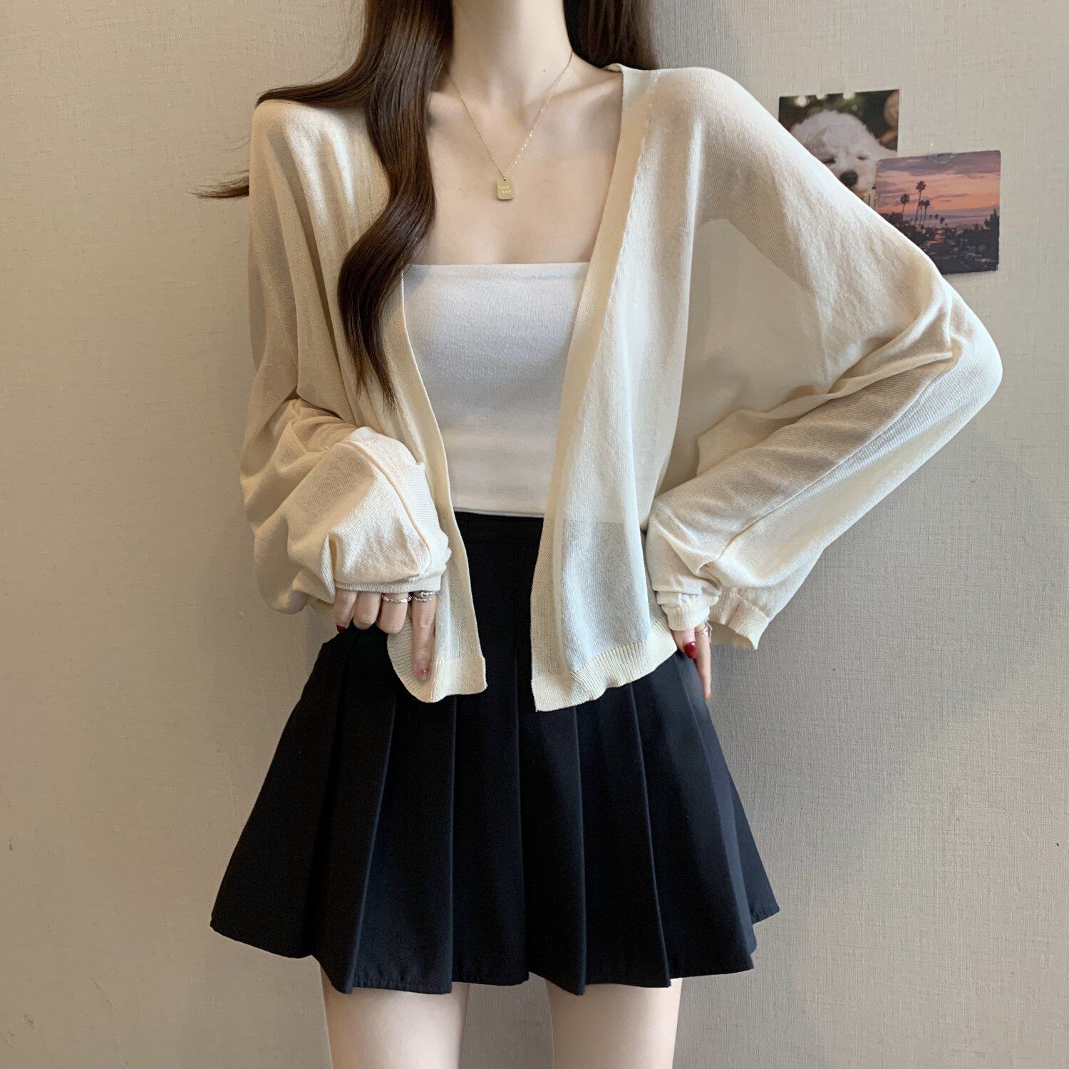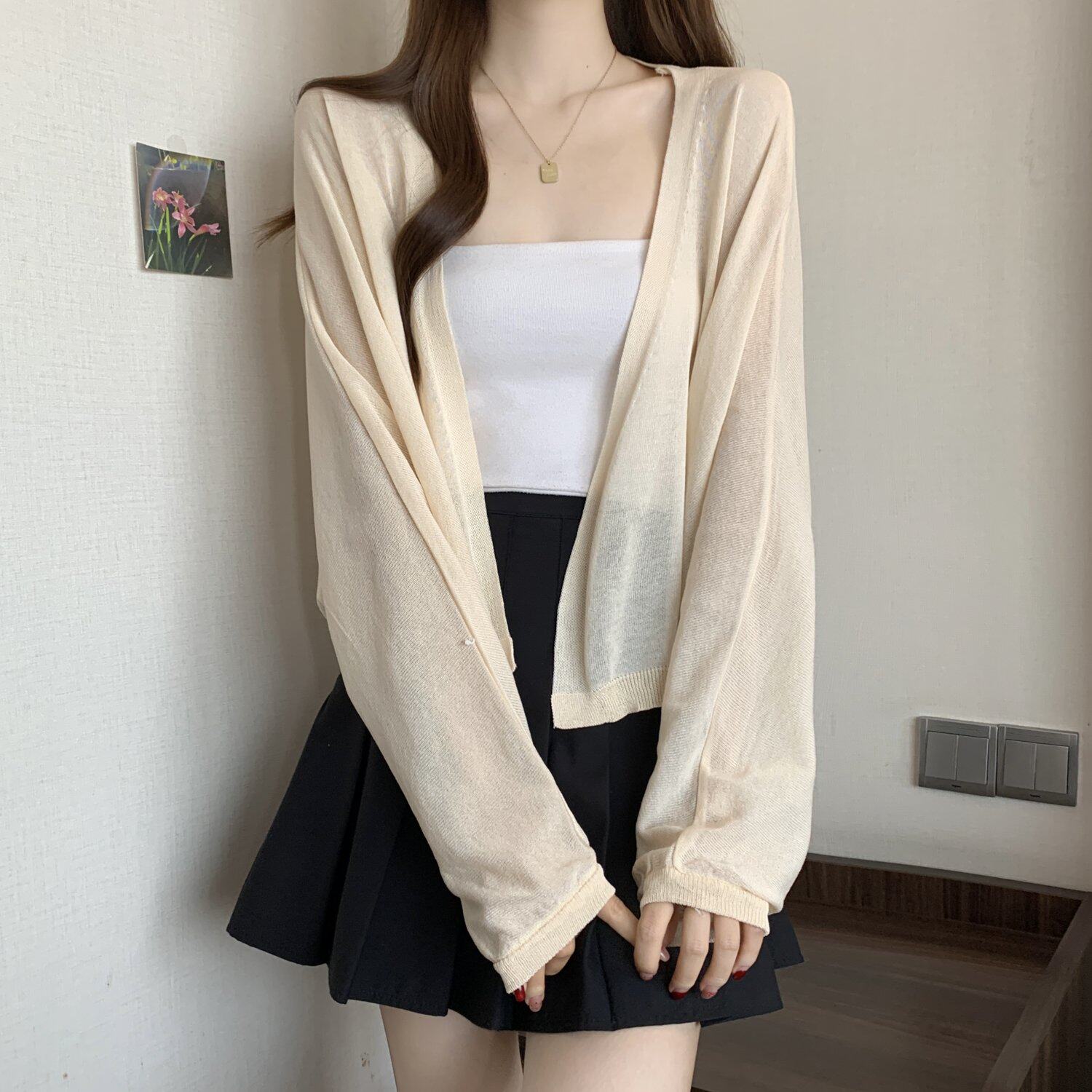 薄款竹節棉冰絲防曬開衫外套女2025春夏大碼胖mm吊帶裙外搭短上衣