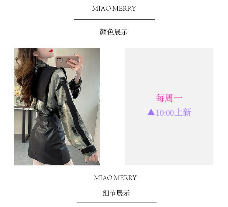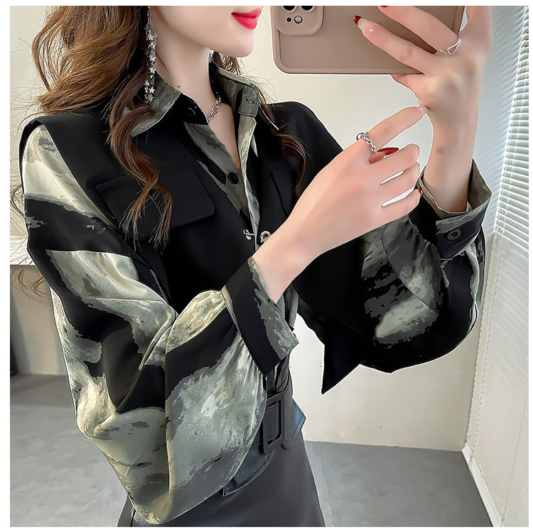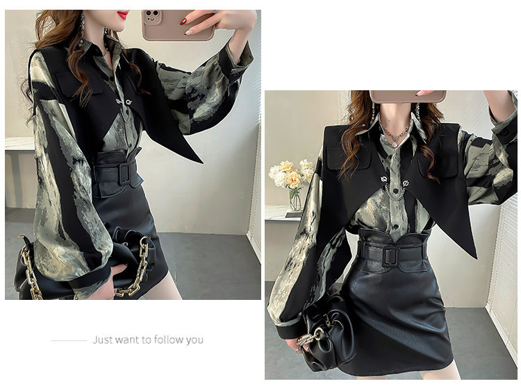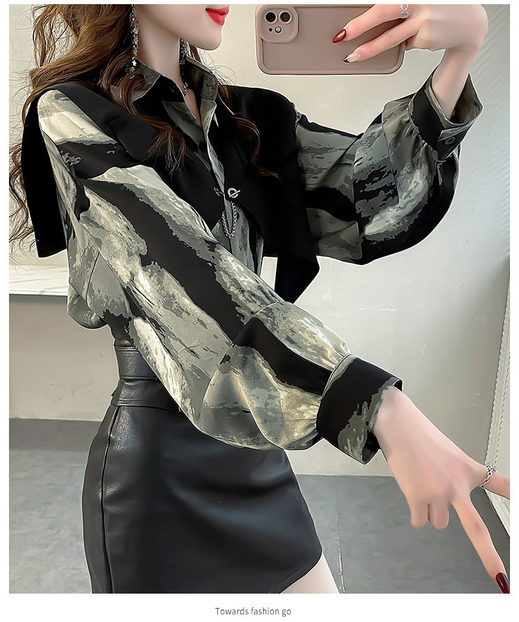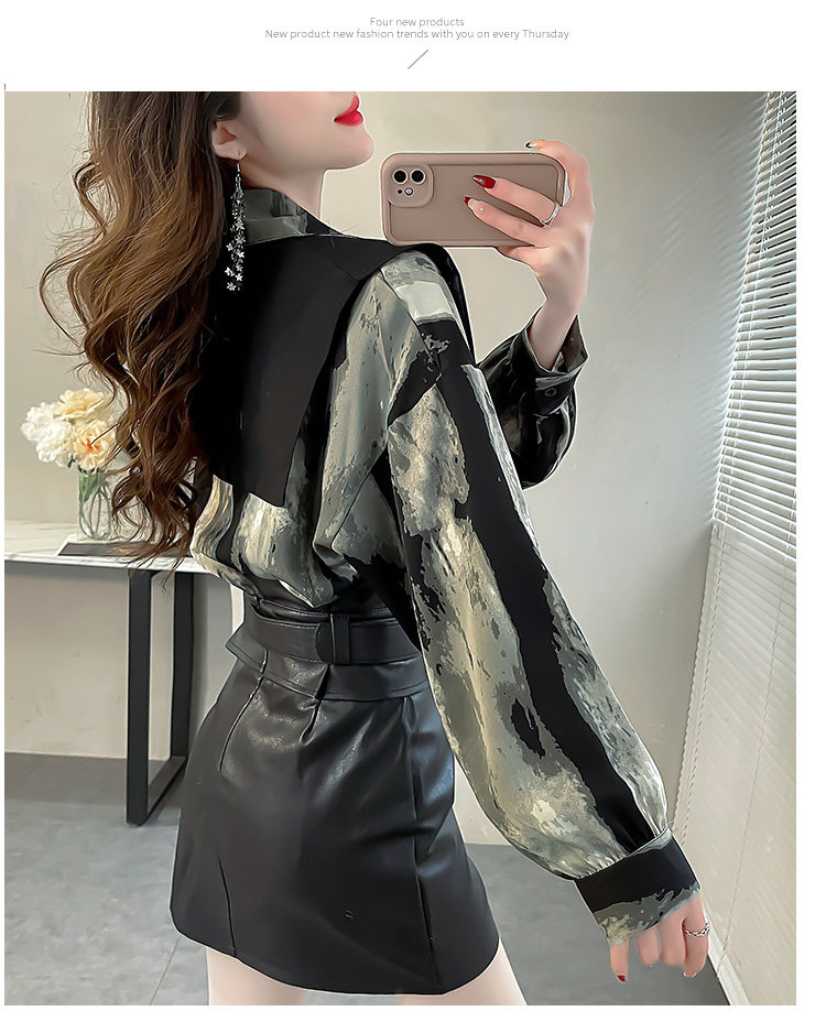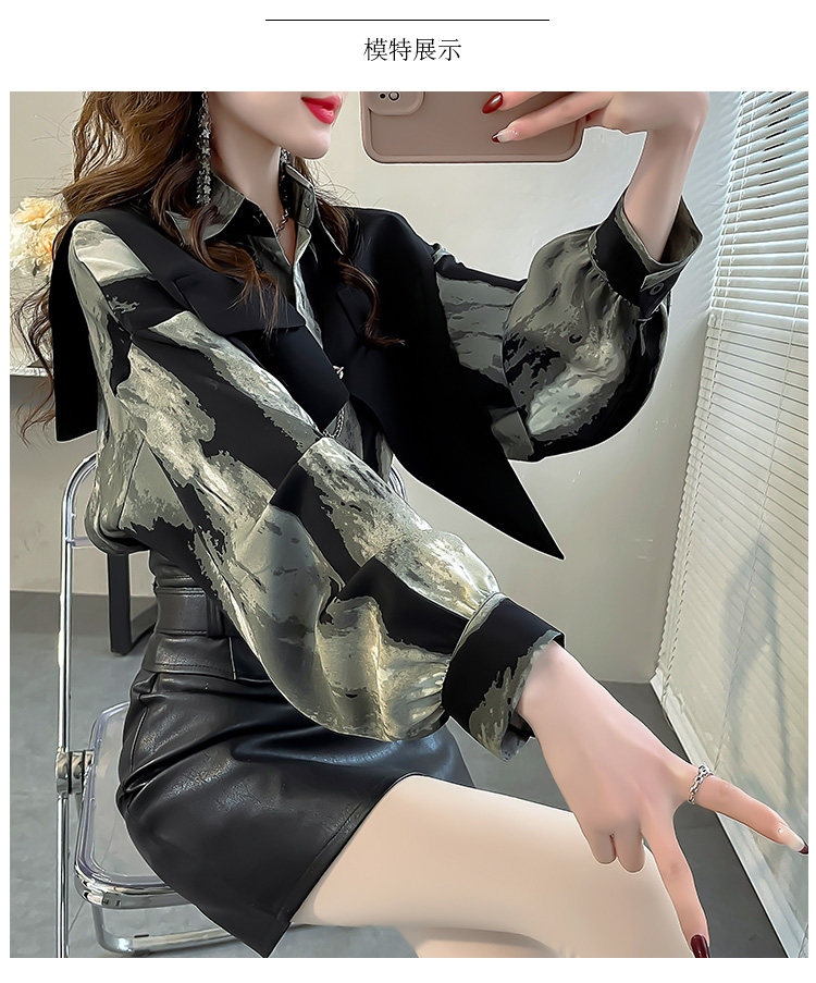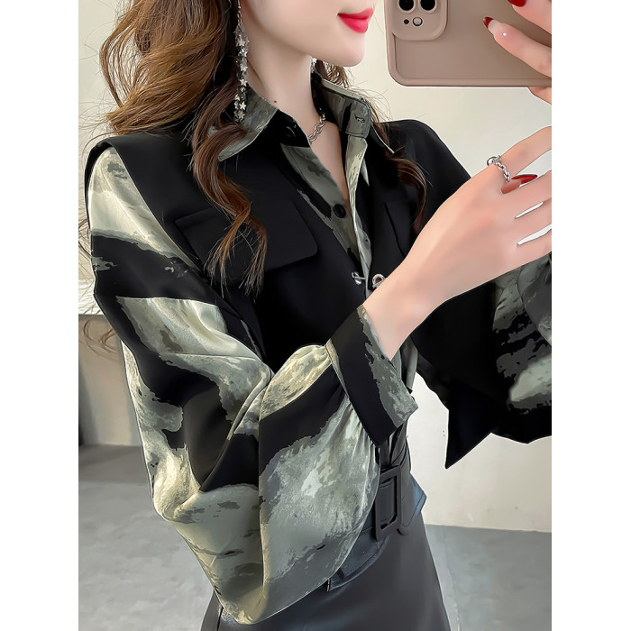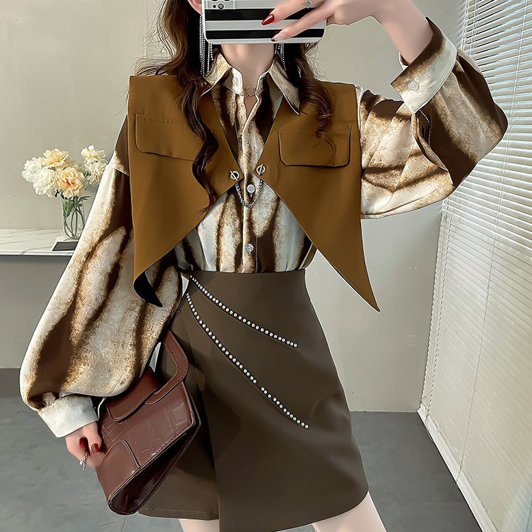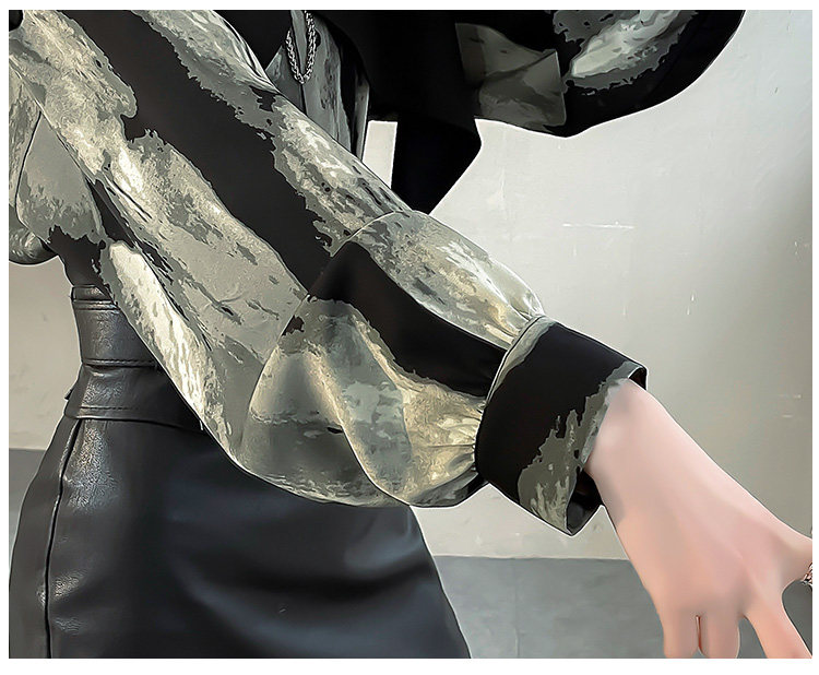 黑色馬甲配墨染條紋襯衣套裝2024春款女裝燈籠袖襯衫氣質雪紡上衣