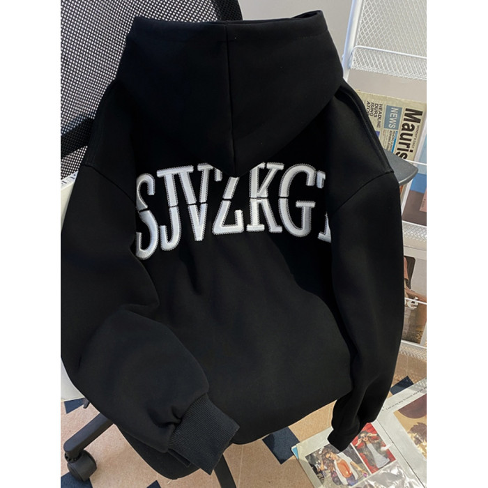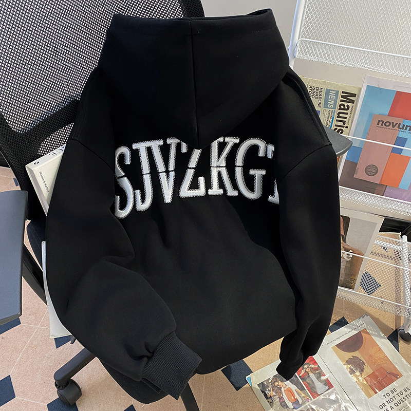 重磅純棉連帽加絨衛衣女春秋新款美式復古vintage潮牌ins秋冬休閒