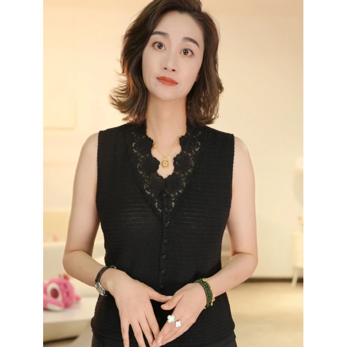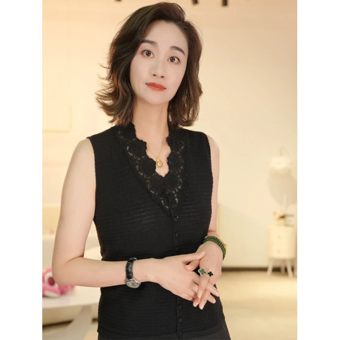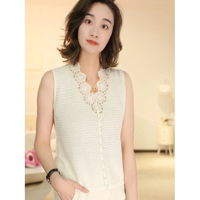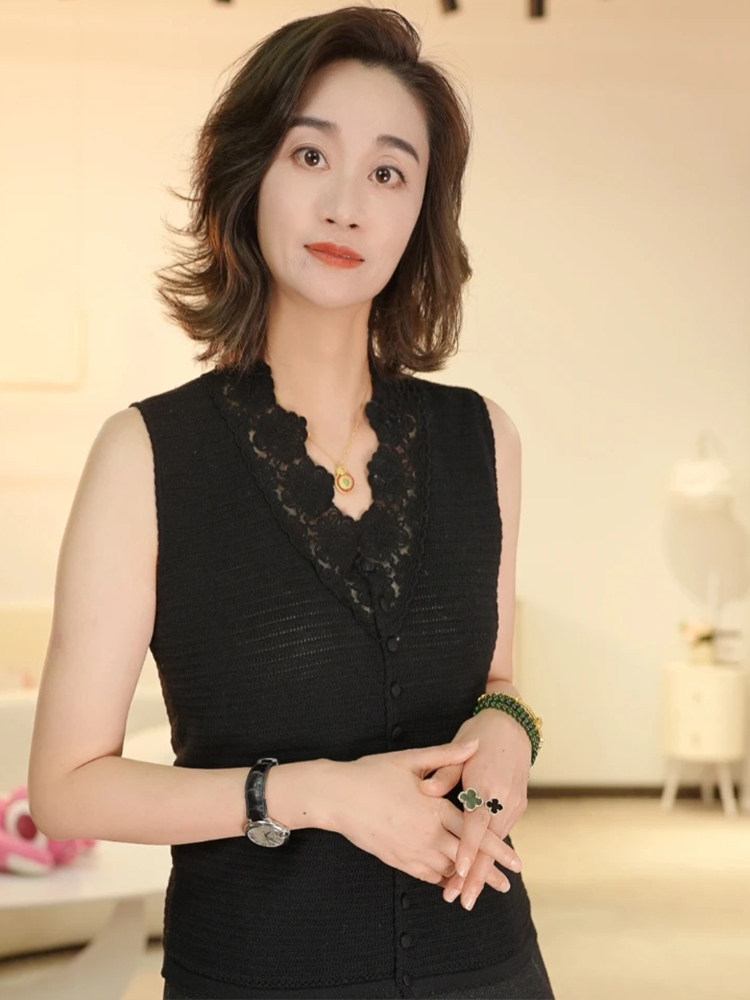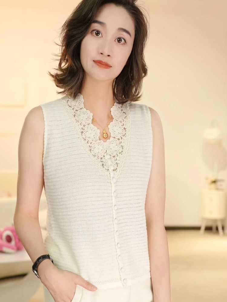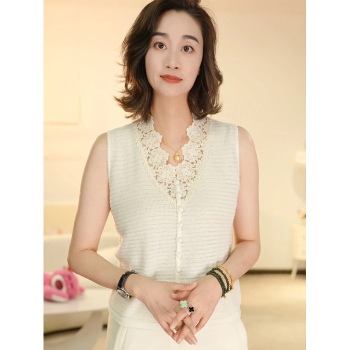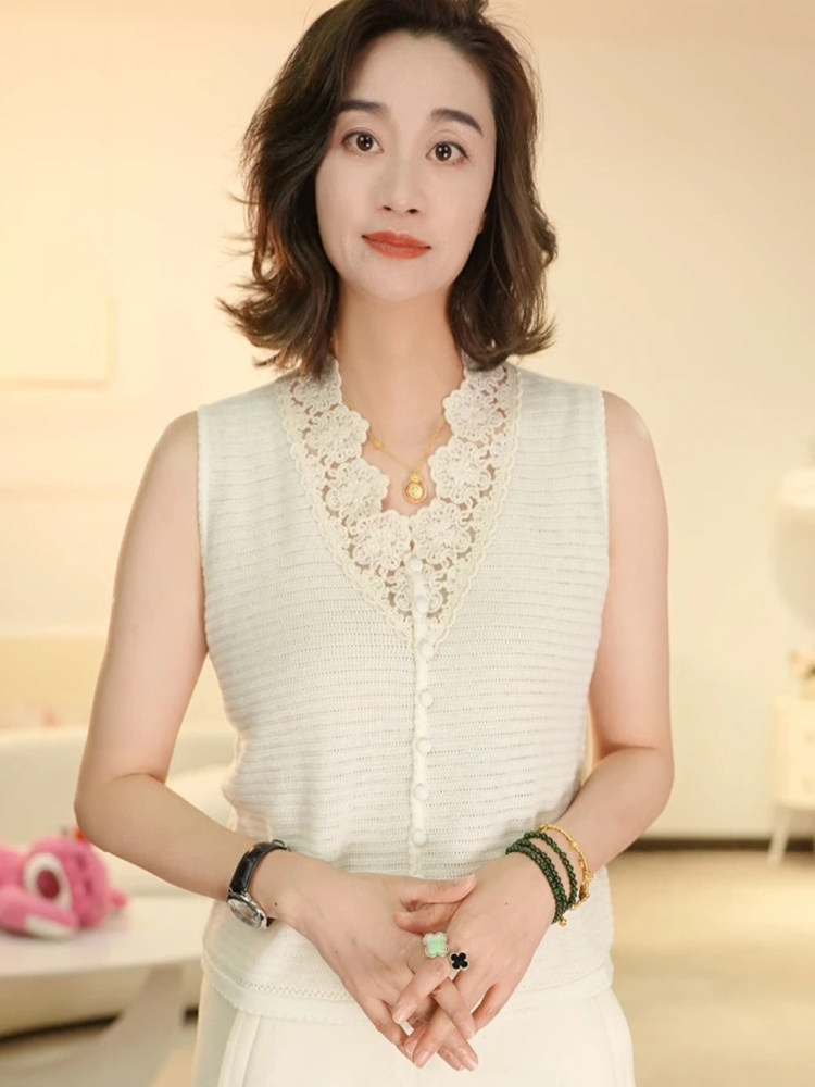 蕾絲純色針織開衫顯瘦上衣2025夏季無袖背心時尚內搭洋氣法式簡約
