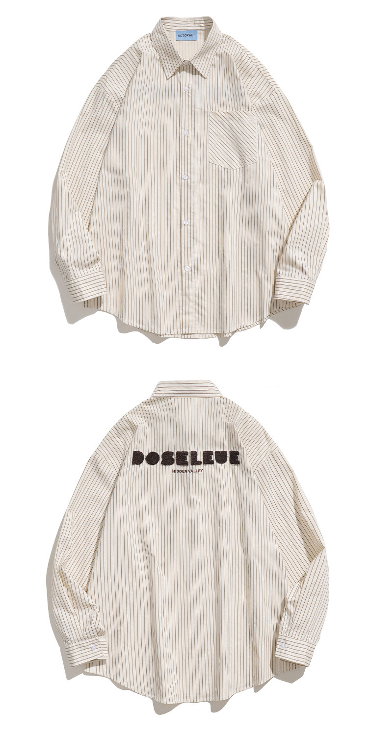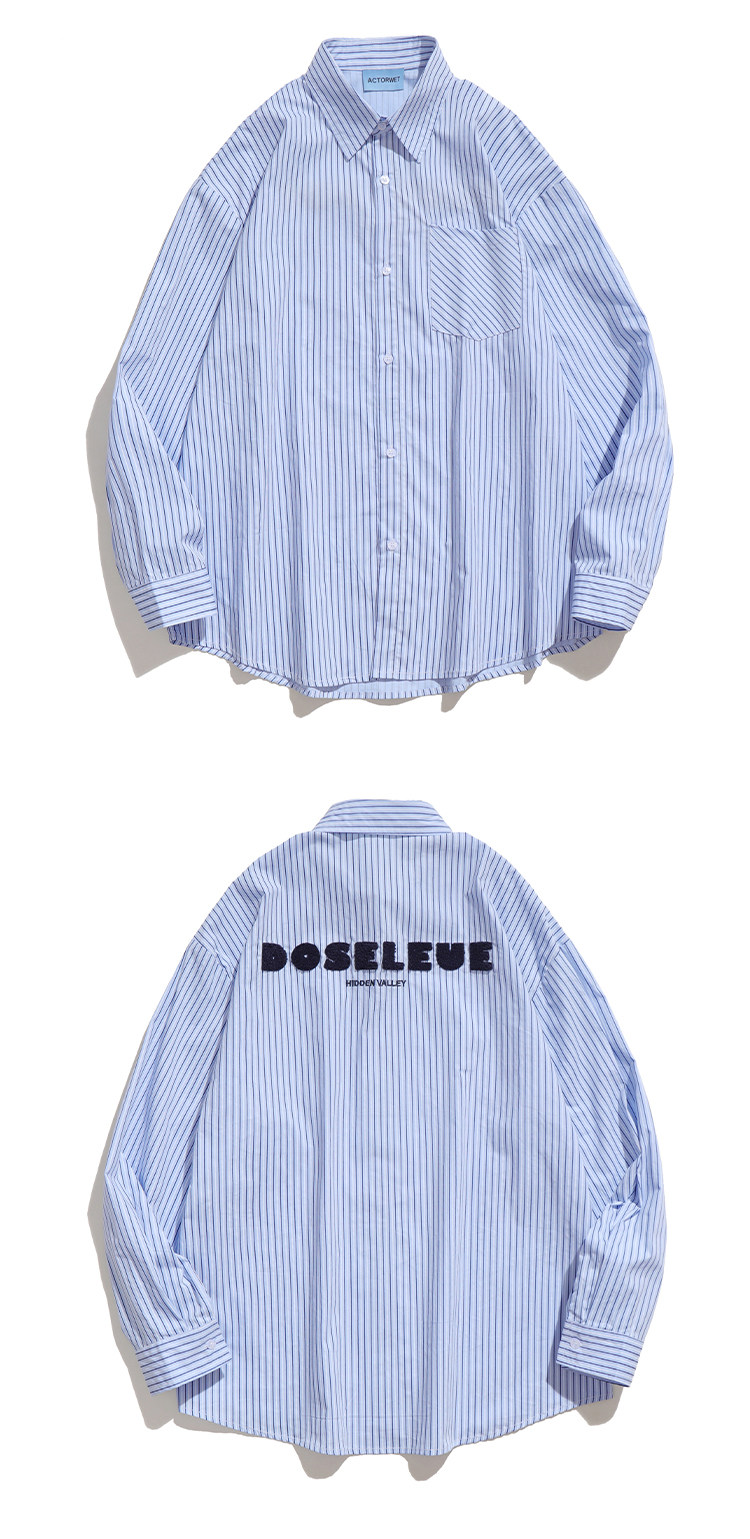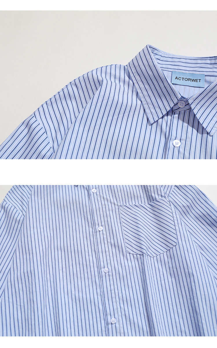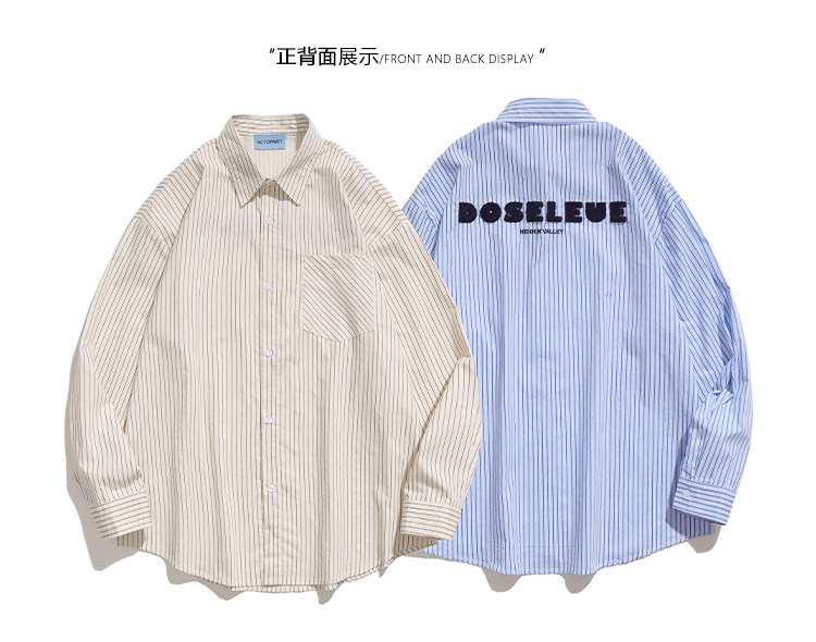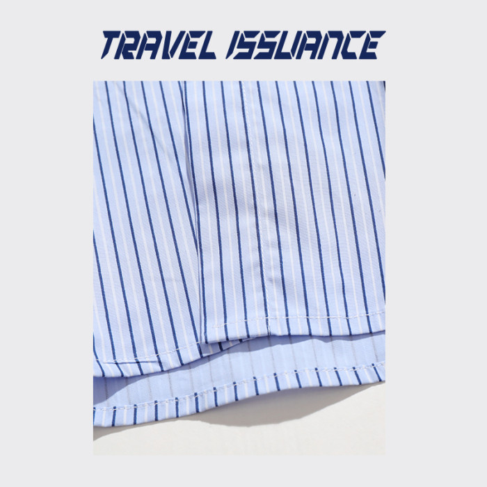 TRAVEL ISSUANCE 日系竪條紋設計感慵懶學院風寬鬆情侶長袖襯衫bf