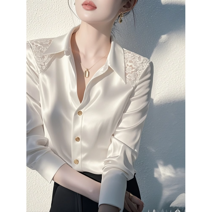 超仙的輕熟風蕾絲拼接襯衫女春秋季新款漂亮甜美修身百搭小衫上衣