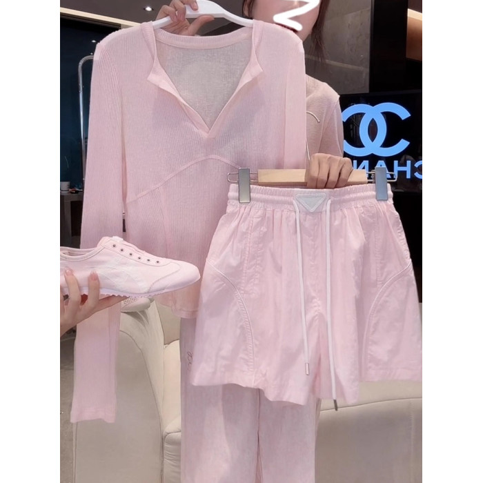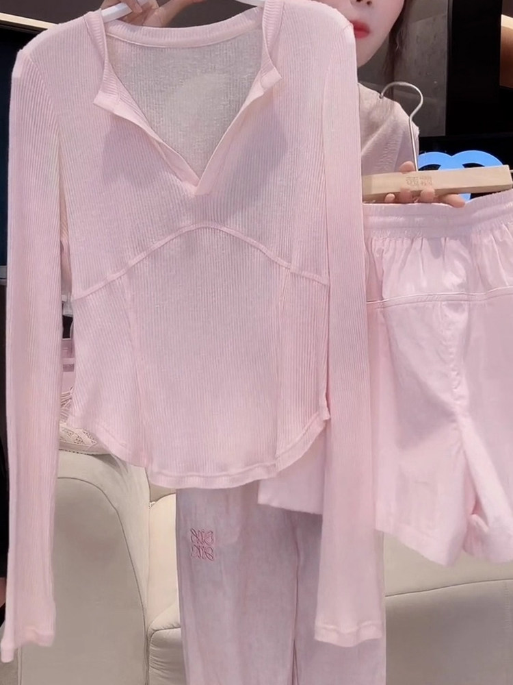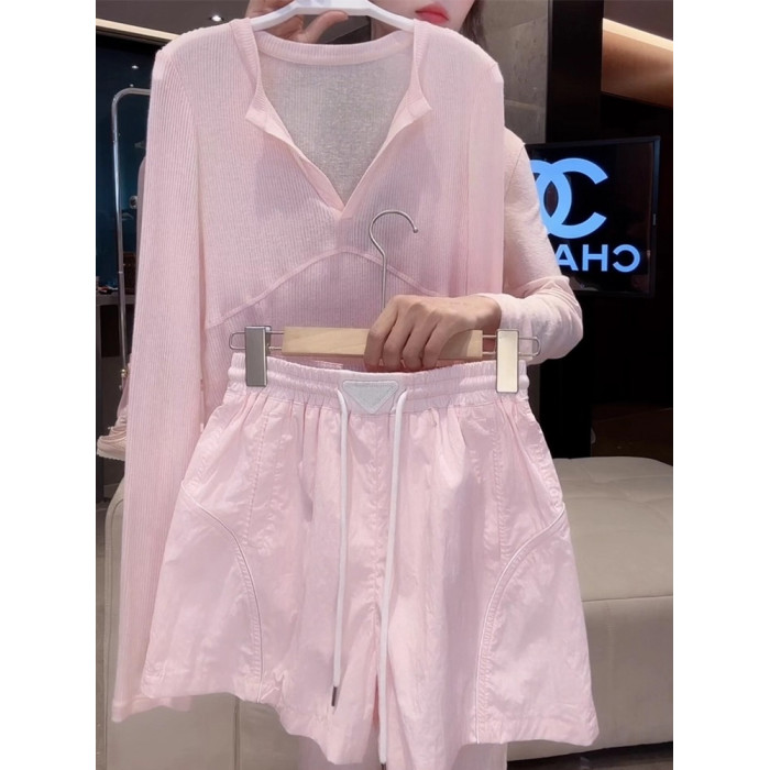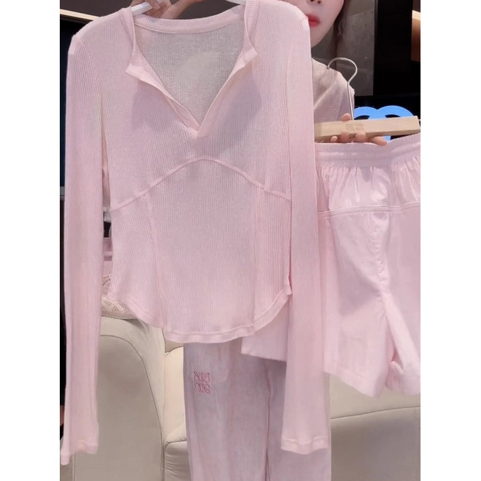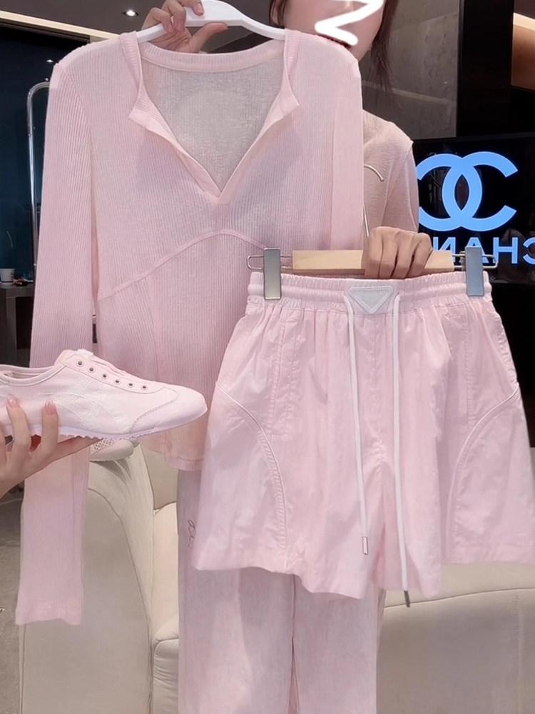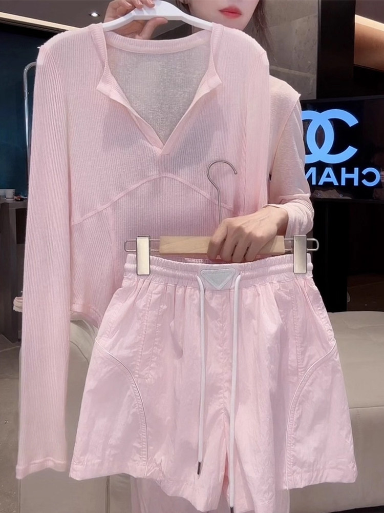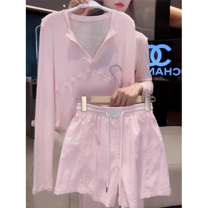 韓系溫柔風粉色薄款長袖T恤女秋季新款清新甜美減齡防曬罩衫上衣