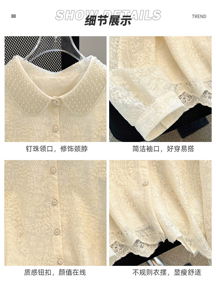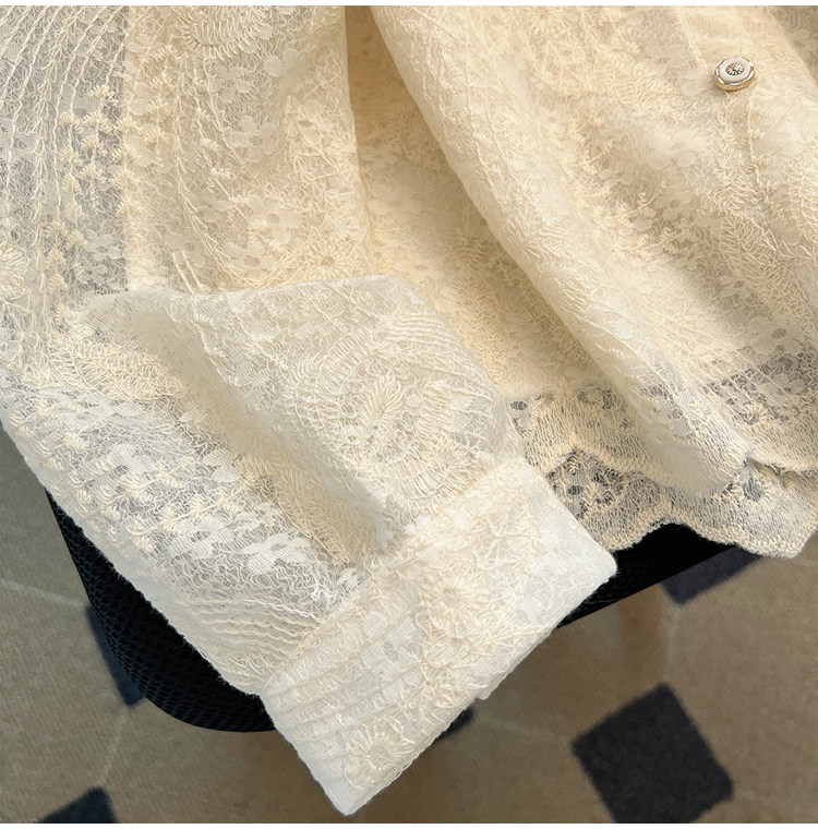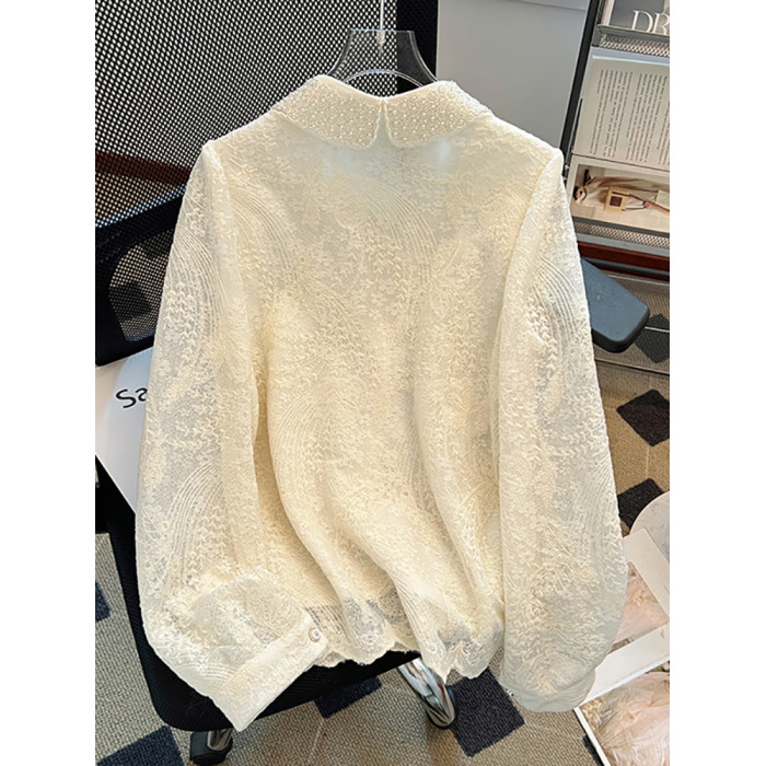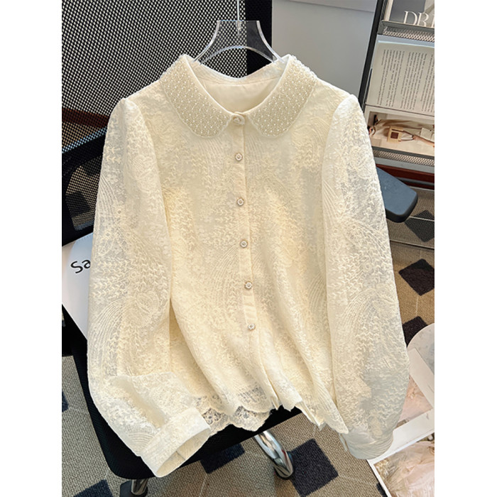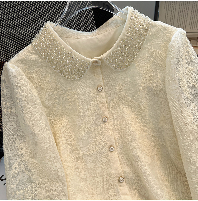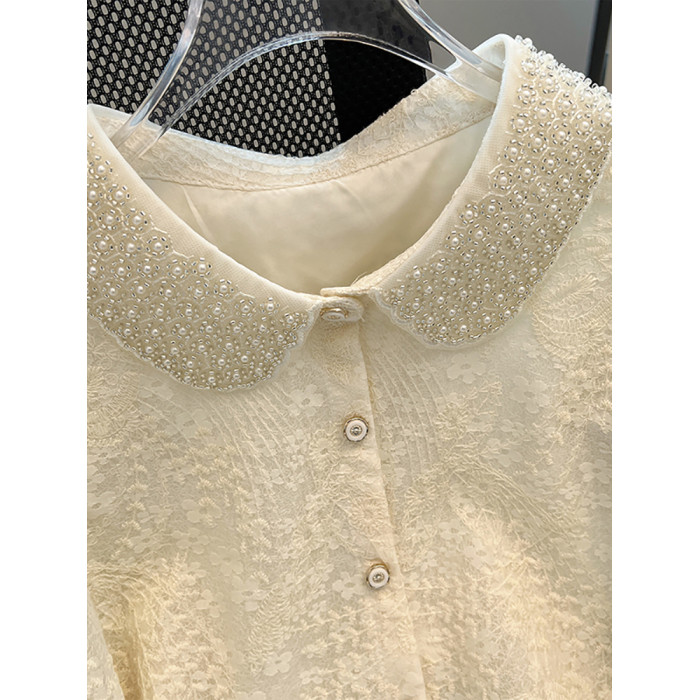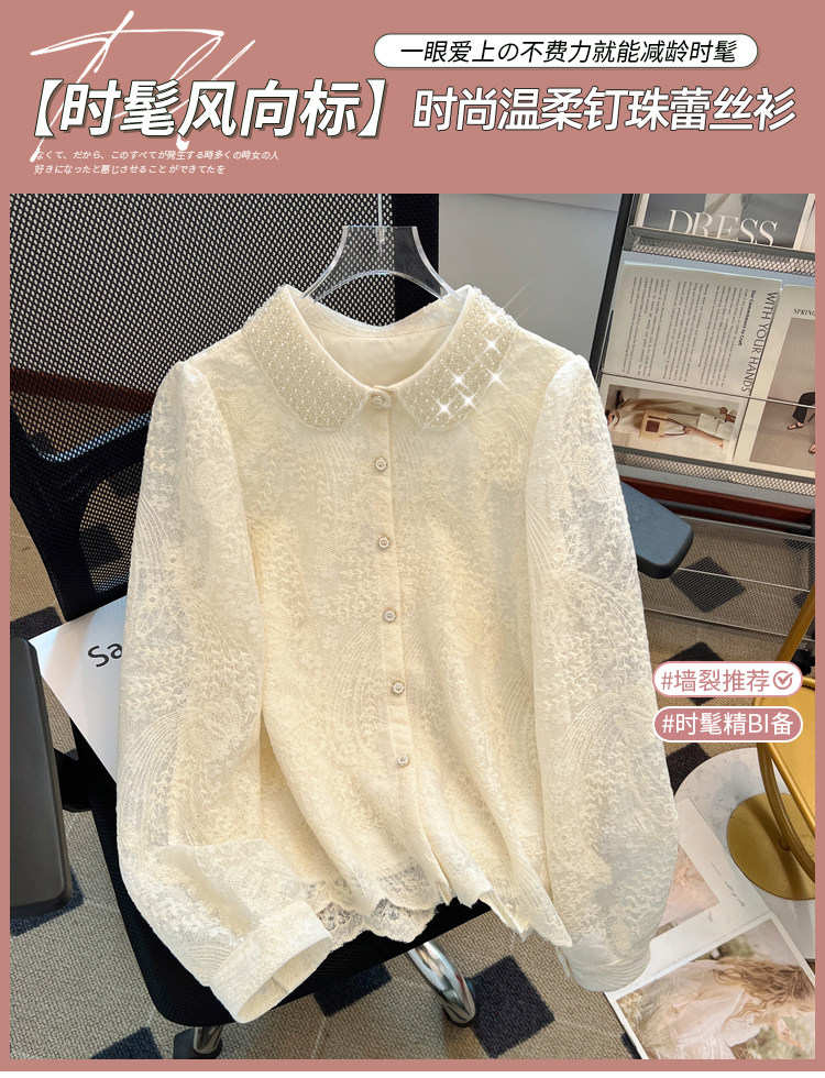 自畱款推薦~重工釘珠娃娃領刺綉蕾絲衫女2025春季新款小香風上衣