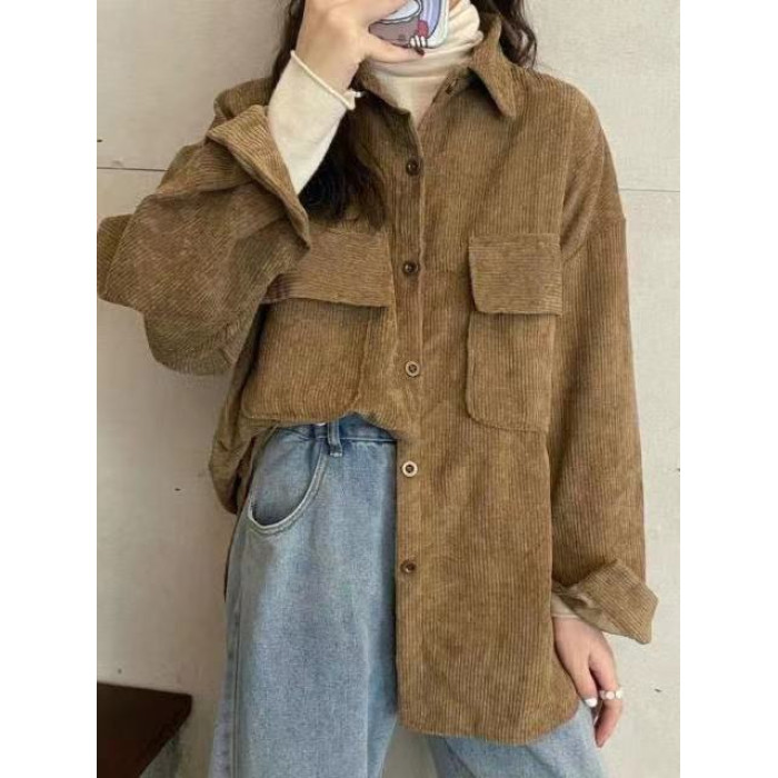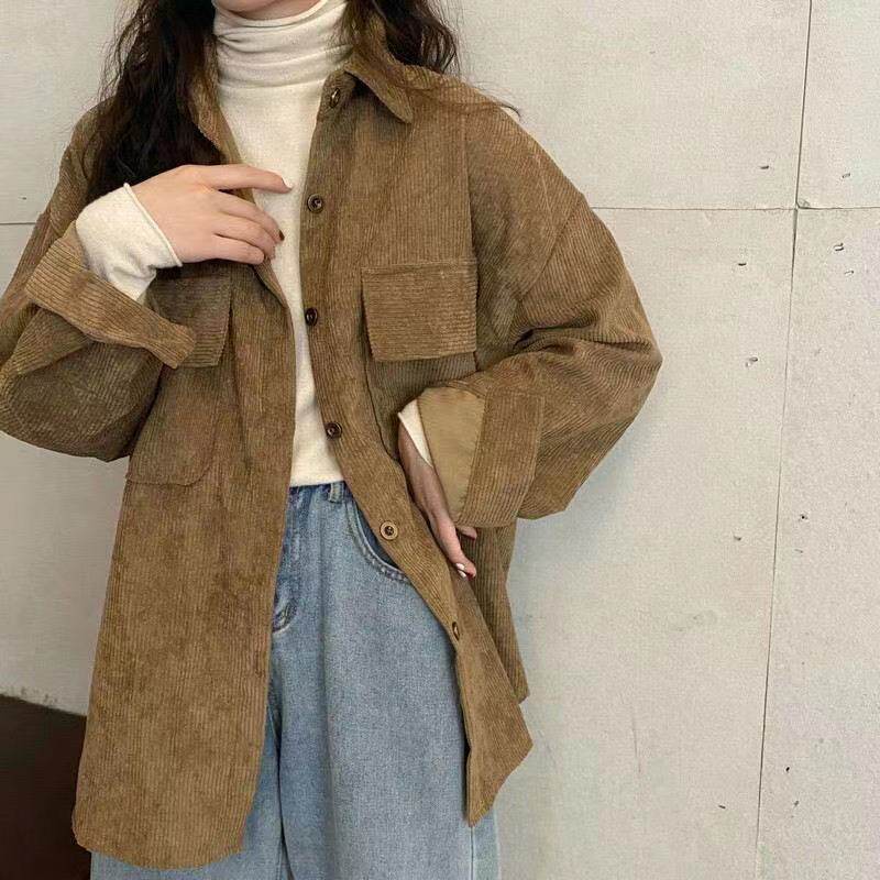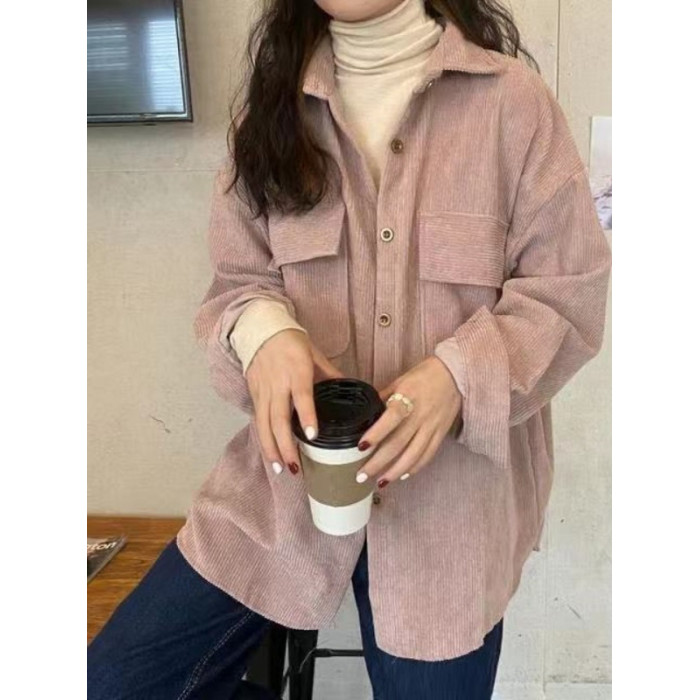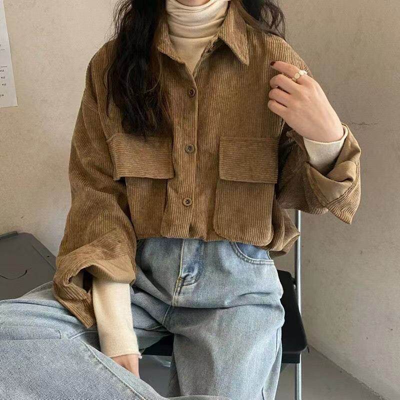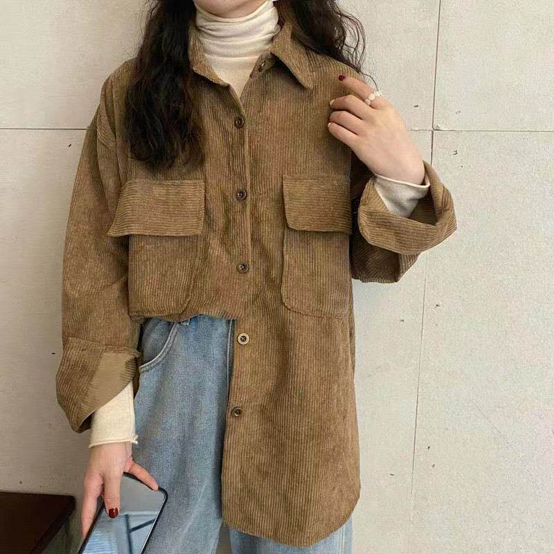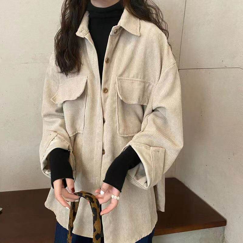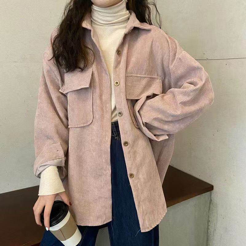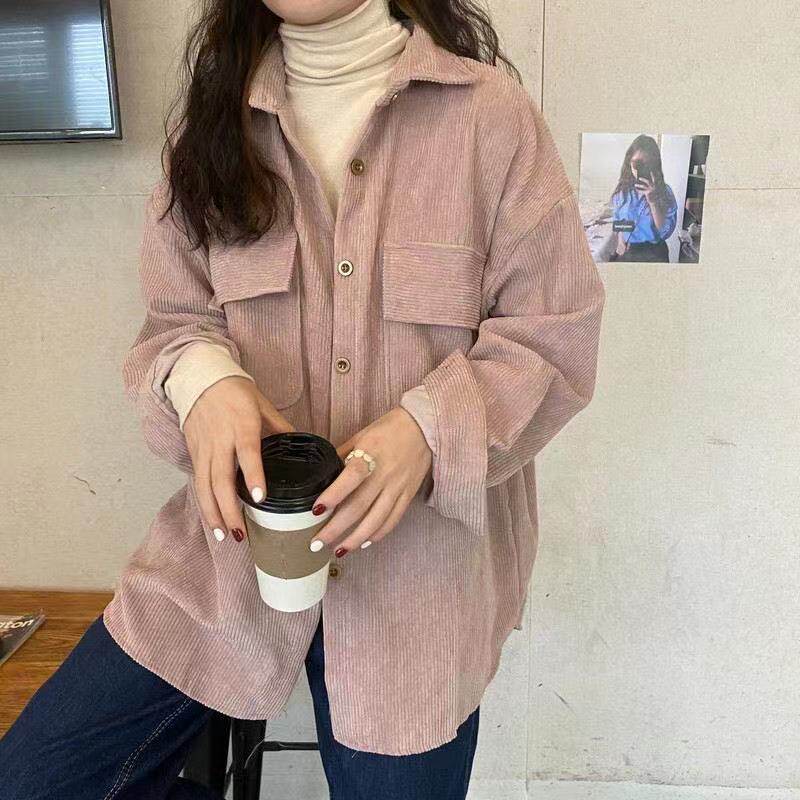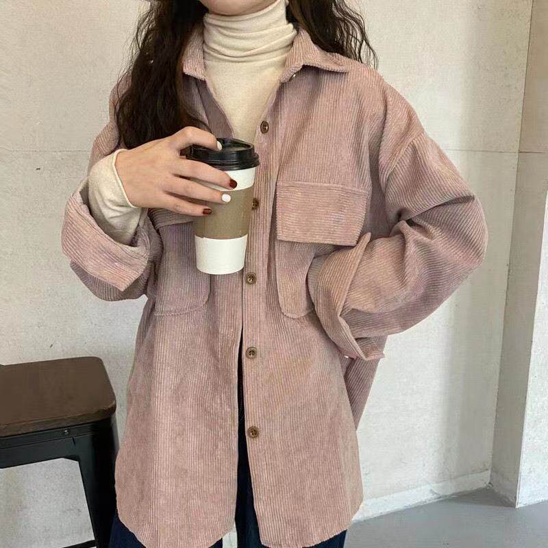 燈芯絨襯衫女秋冬寬鬆外穿百搭厚款襯衣外套女春秋小衆長袖上衣