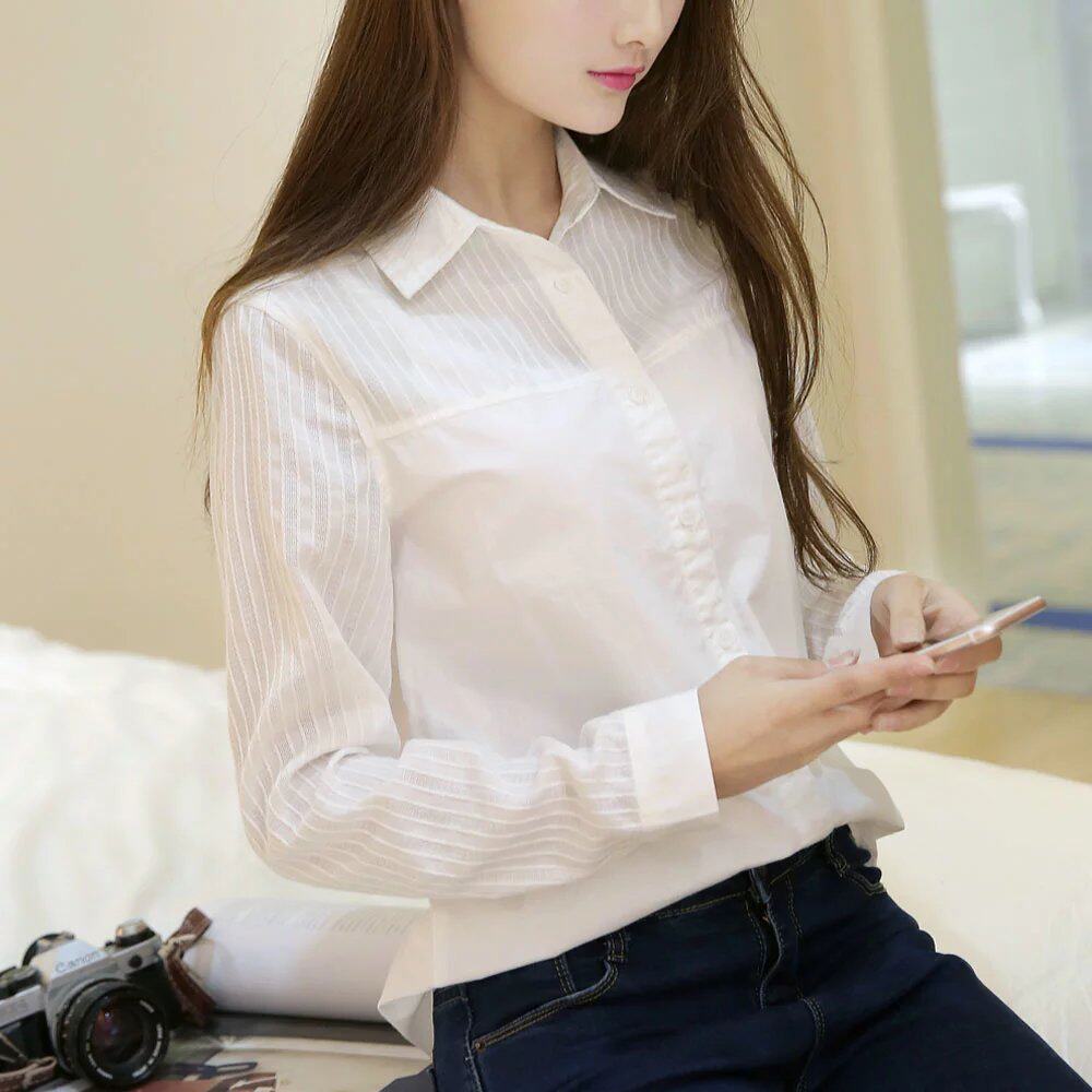 白色襯衫女長袖秋裝加肥加大碼200斤胖mm韓版純棉文藝百搭襯衣潮