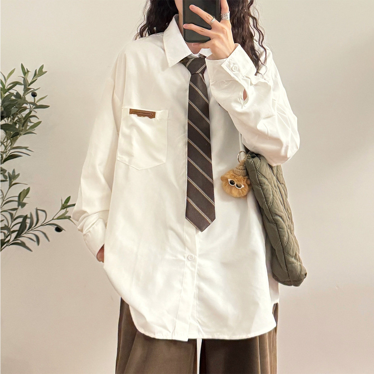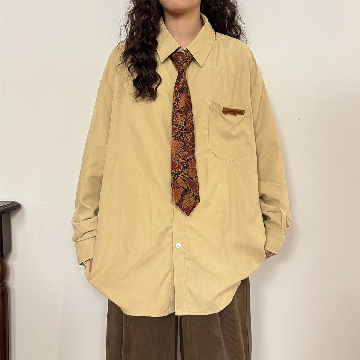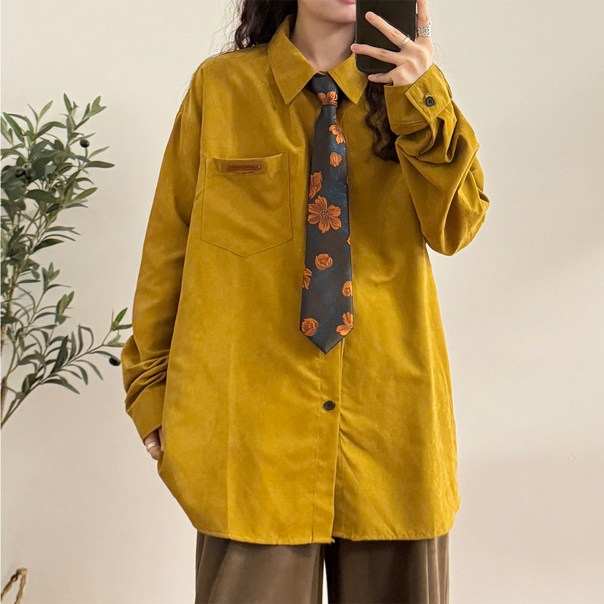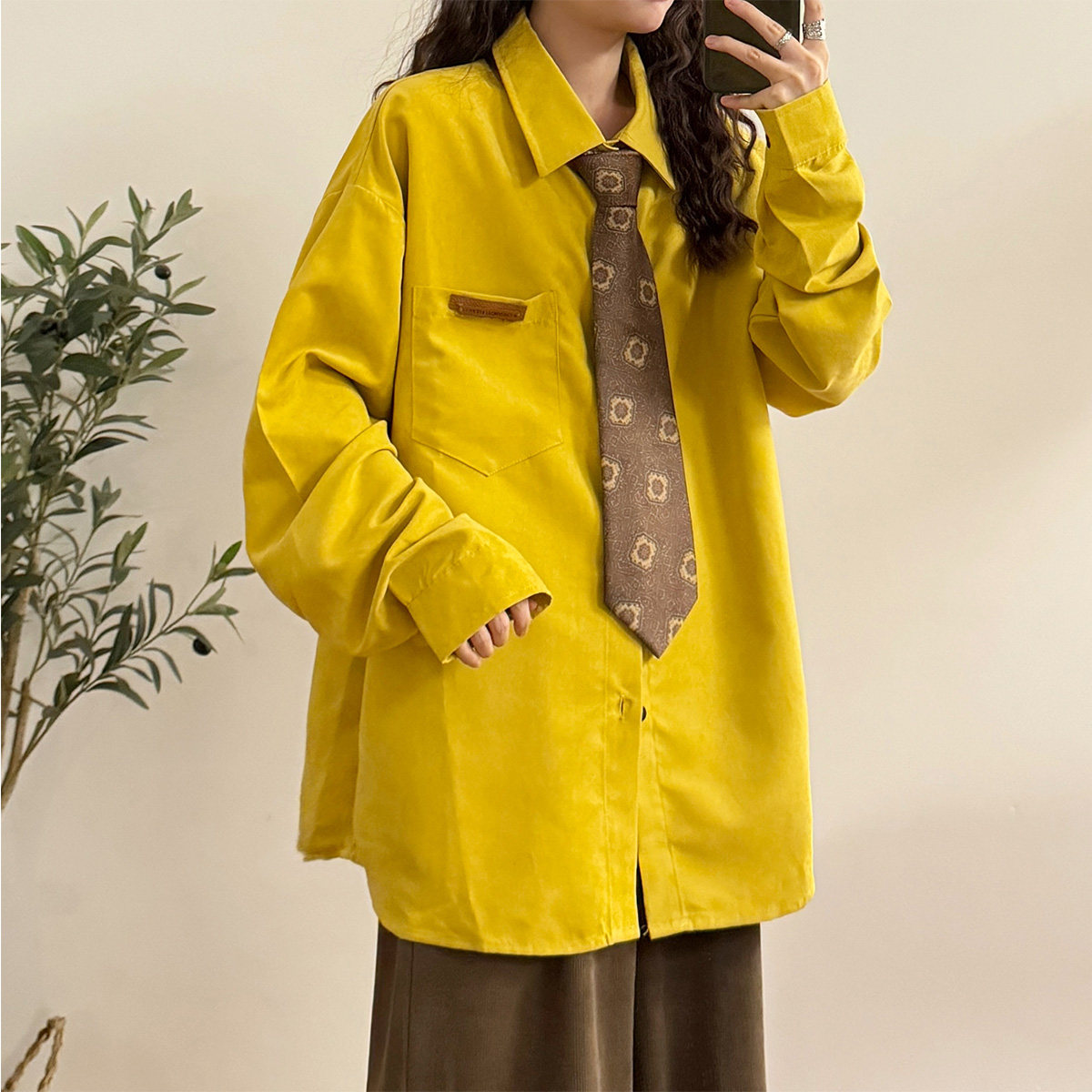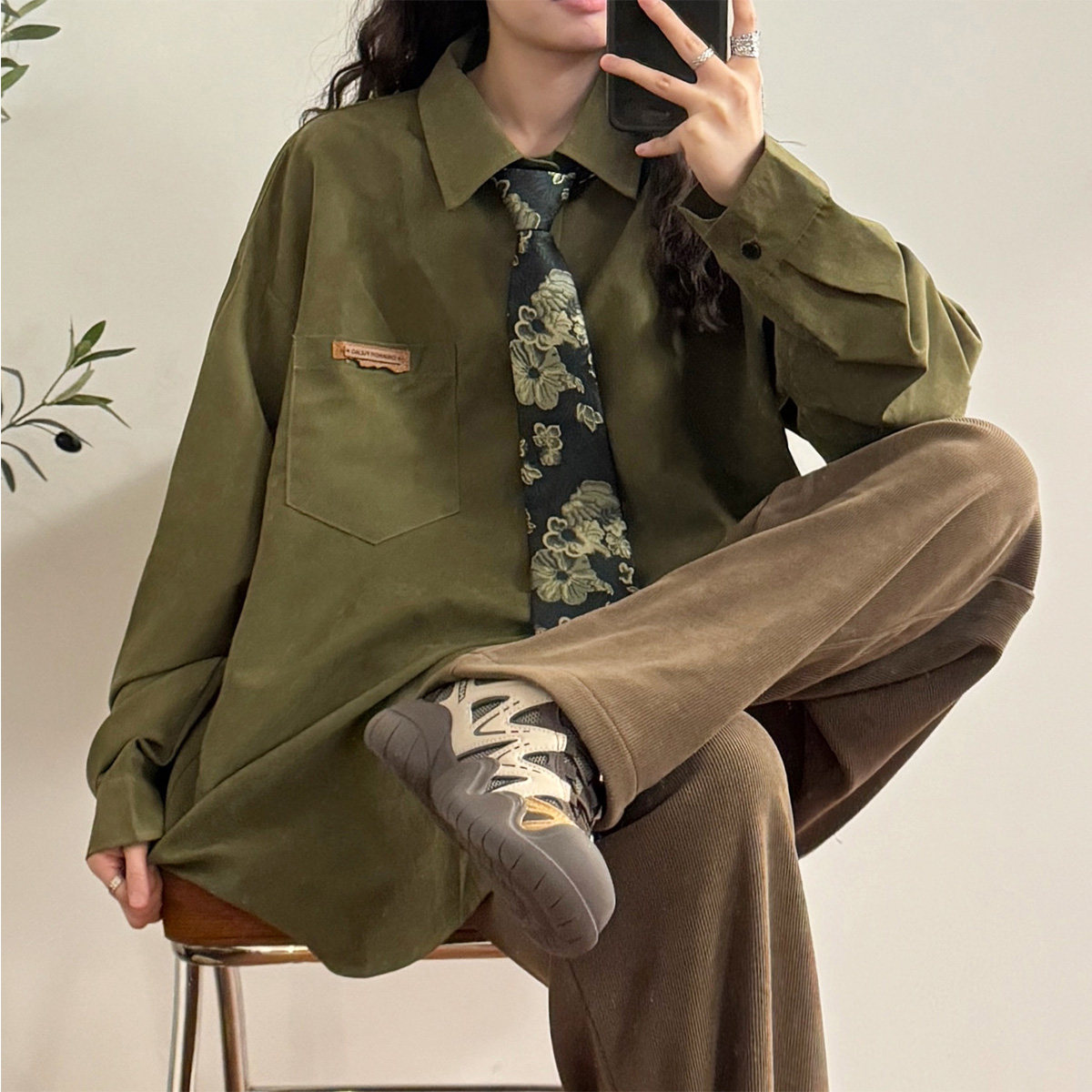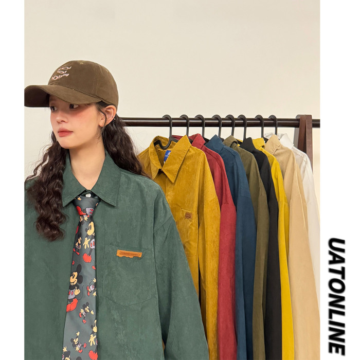 UATONLINE2025秋季美式復古簡約寬鬆純色百搭曡穿長袖襯衫上衣女