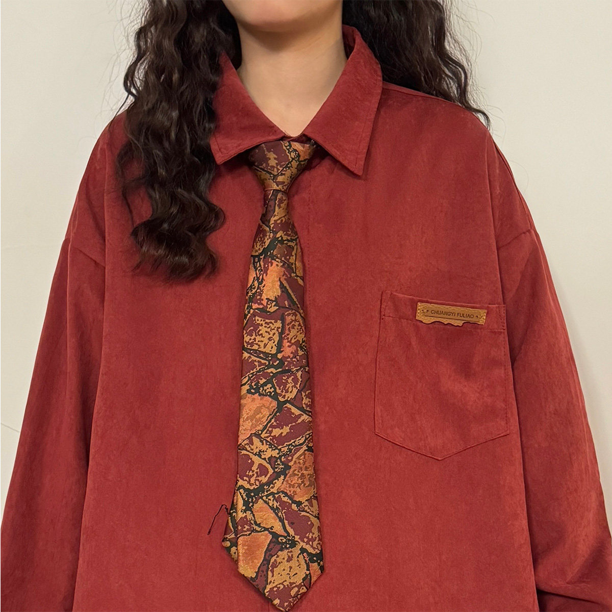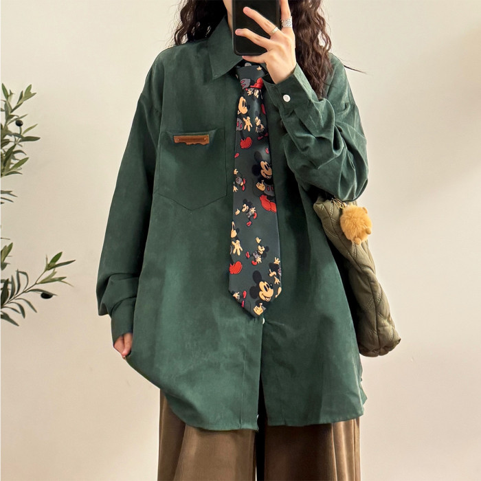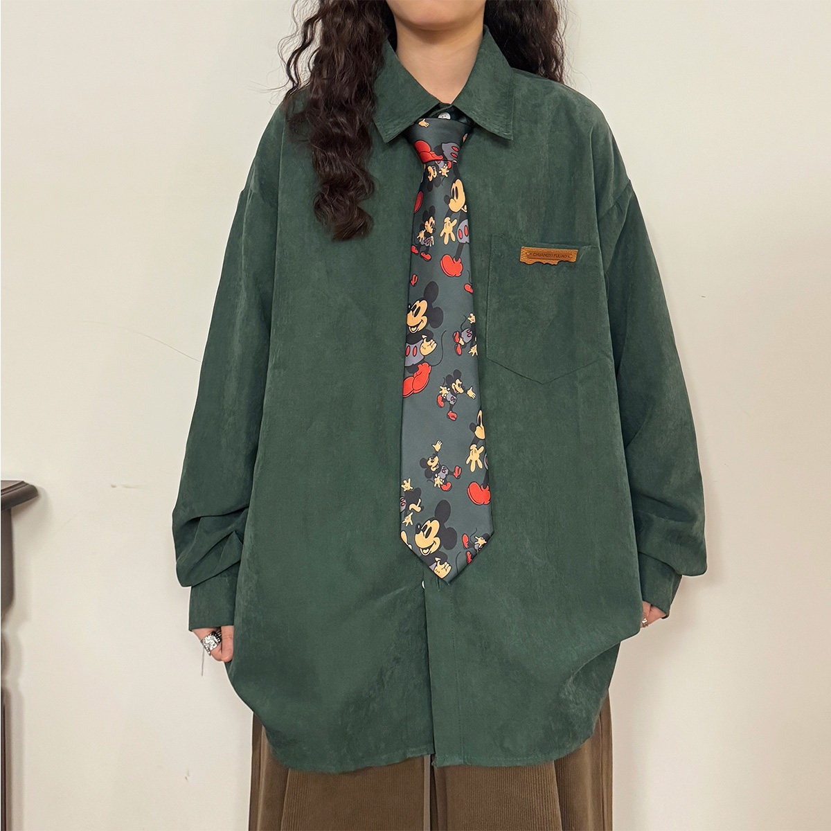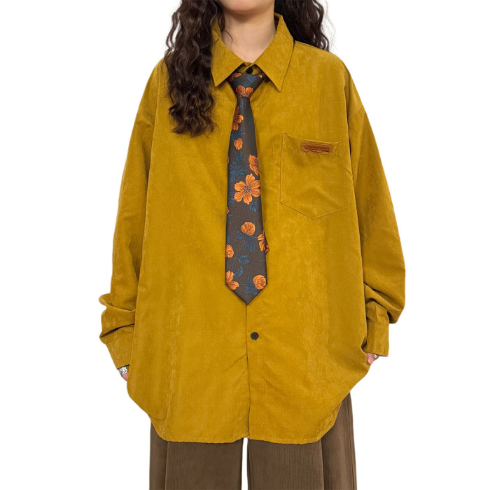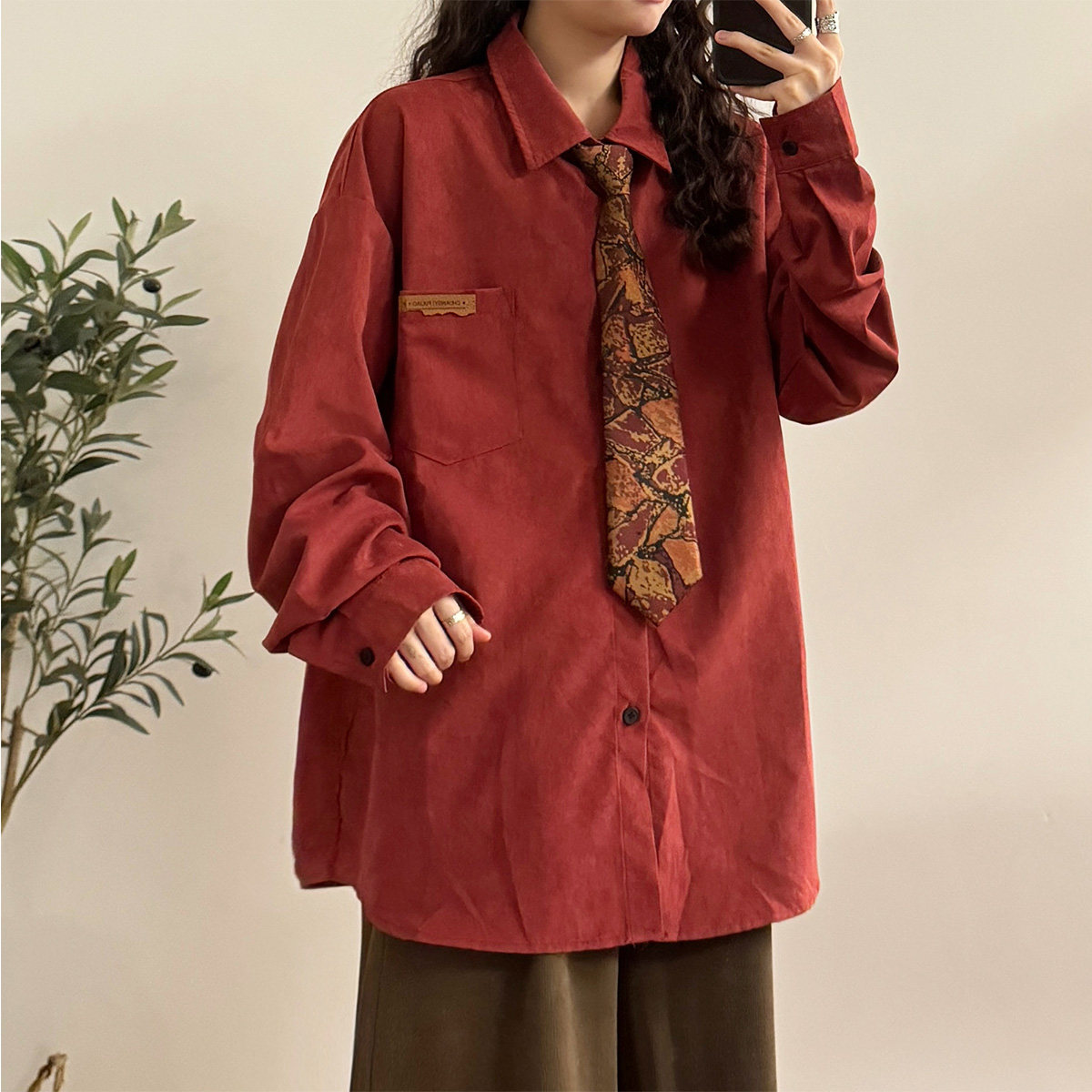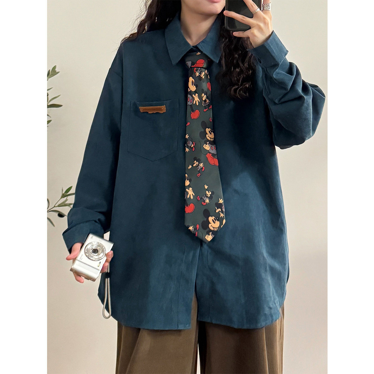 UATONLINE2025秋季美式復古簡約寬鬆純色百搭曡穿長袖襯衫上衣女