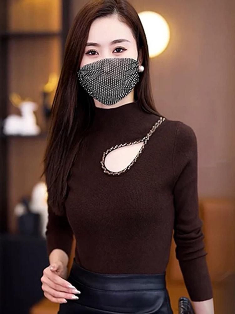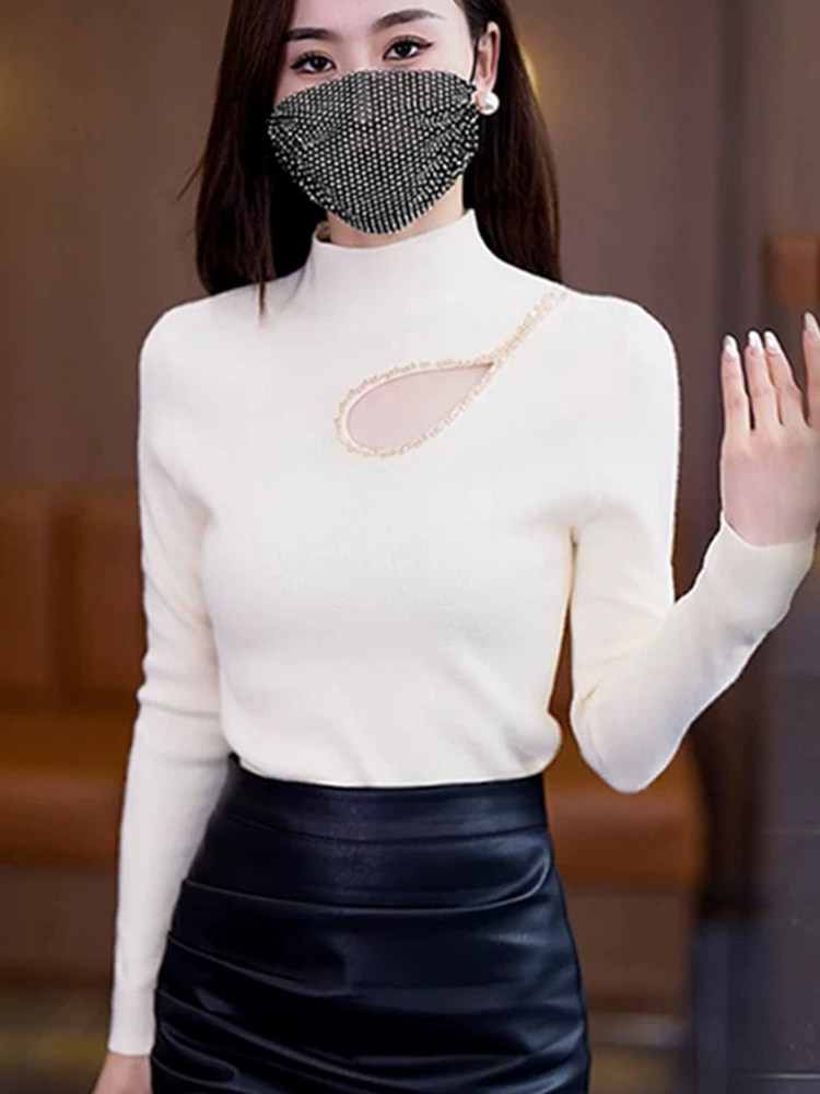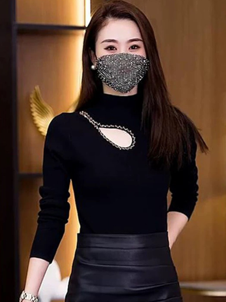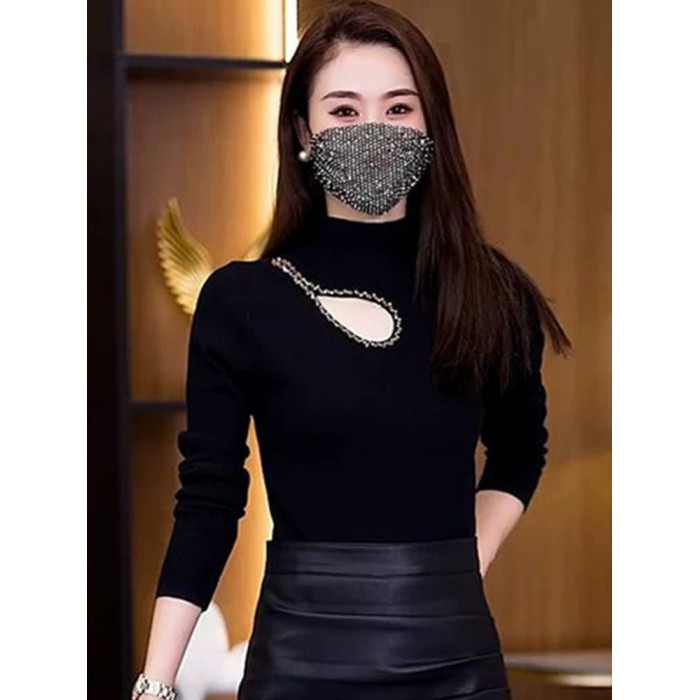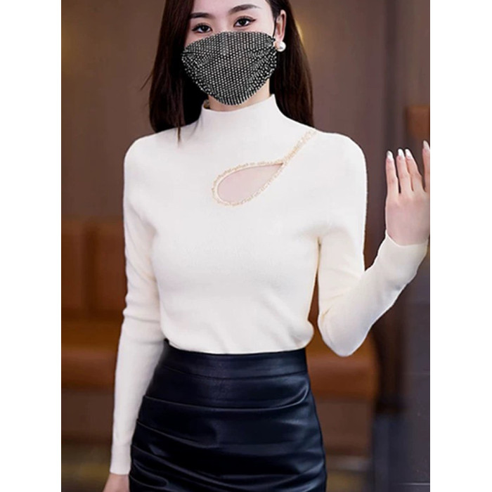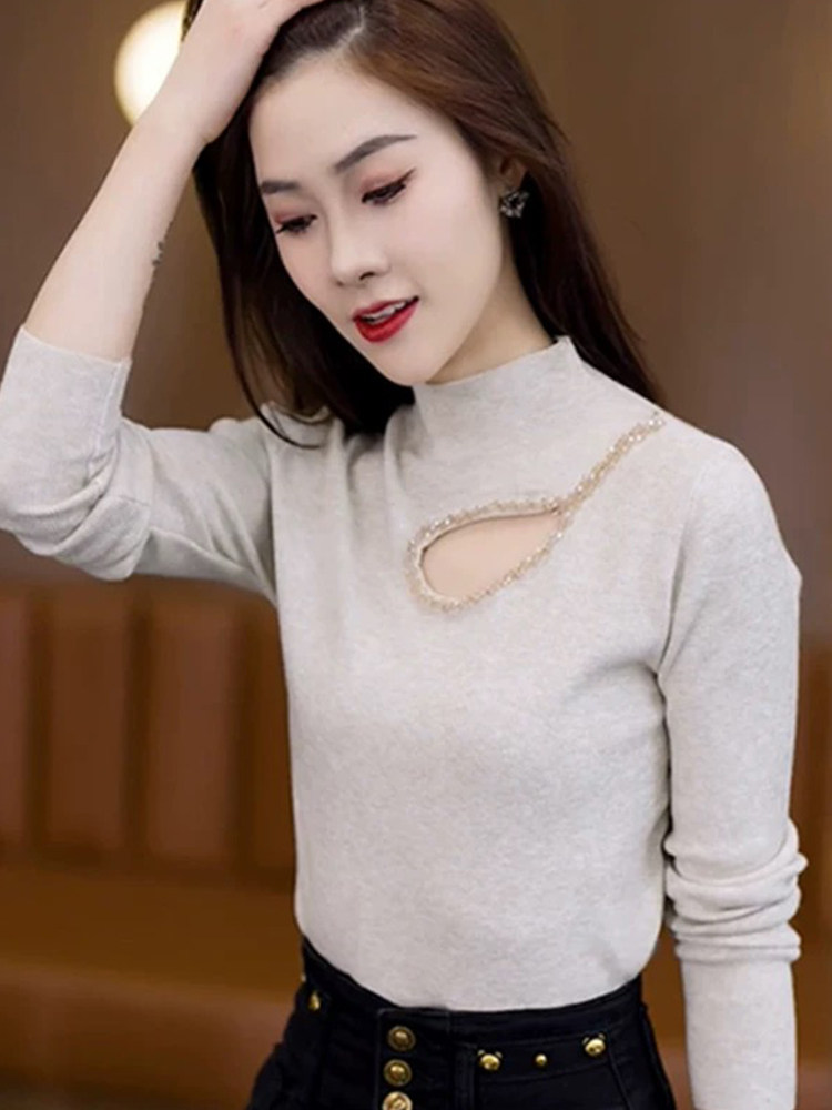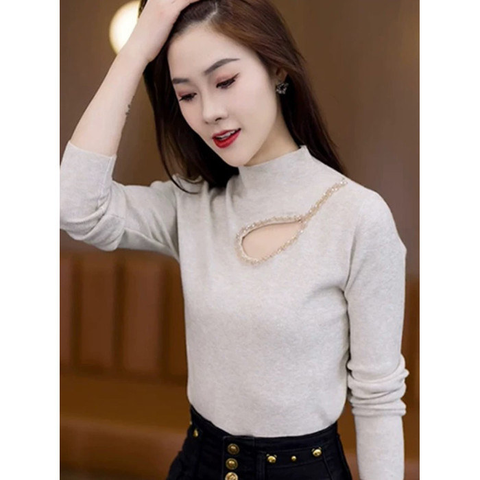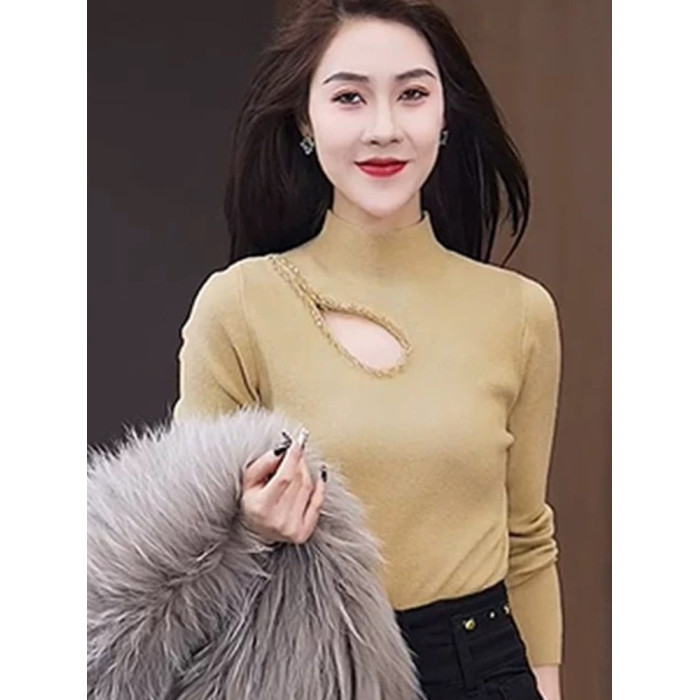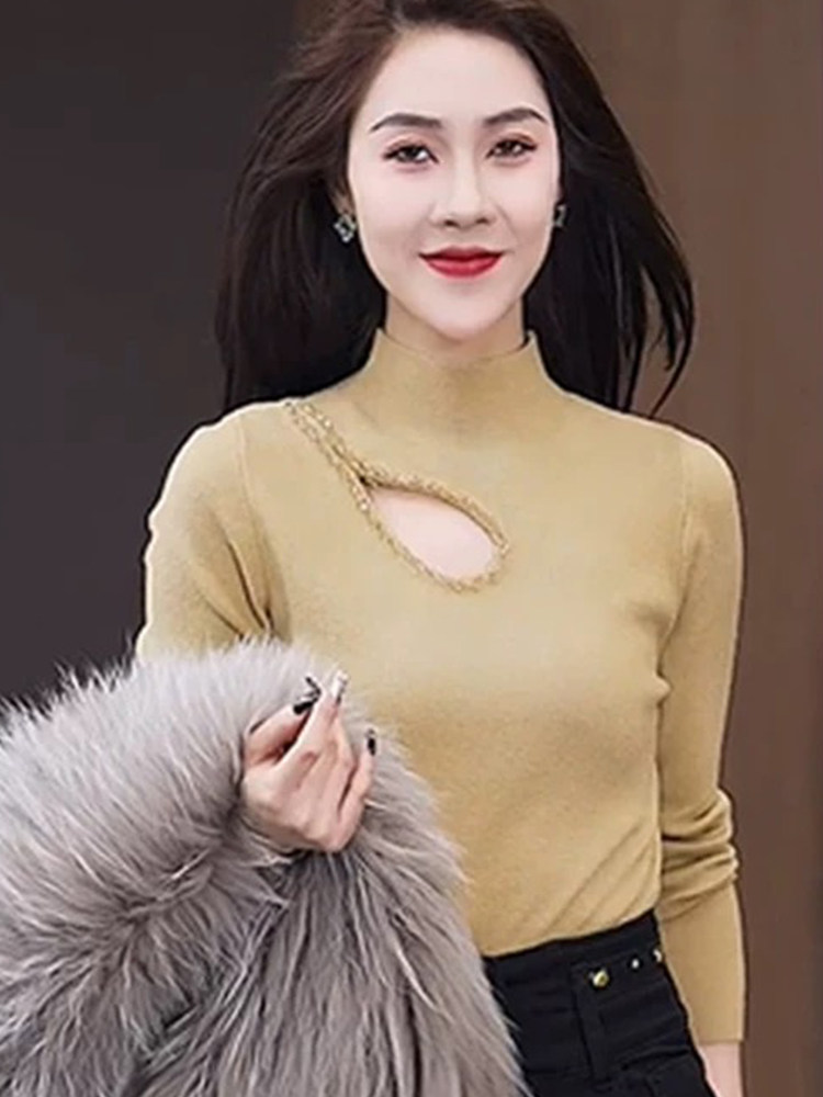 2025秋冬新款鑲鑽鏤空設計感半高領打底衫女今年流行氣質內搭上衣