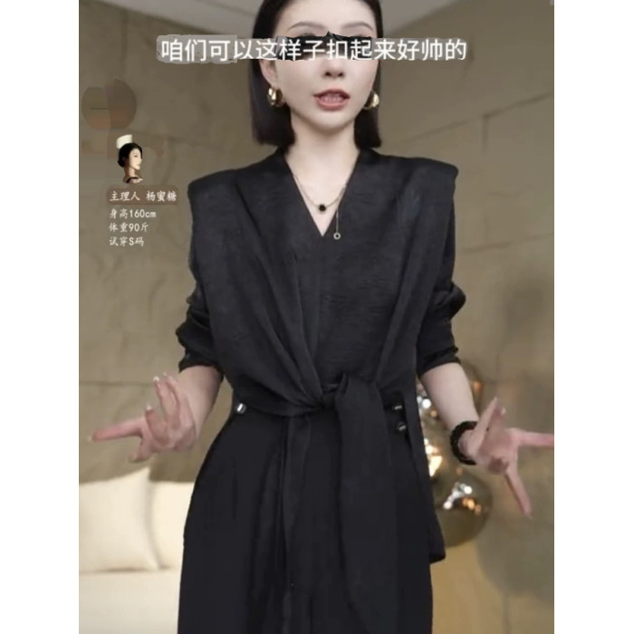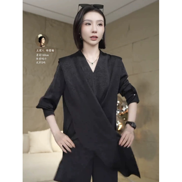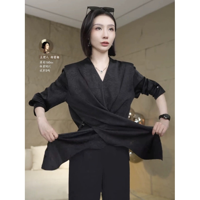 新款OL風簡約氣質交叉紐釦純色襯衫女2025洋氣通勤百搭上衣襯衣潮