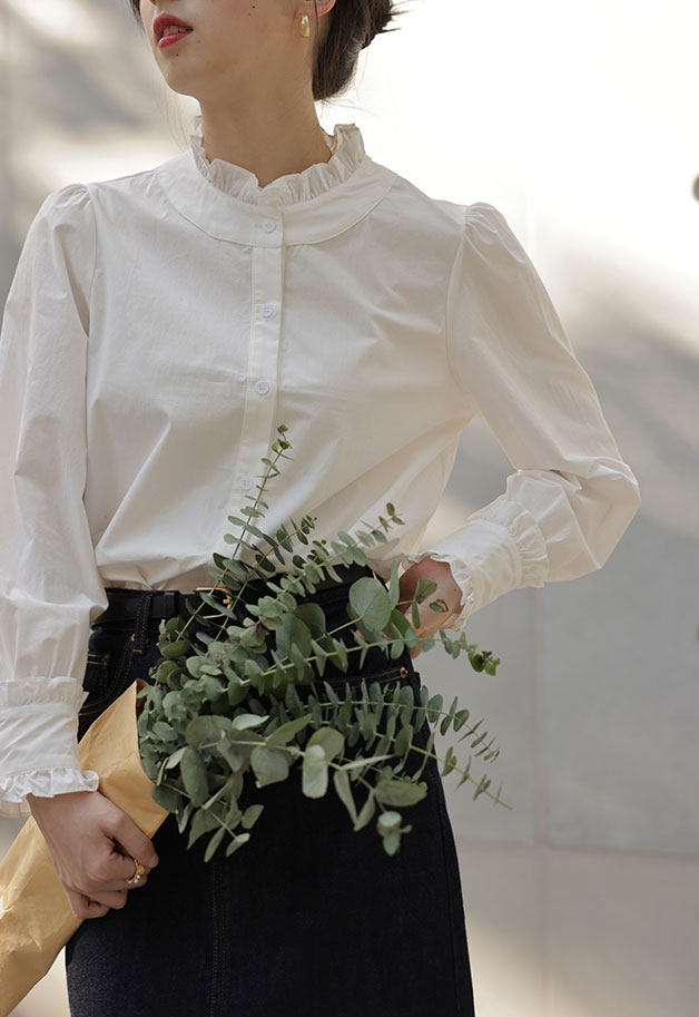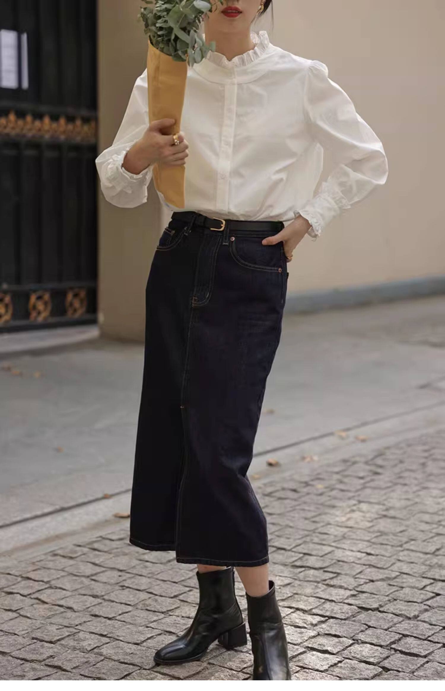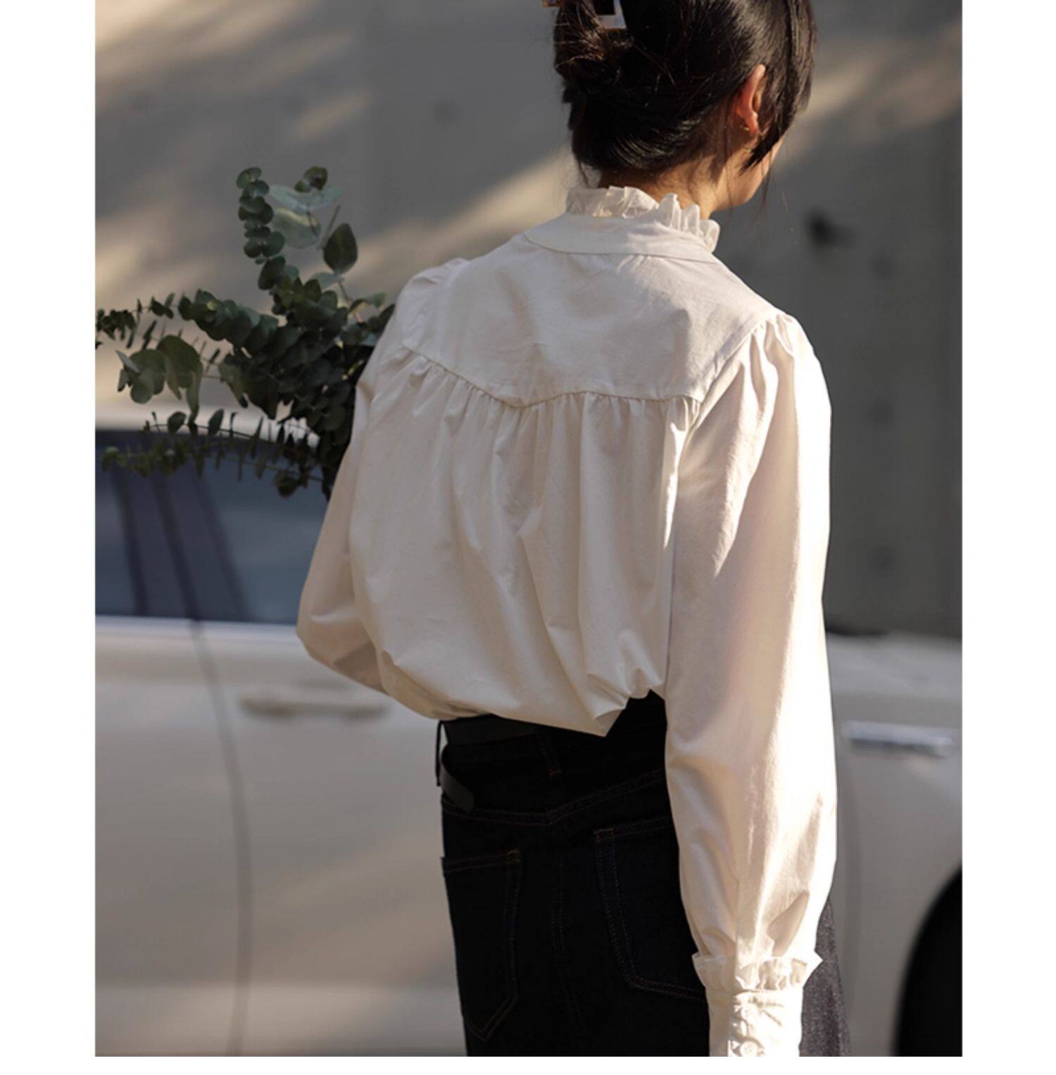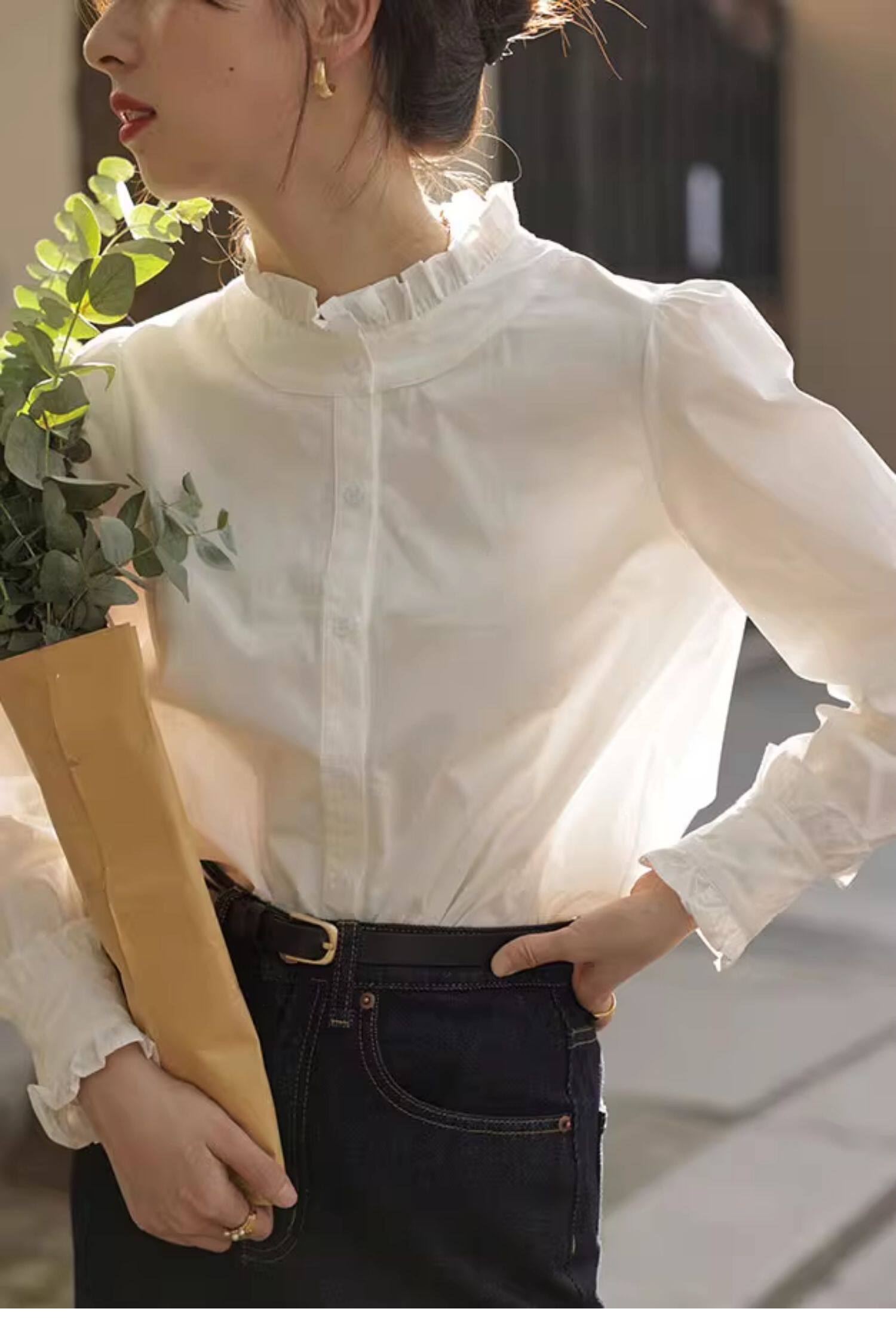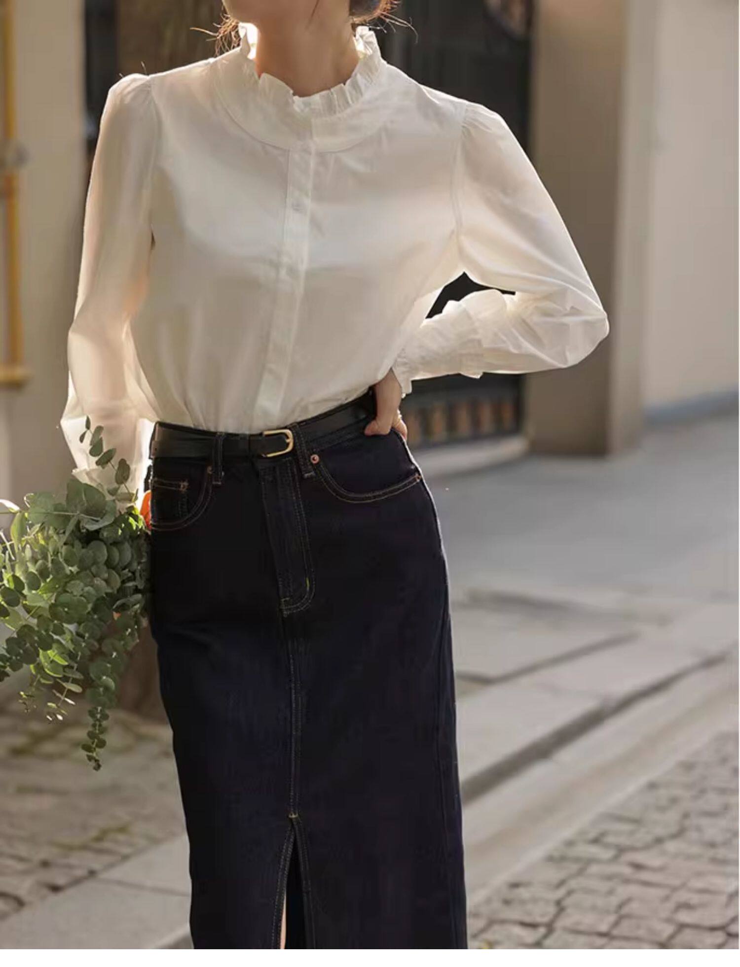 法式白色襯衫上衣女秋季設計感小衆木耳花邊立領高級打底內搭襯衣
