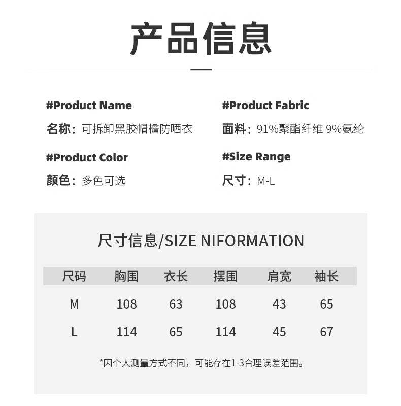 | 面料 | 原紗型防曬面料 |