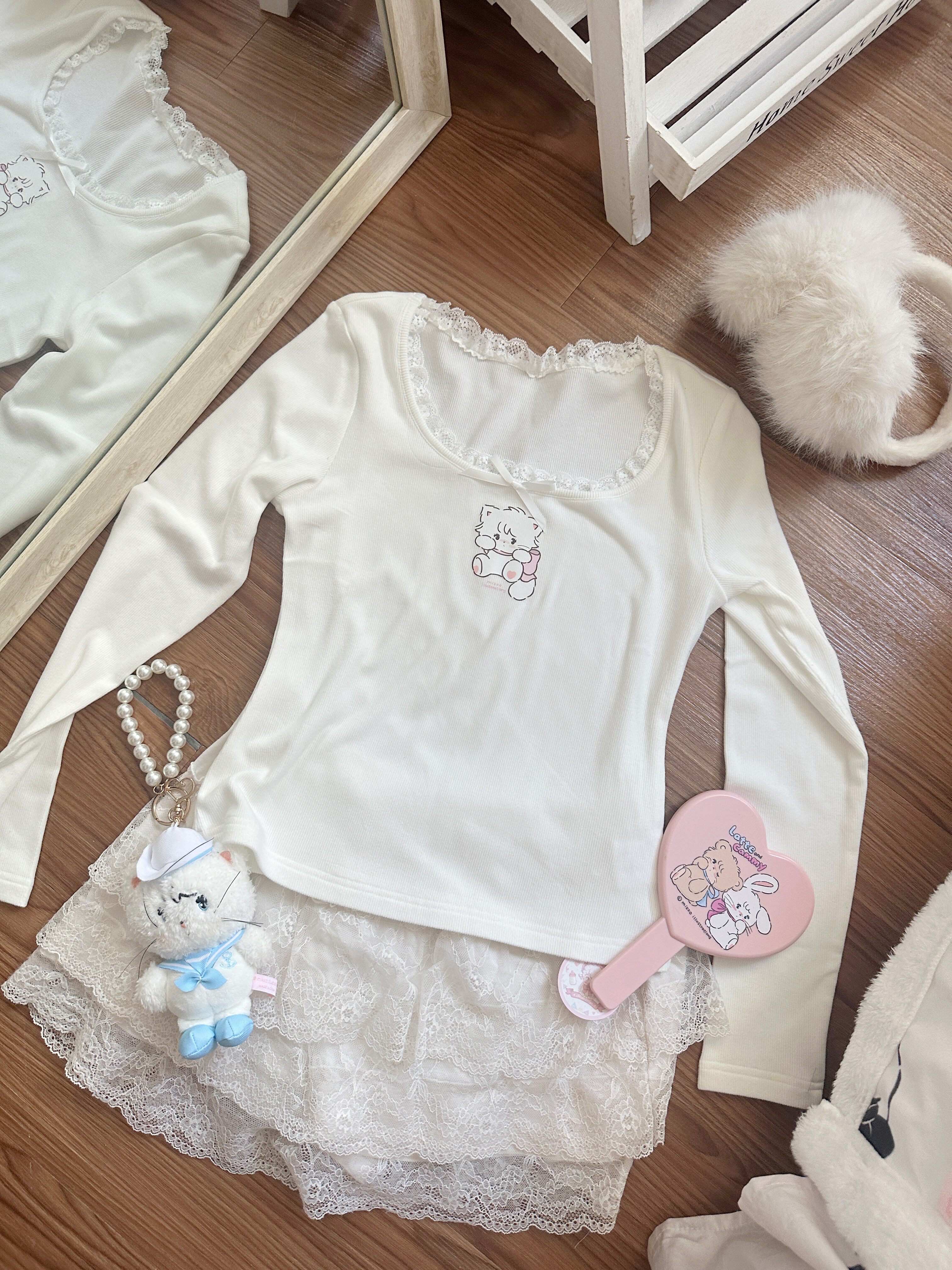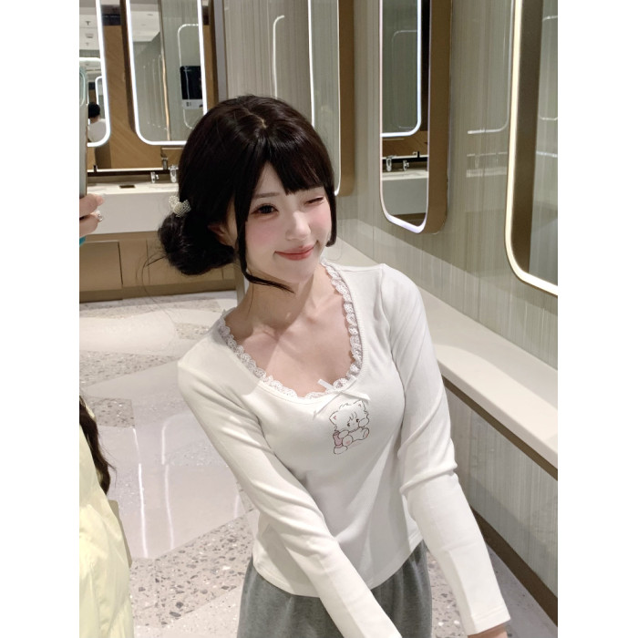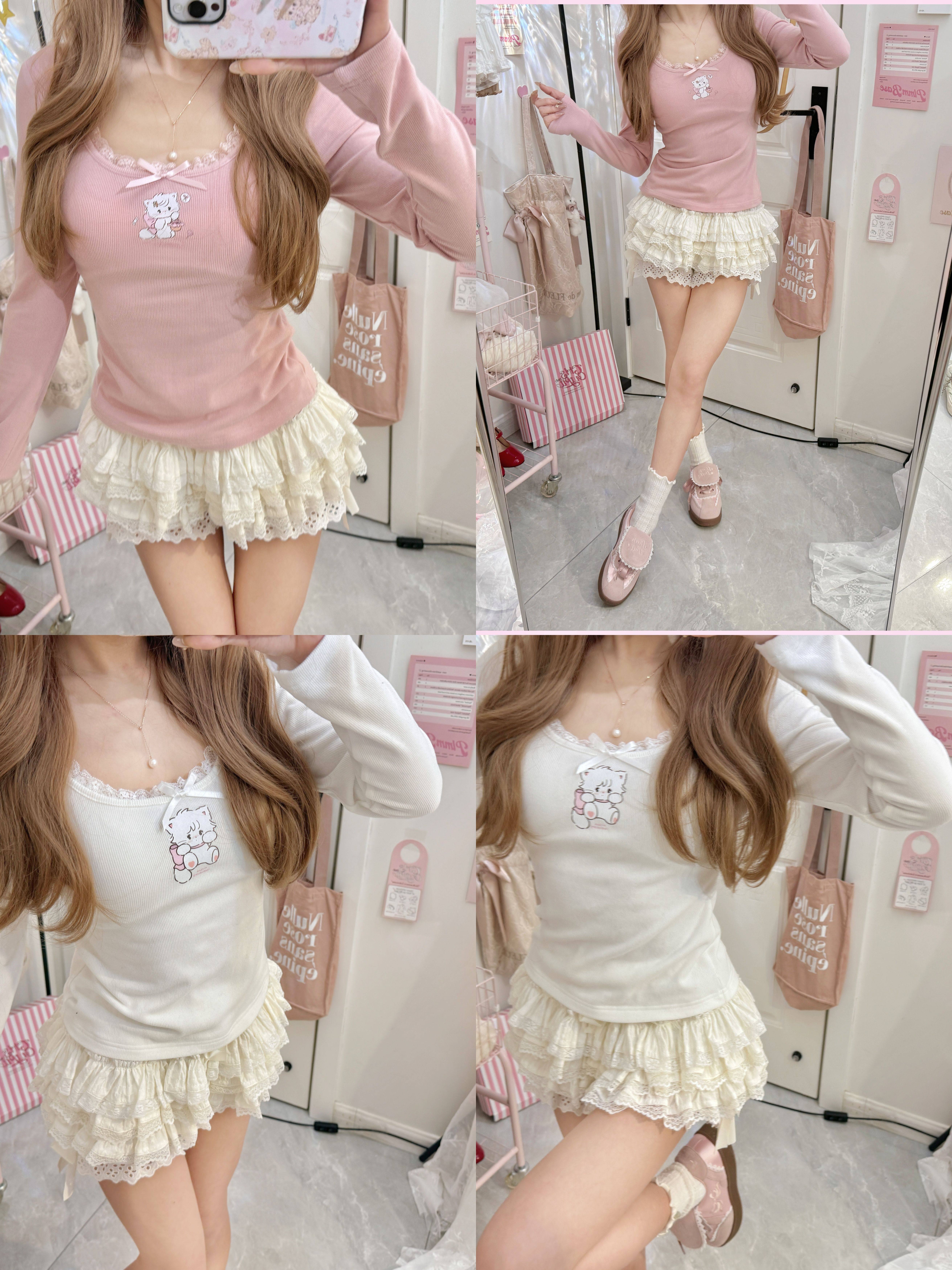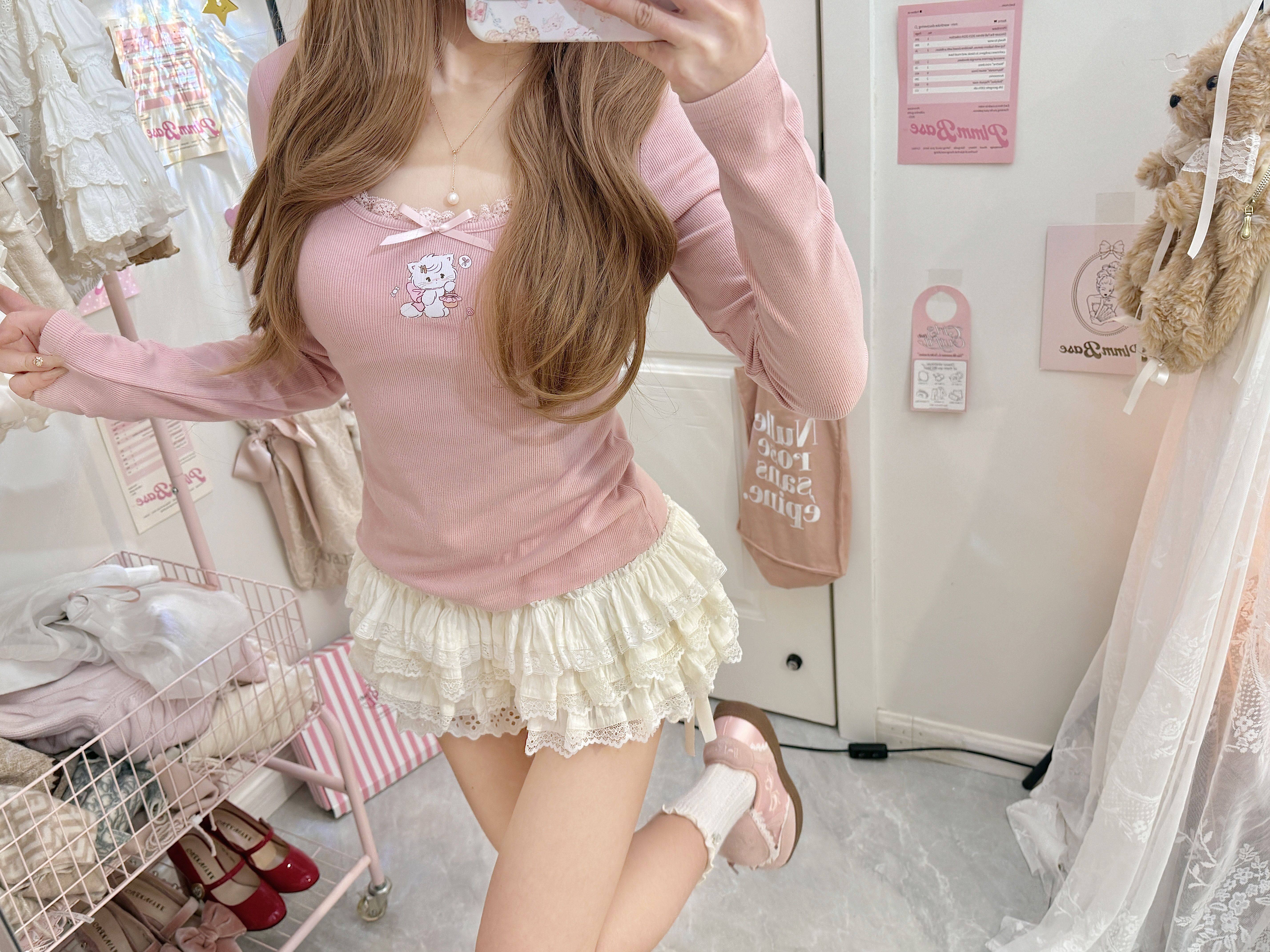 原創可愛打底衫四季長袖上衣花邊領修身日系甜美可愛綿羊商店