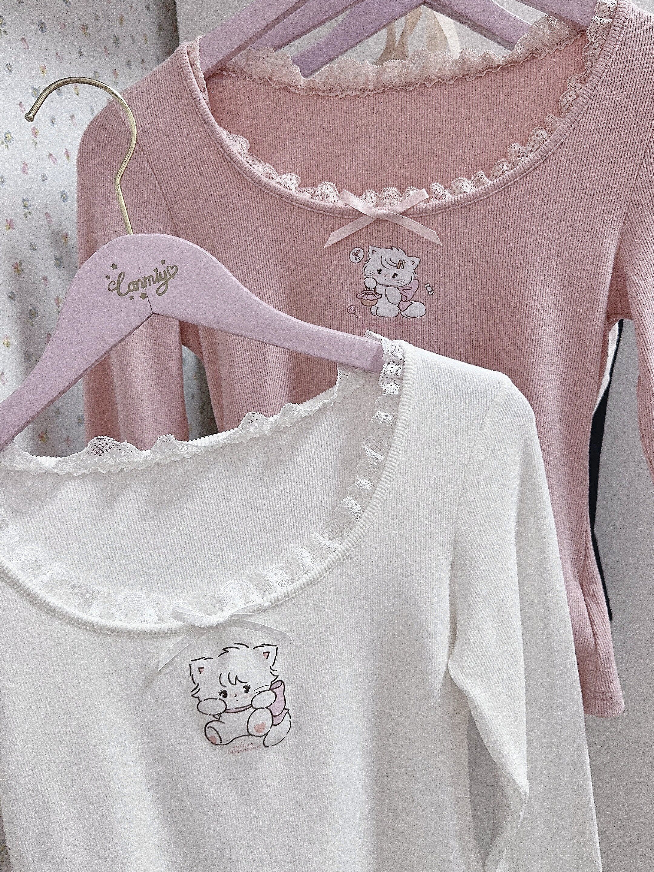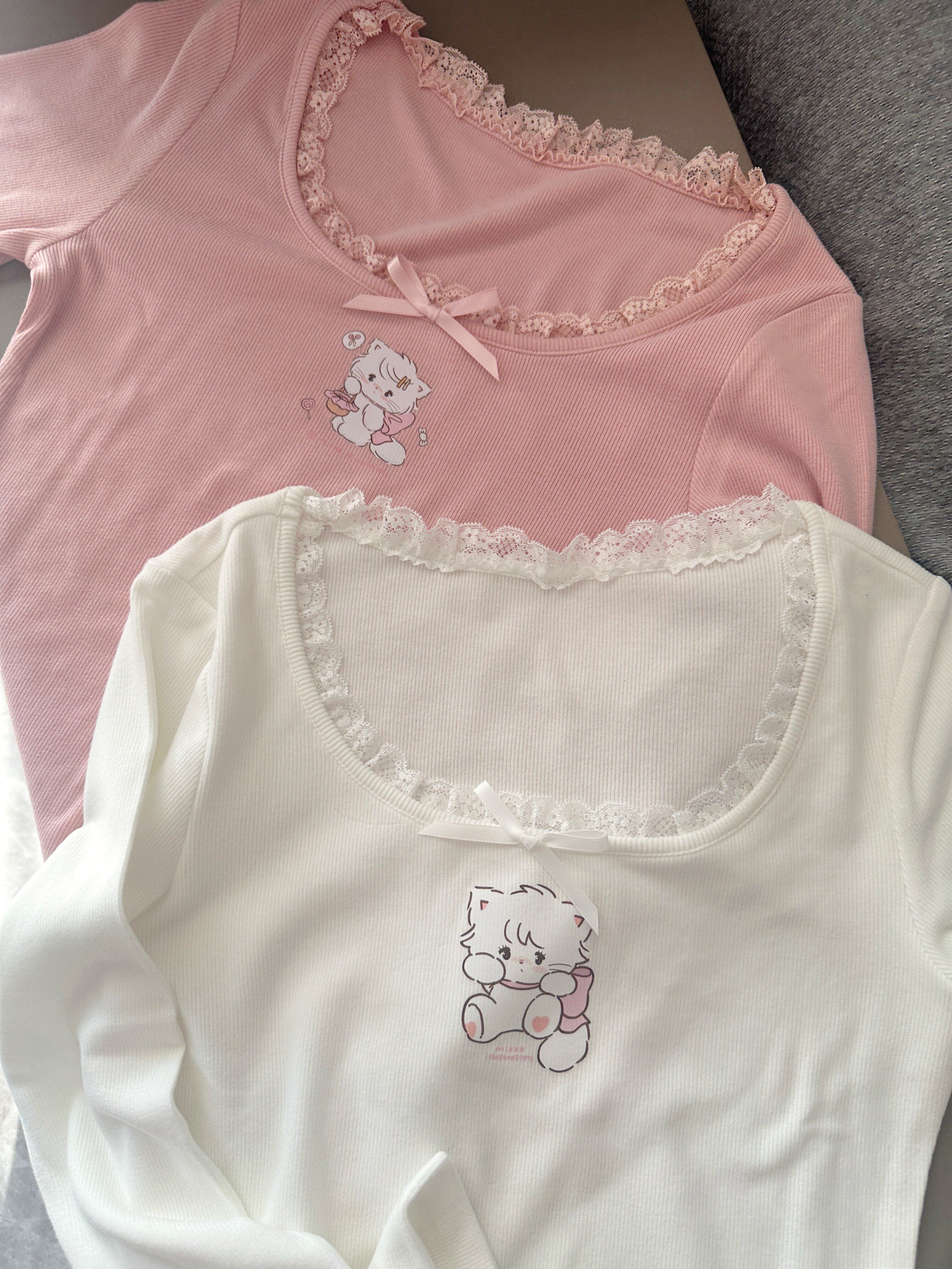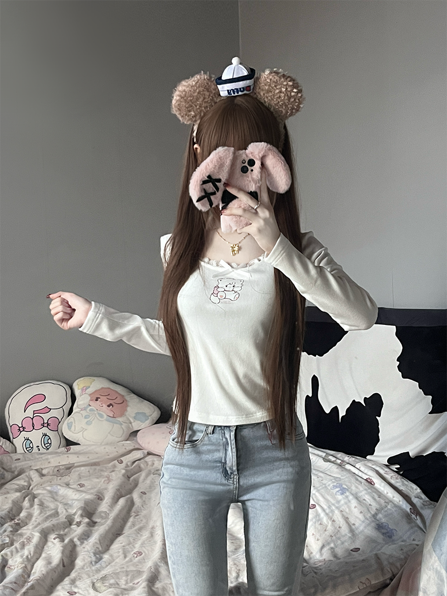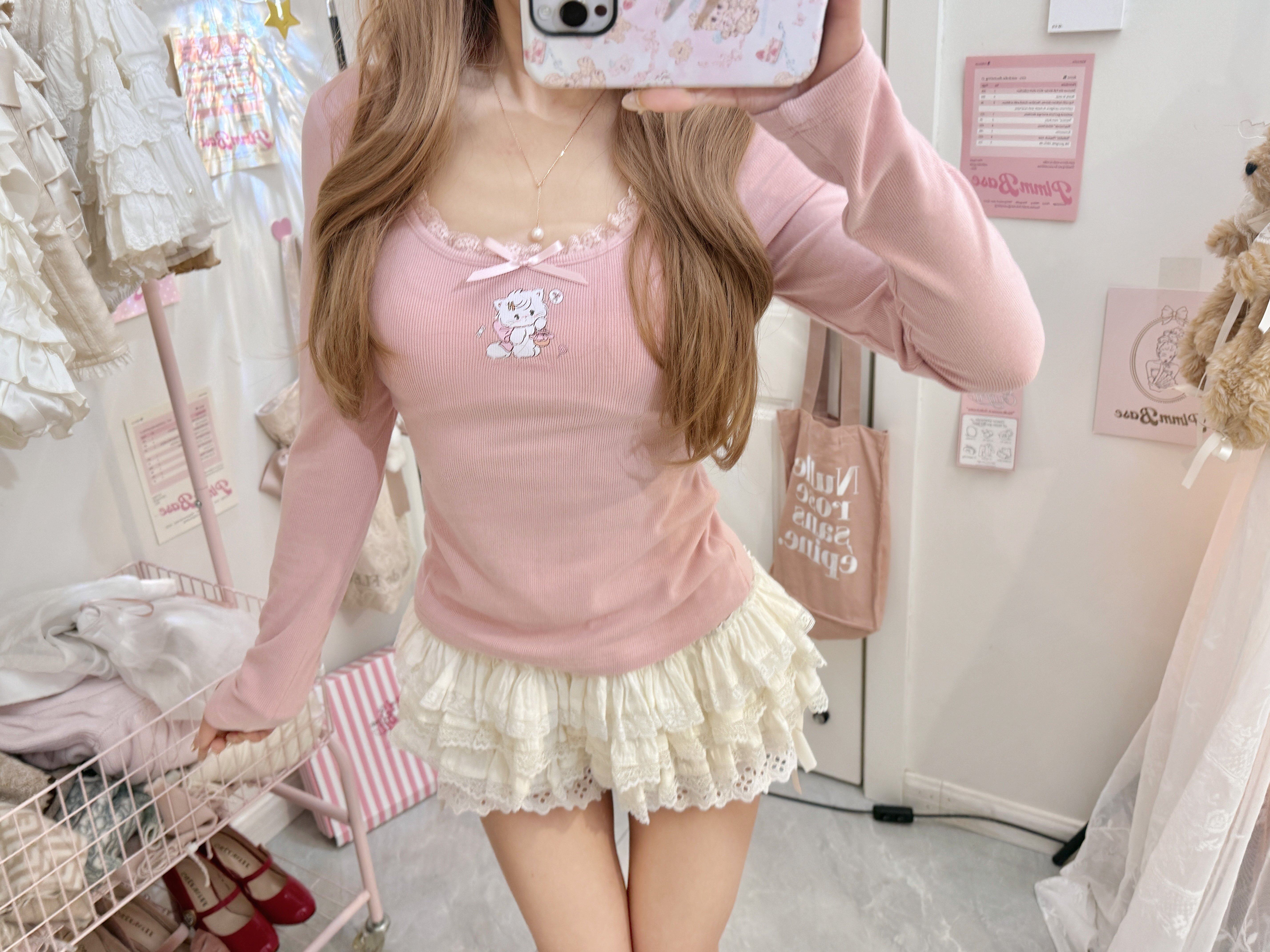 原創可愛打底衫四季長袖上衣花邊領修身日系甜美可愛綿羊商店