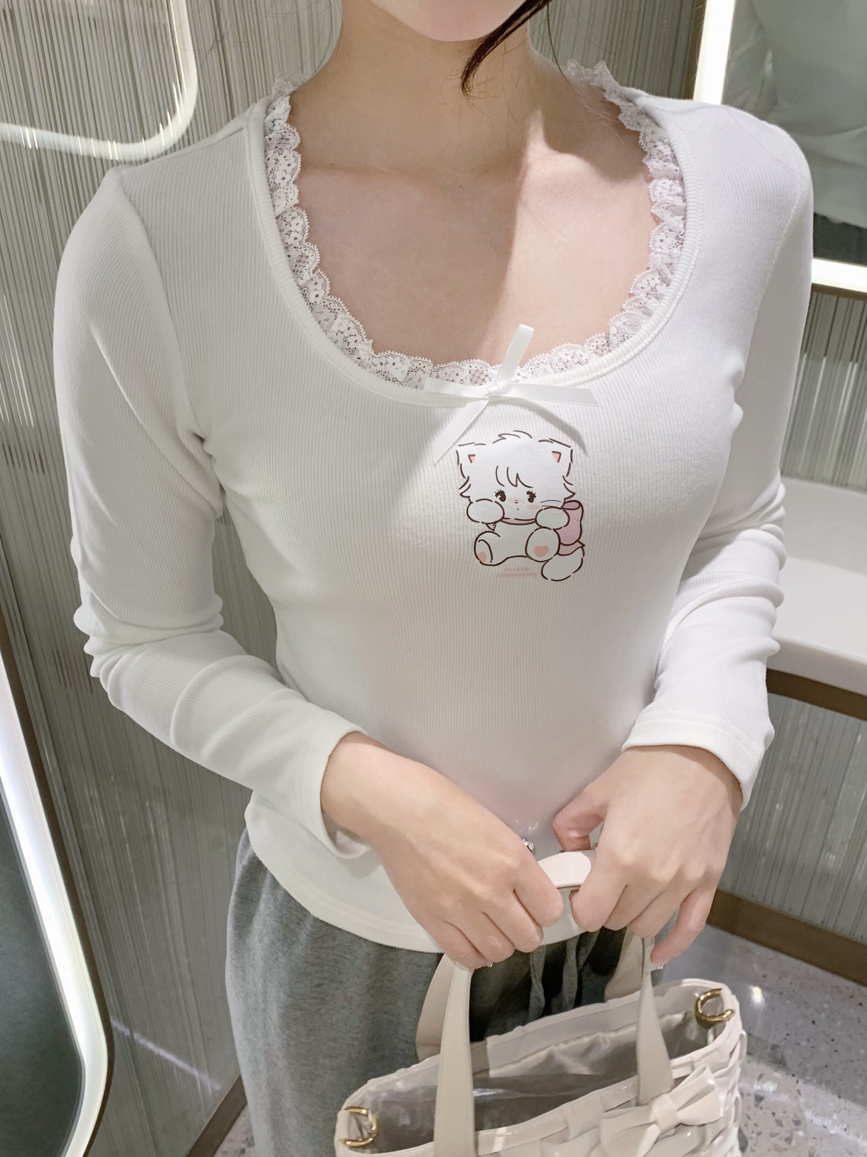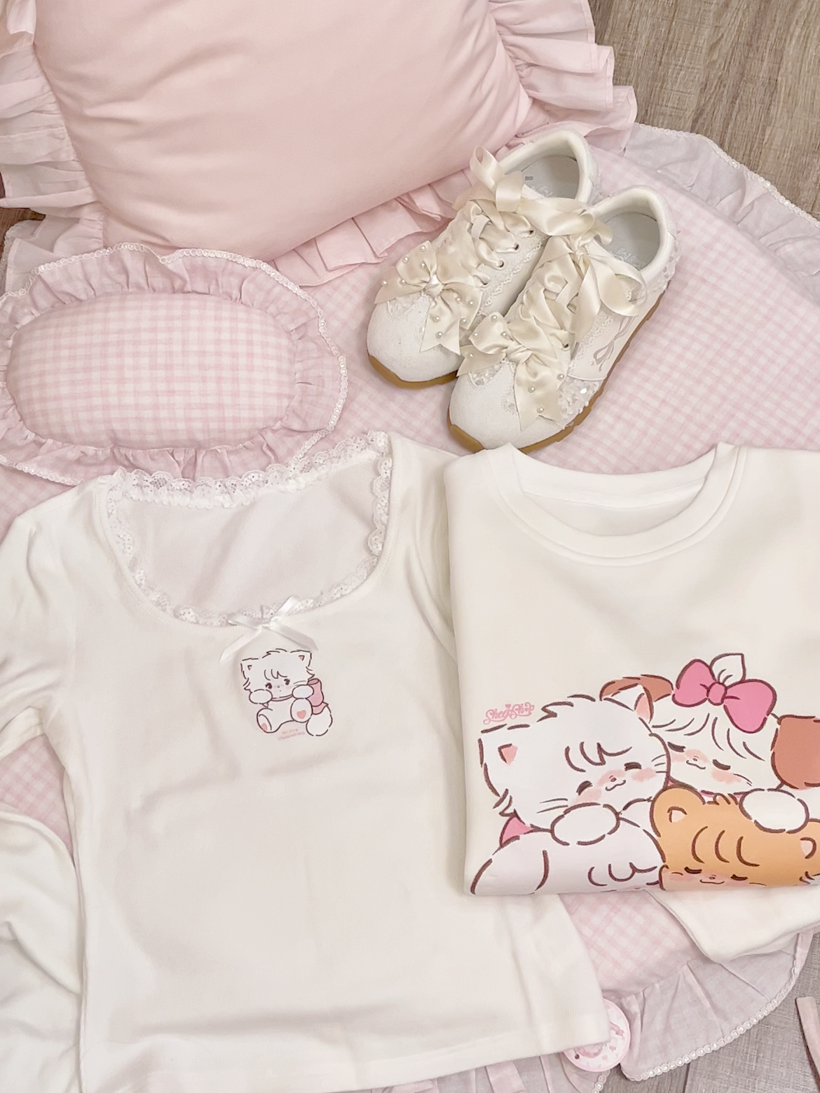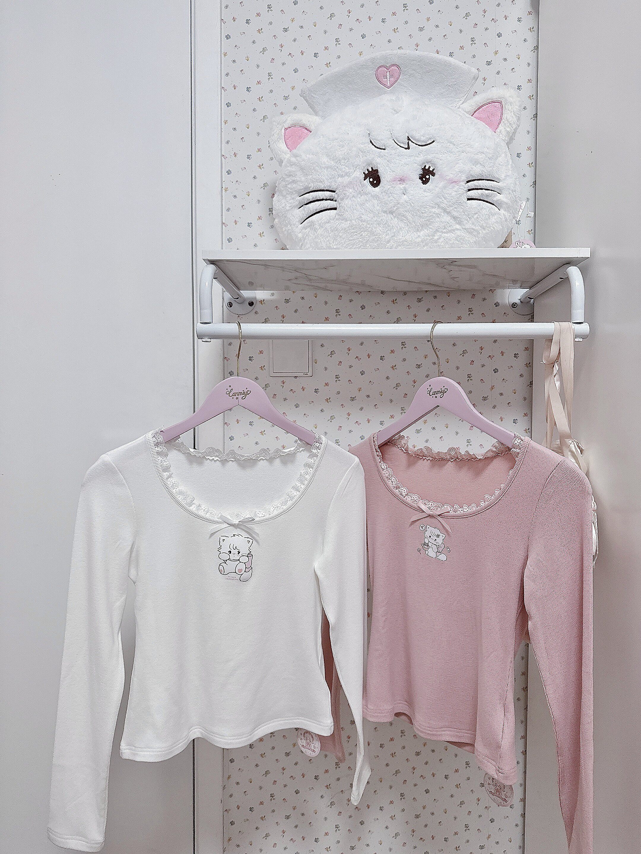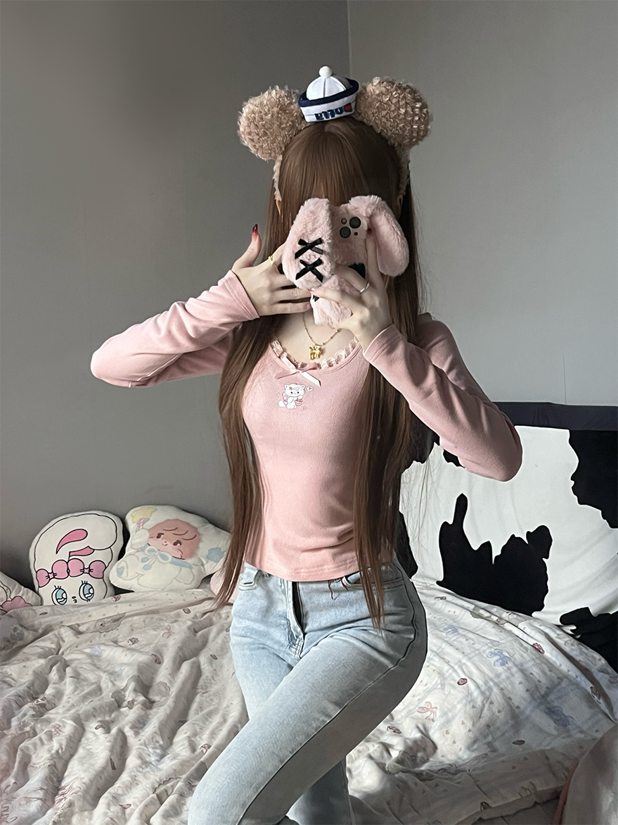 原創可愛打底衫四季長袖上衣花邊領修身日系甜美可愛綿羊商店