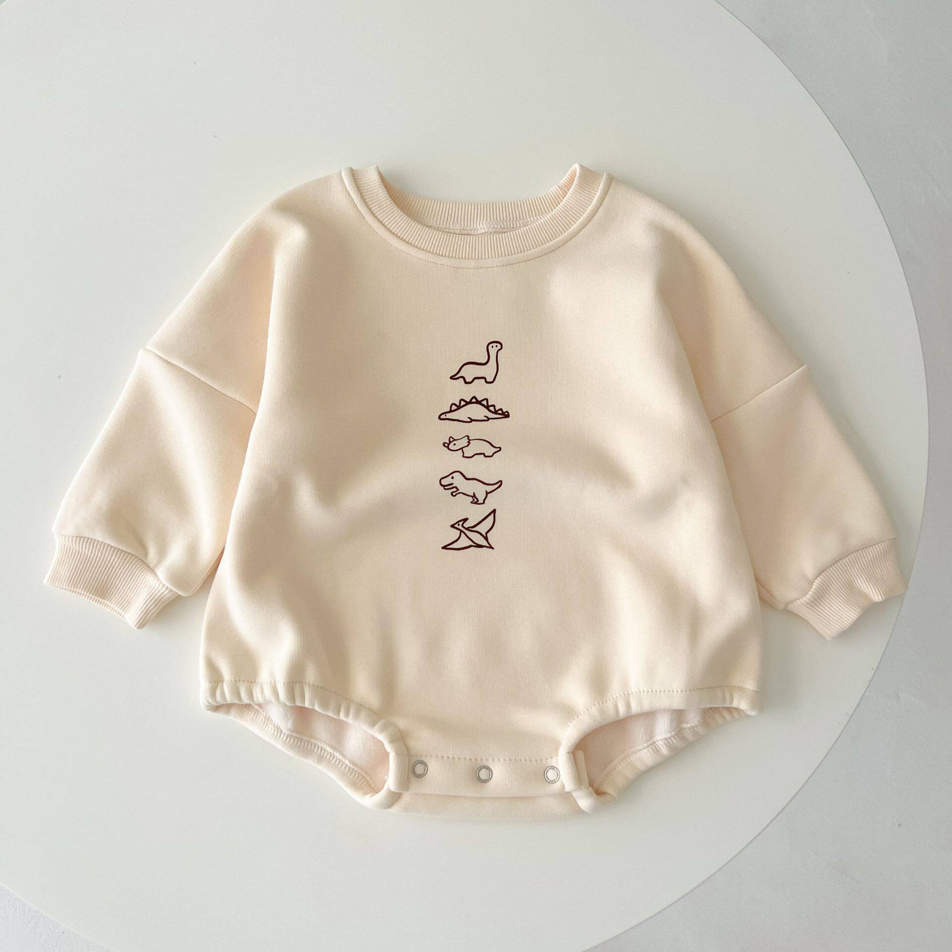 2022加厚寶寶衣服冬季嬰兒可愛恐龍包屁衣爬爬服秋冬加絨三角哈衣