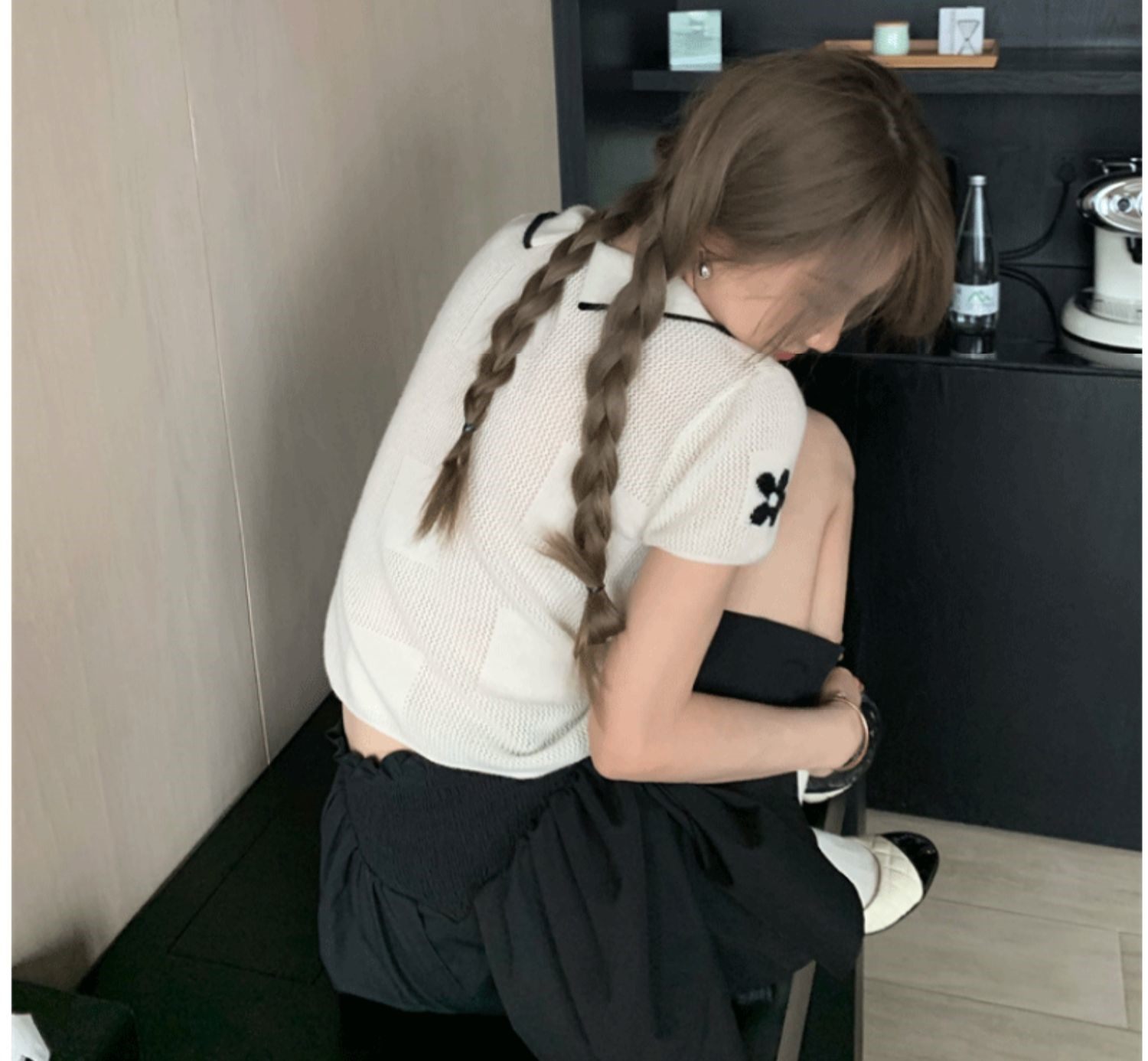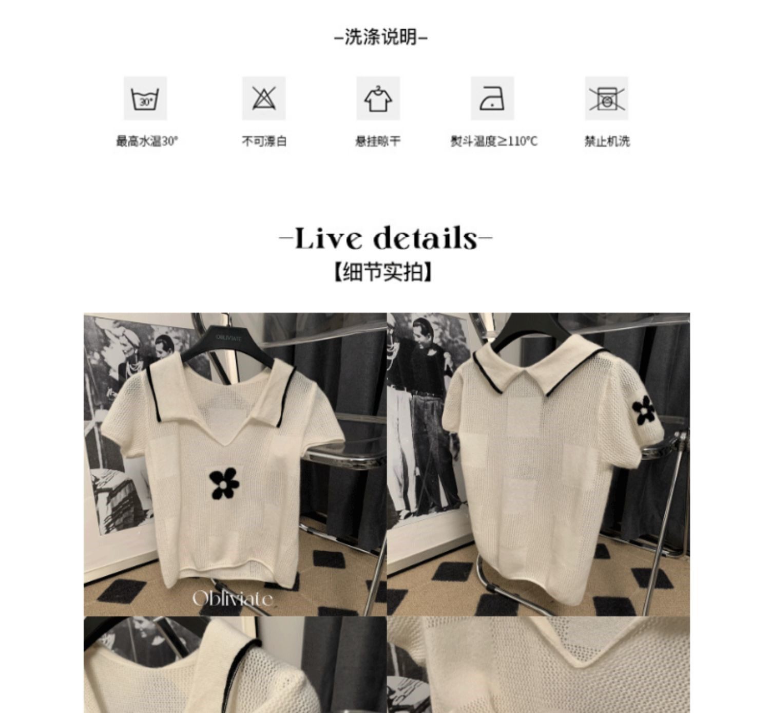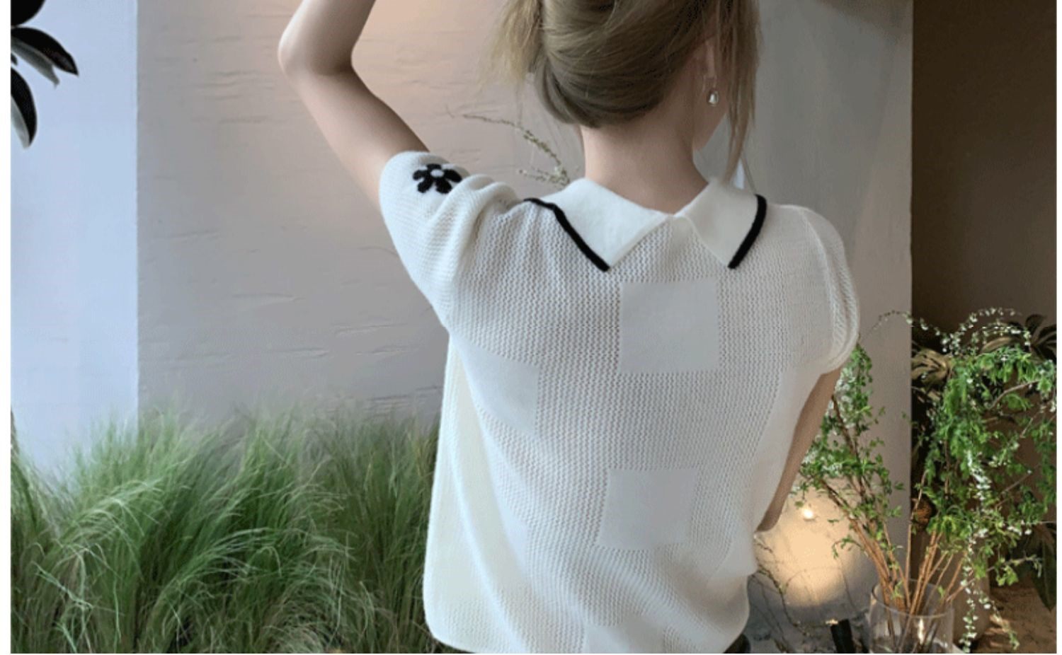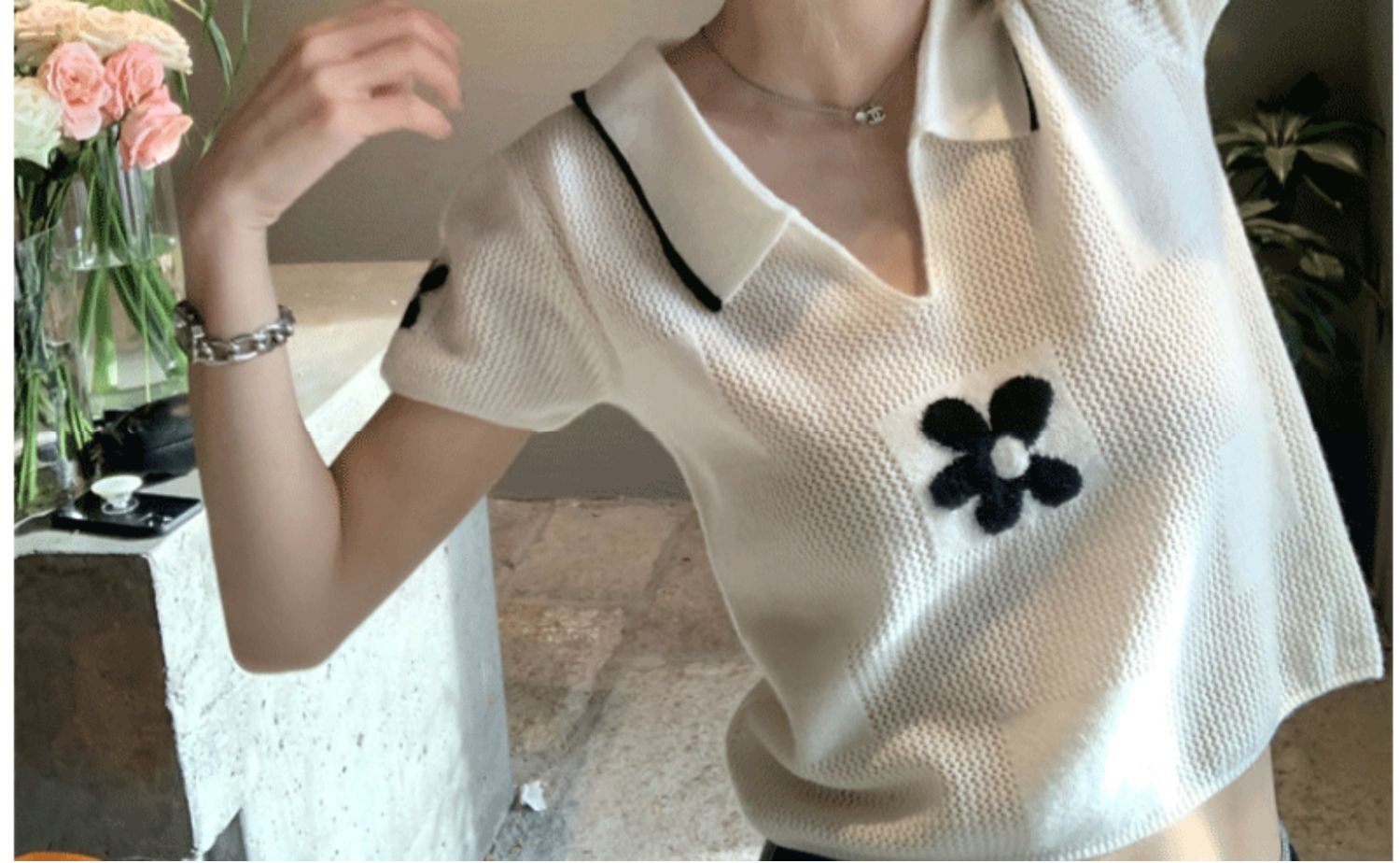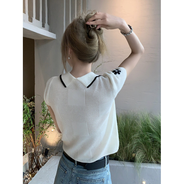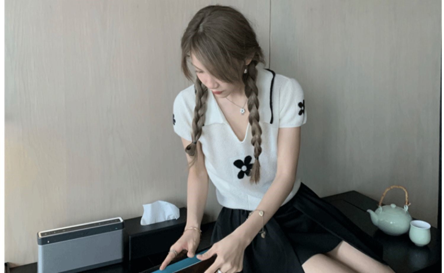 軟糯冰絲針織衫女夏季薄款寬鬆設計感v領防曬罩衫小香風短袖上衣