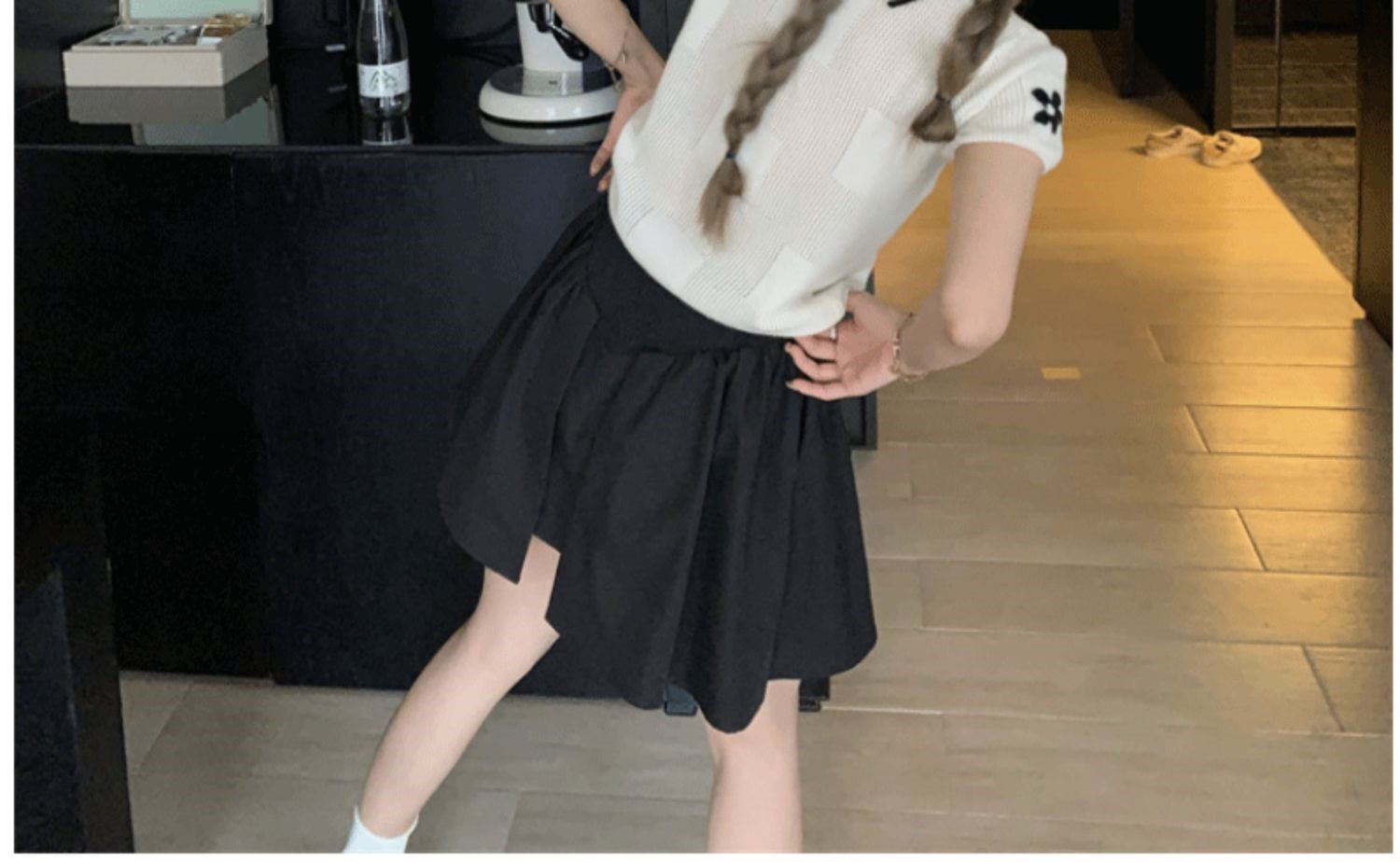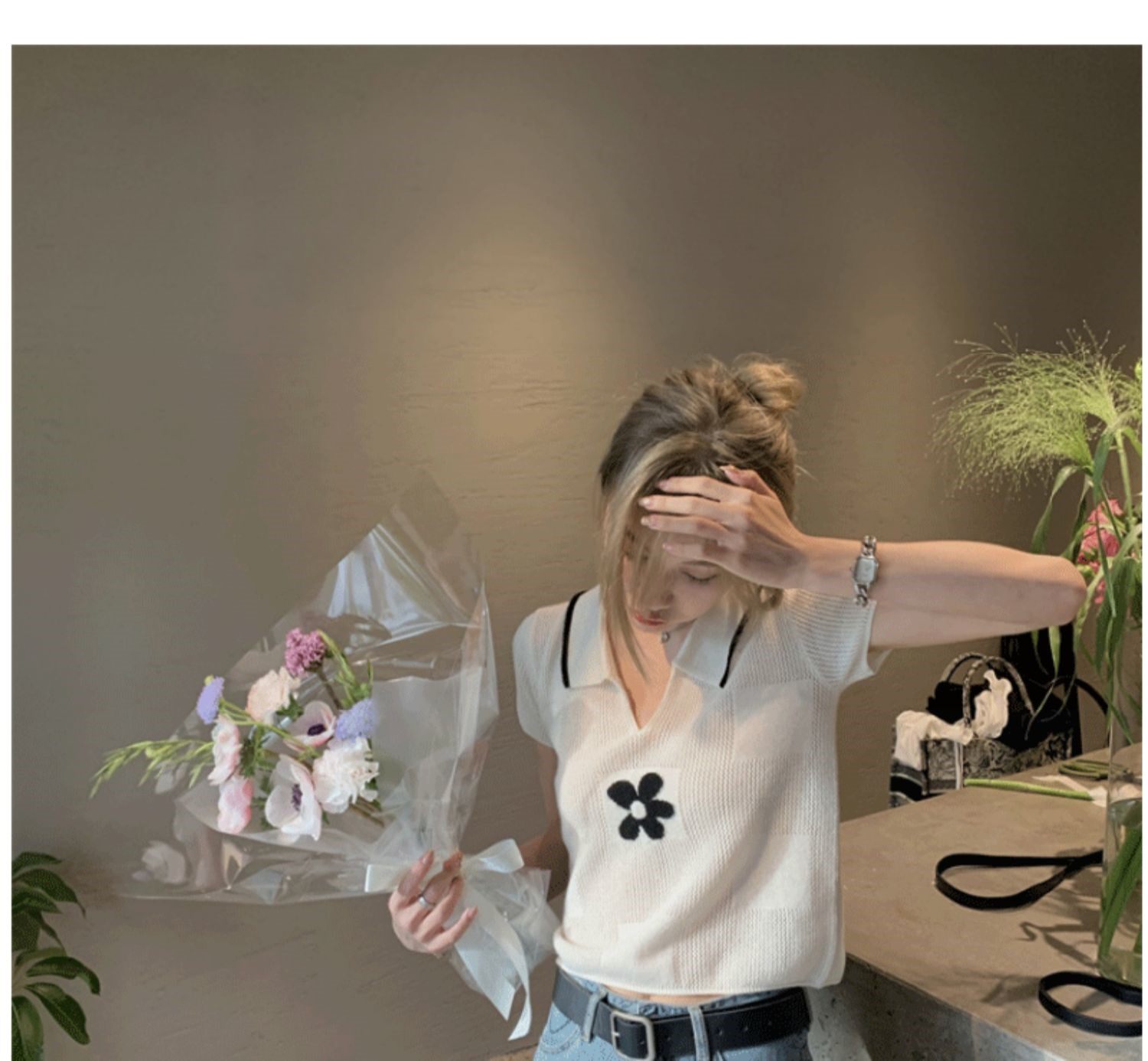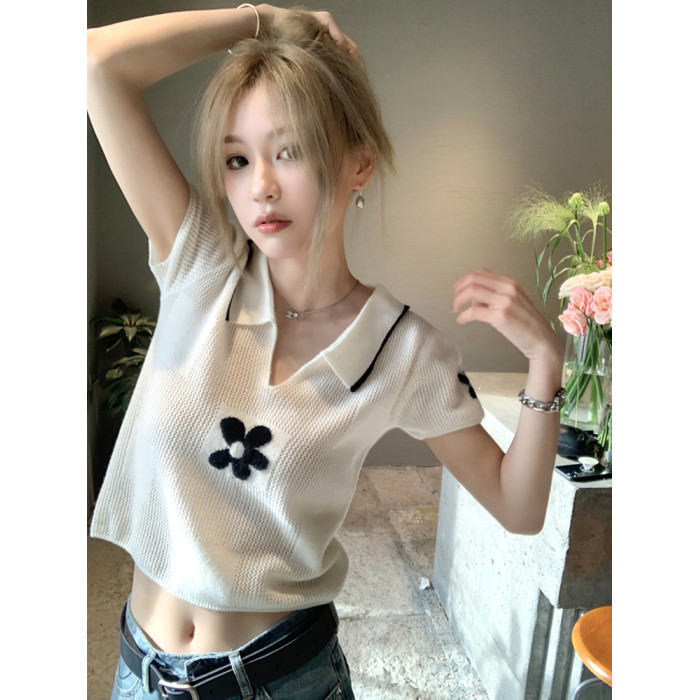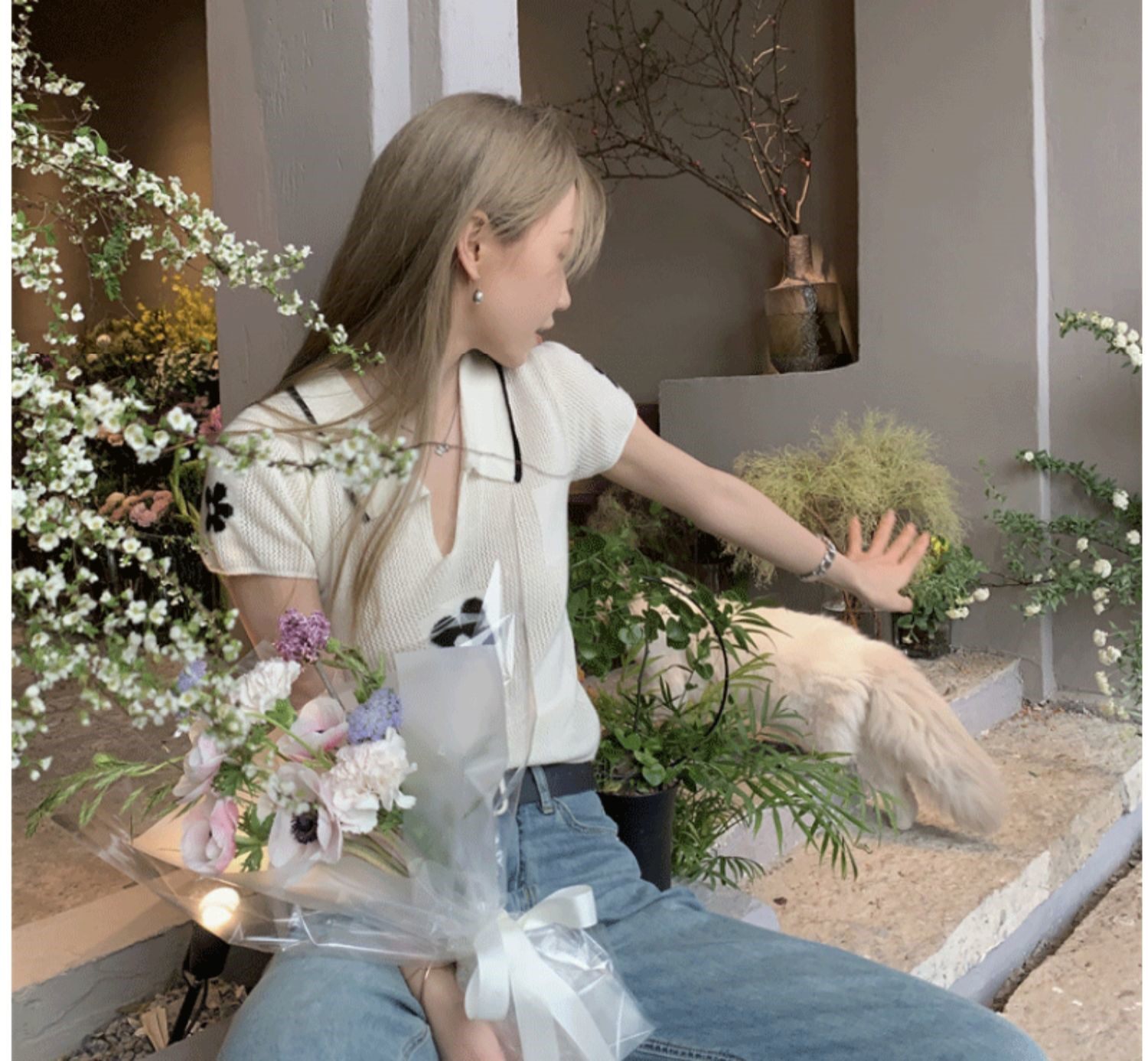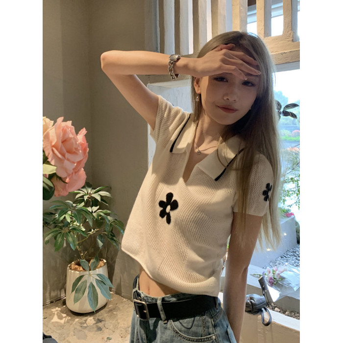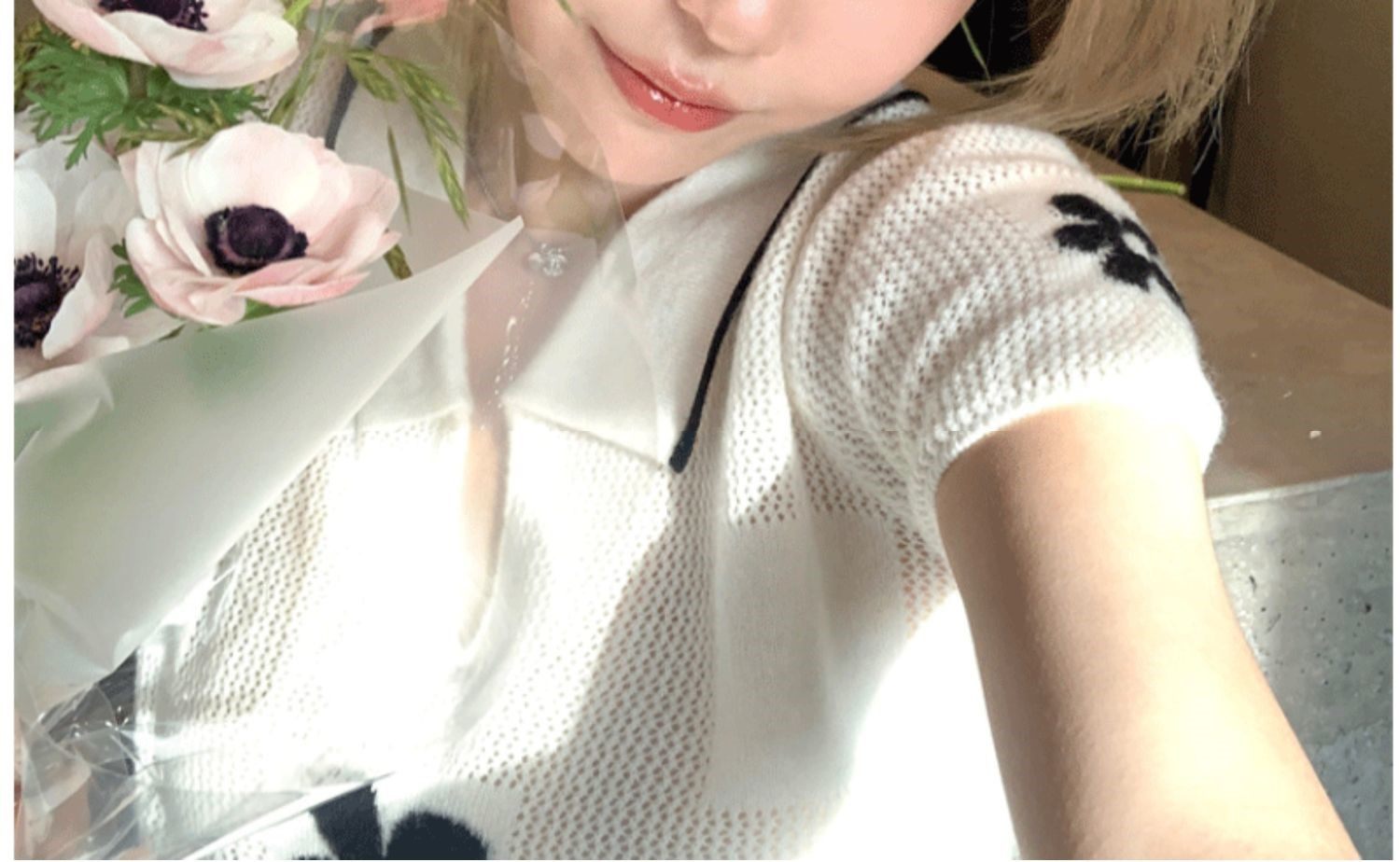 軟糯冰絲針織衫女夏季薄款寬鬆設計感v領防曬罩衫小香風短袖上衣