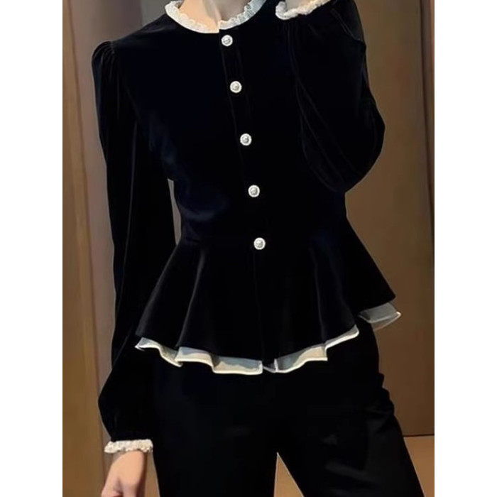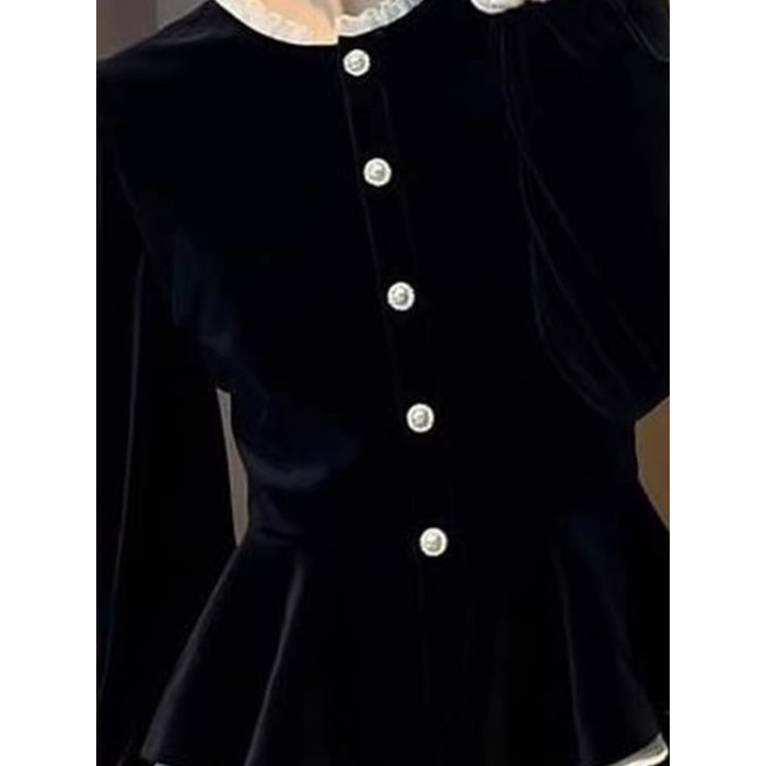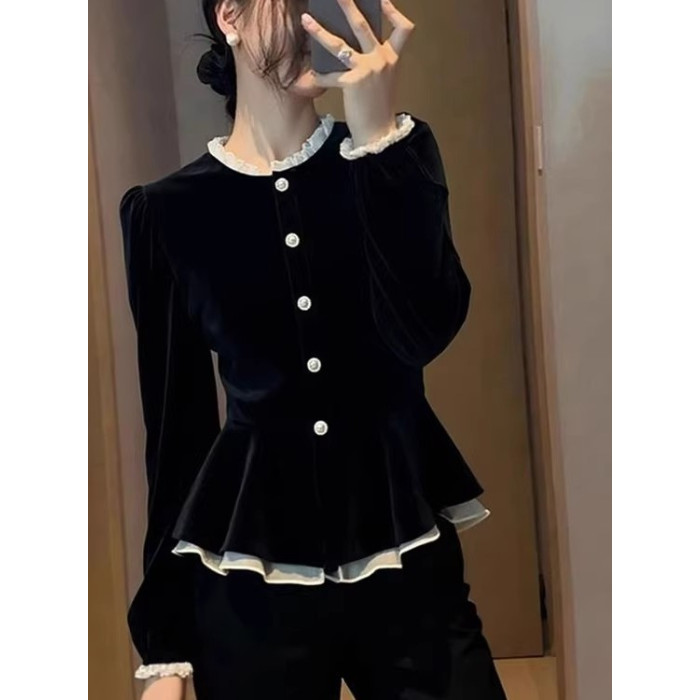 2025秋季超火獨特超好看絕美上衣高級感輕奢減齡洋氣黑色絲絨T恤