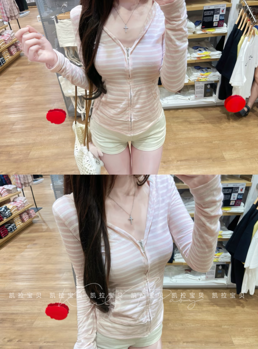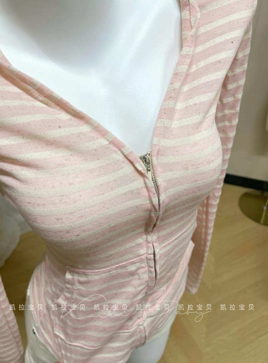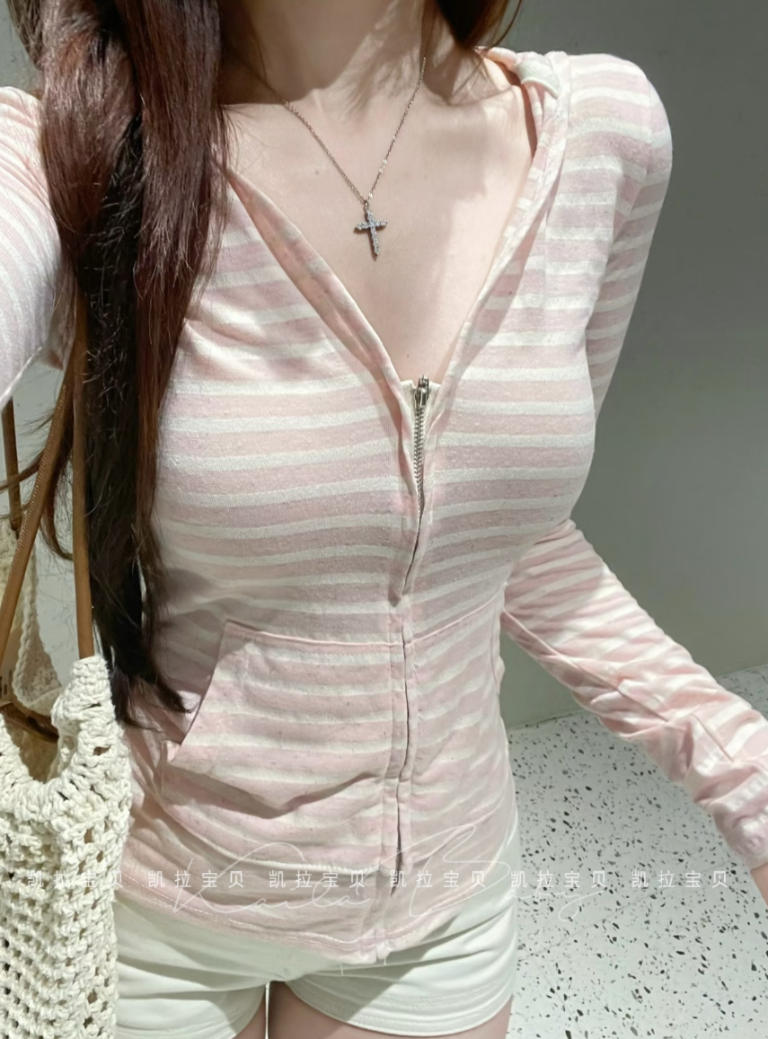 2025新款草莓奶油條紋粉薄款長袖外套女早秋設計感顯瘦小衆上衣