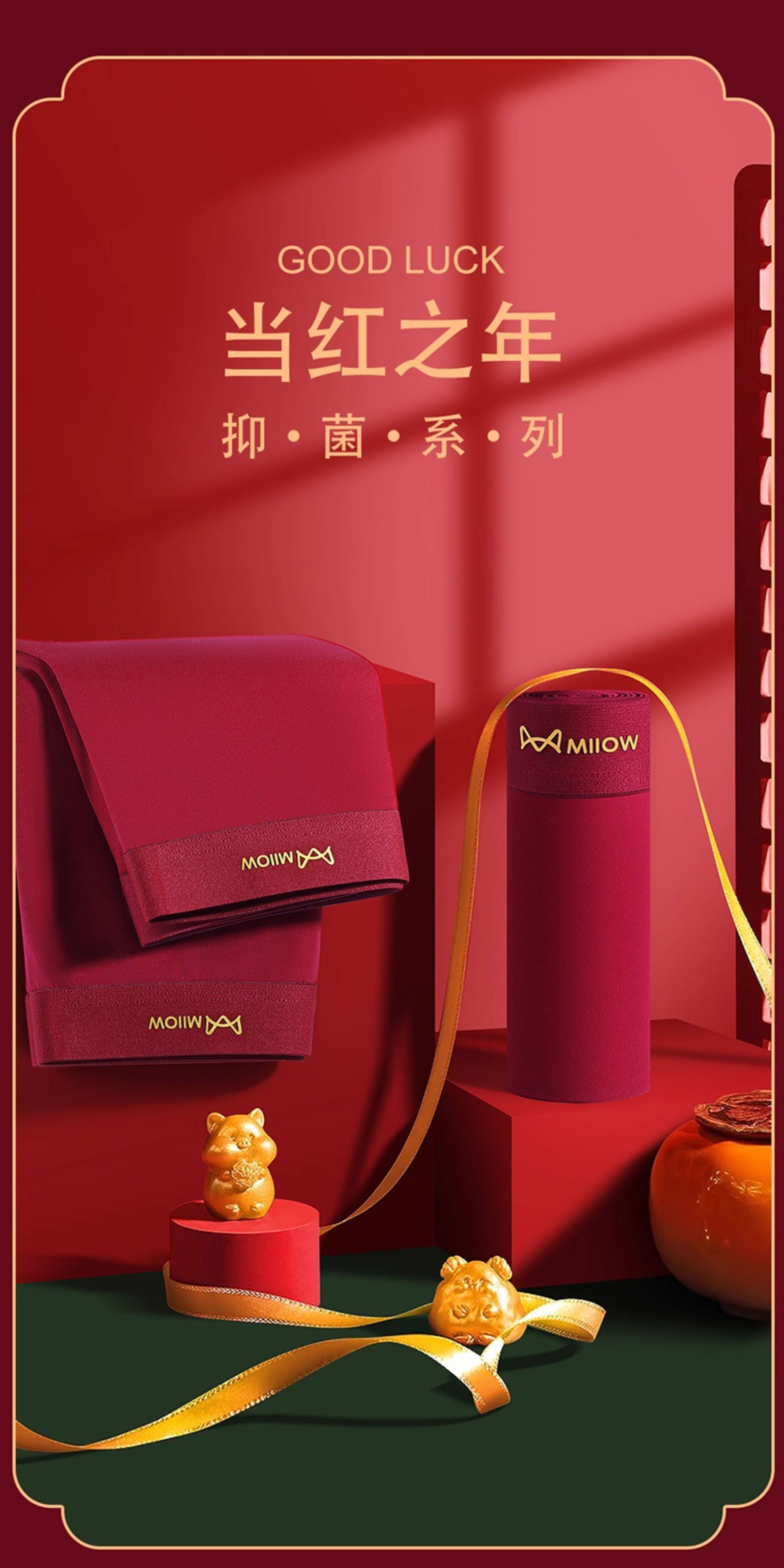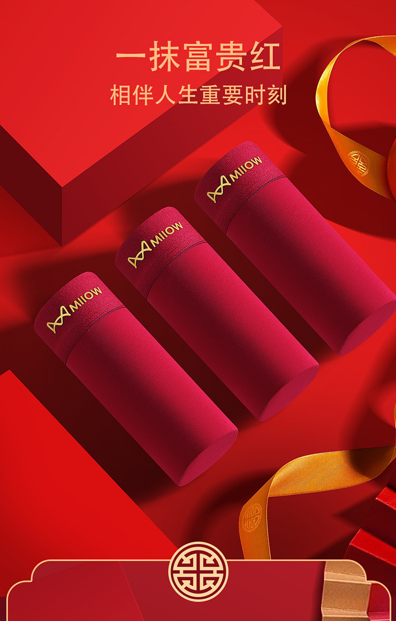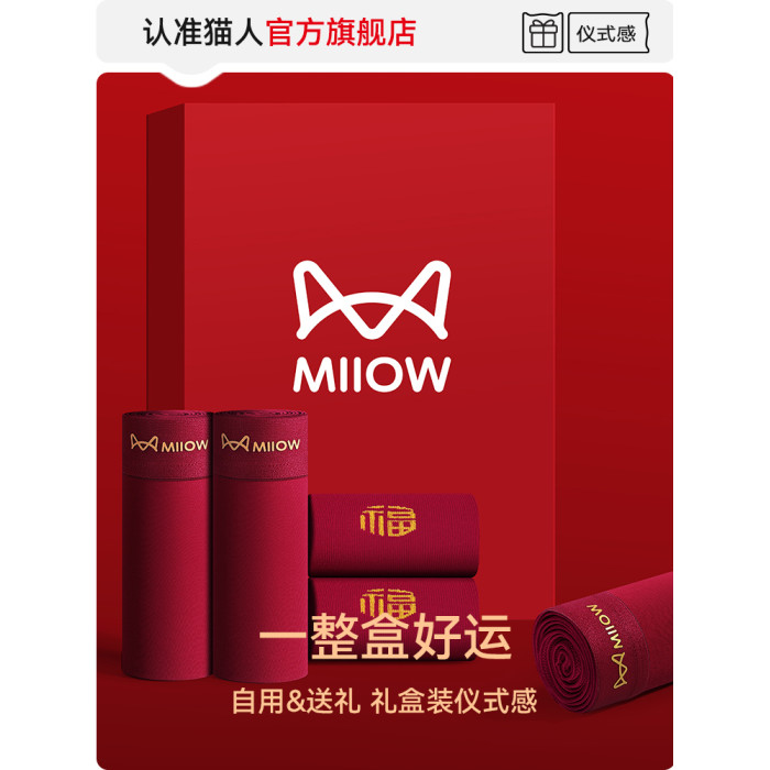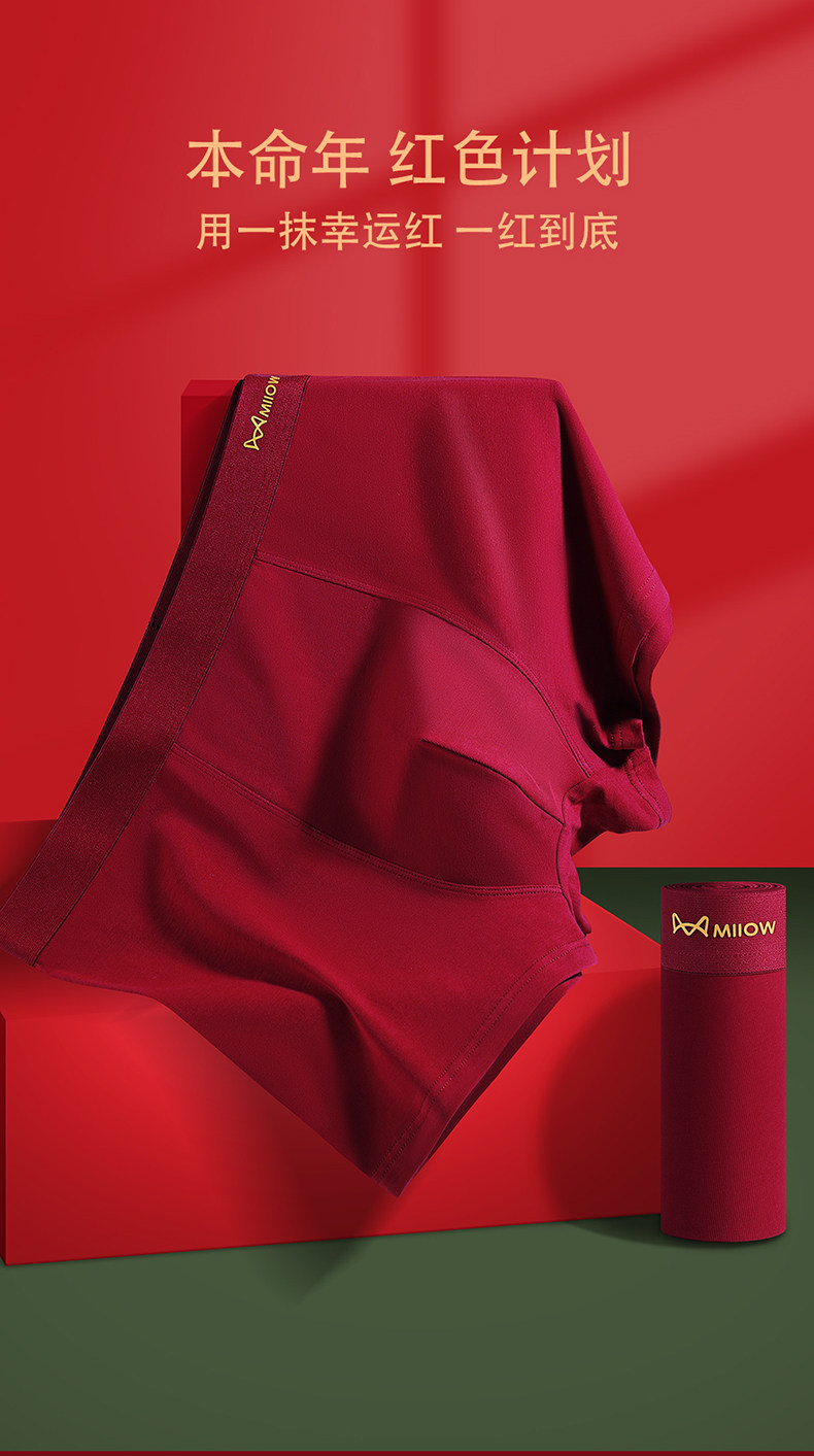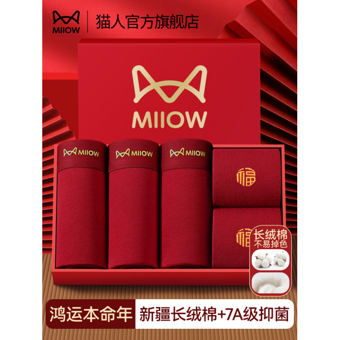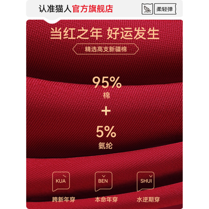 貓人本命年男士內褲紅色2026馬年短褲男款純棉平角四角褲結婚禮物