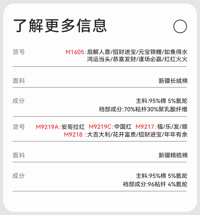 | 大身材質成分 | 棉95% 聚氨酯彈性纖維(氨綸)5% |