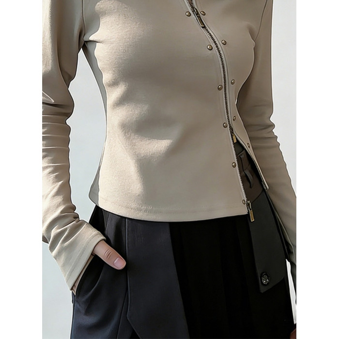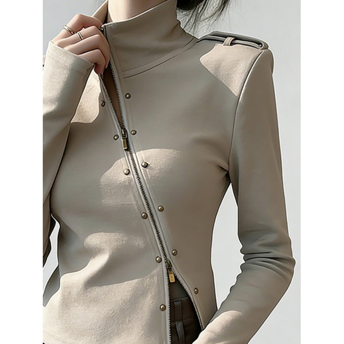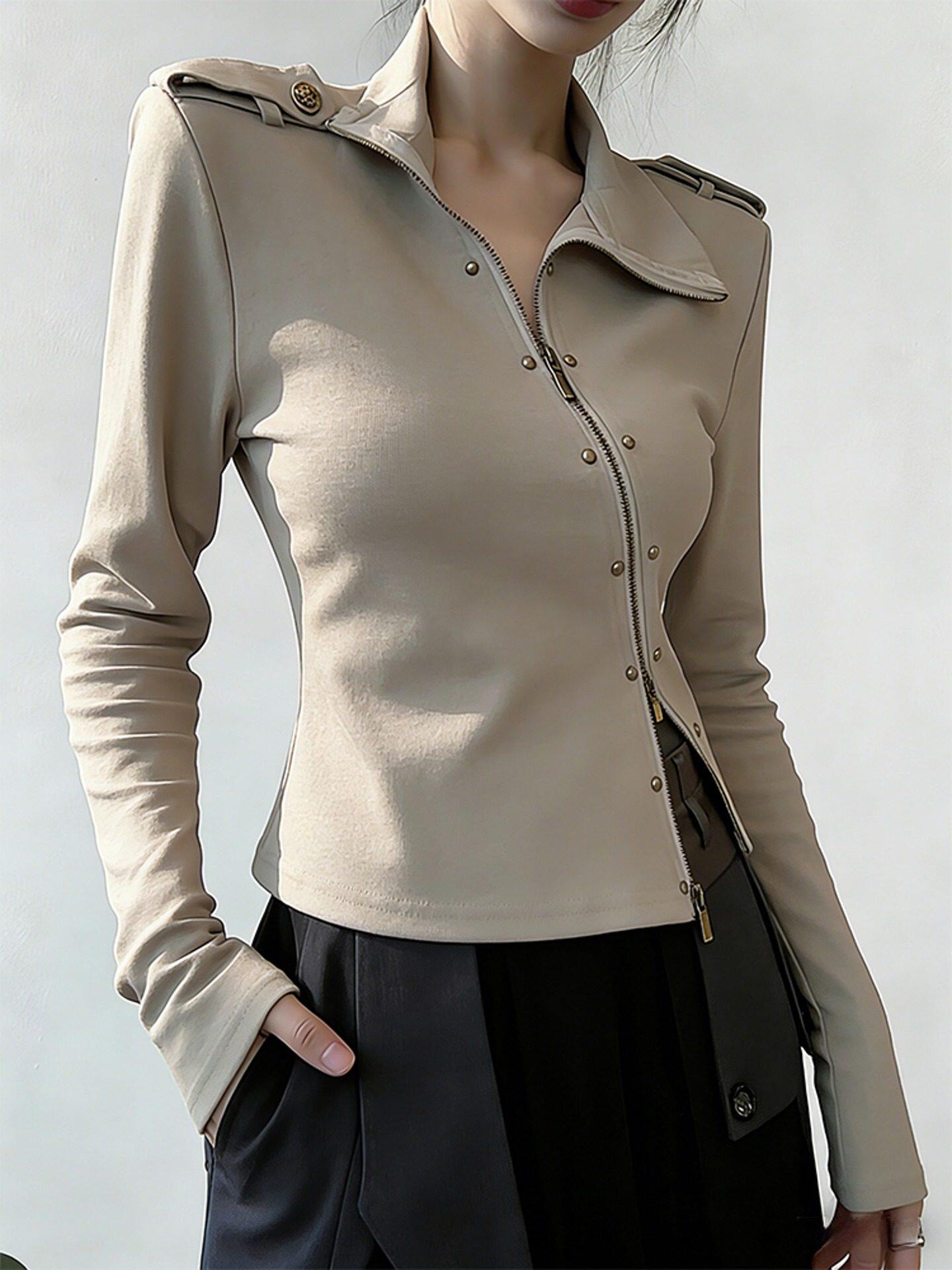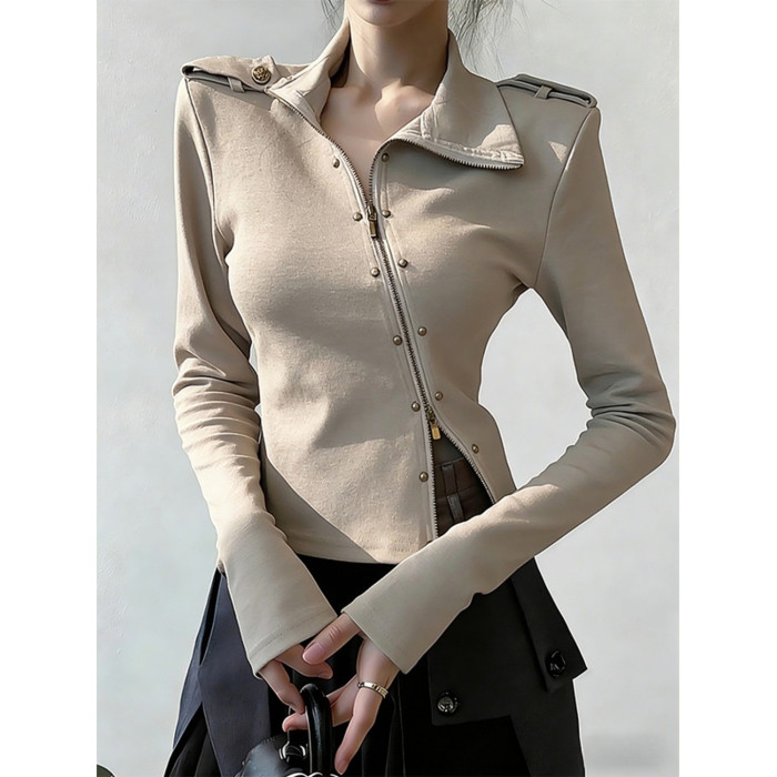 小衆不撞款上衣女早春輕奢高級感減齡獨特漂亮卡其色繙領長袖襯衫