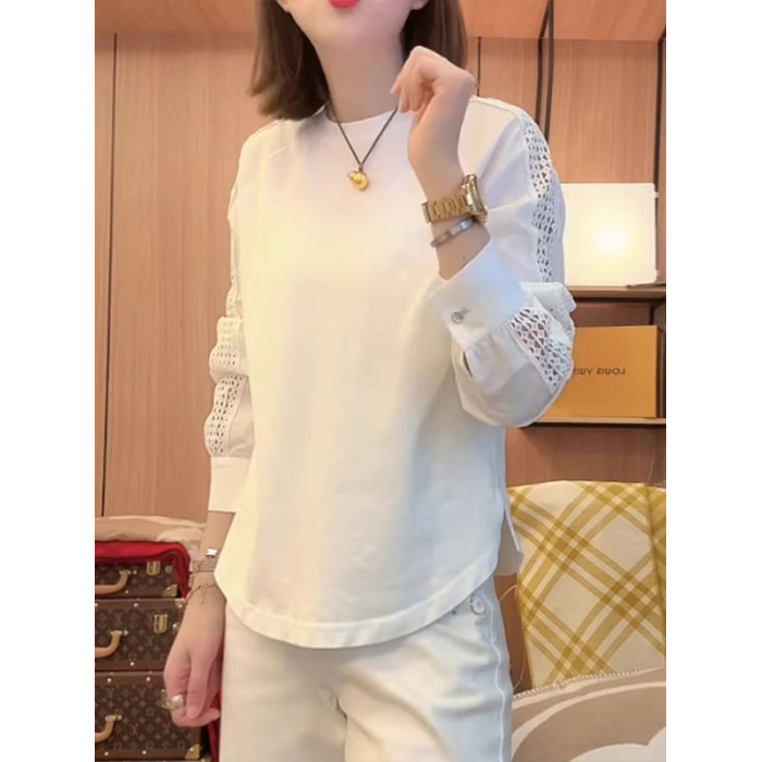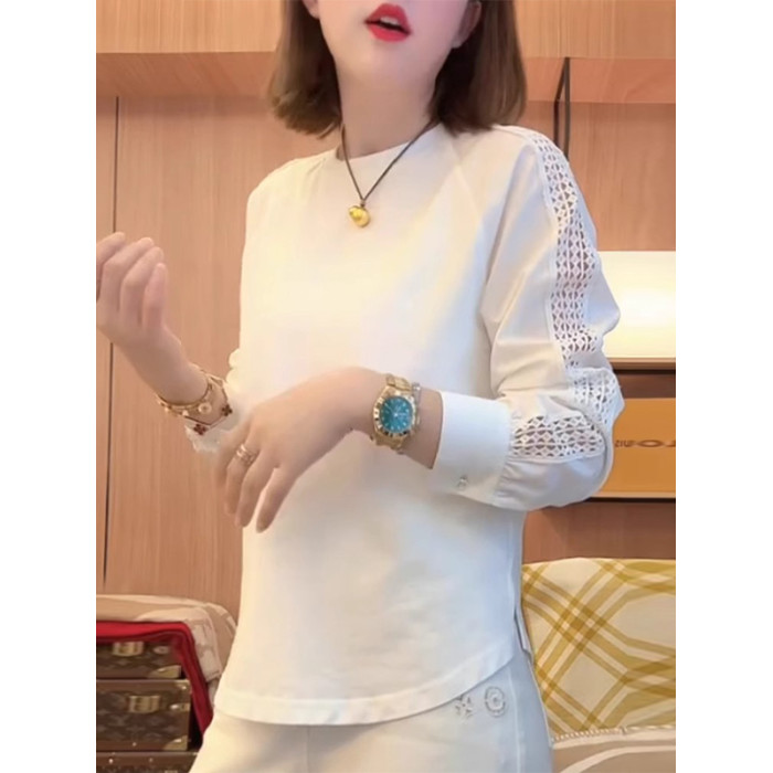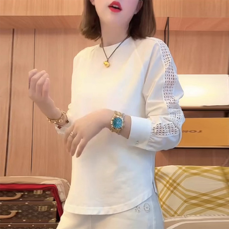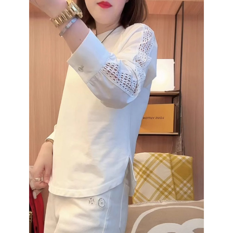 2025春夏新款爆款寬鬆時尚洋氣瘦花邊袖T恤拼接袖口減齡休閒上衣